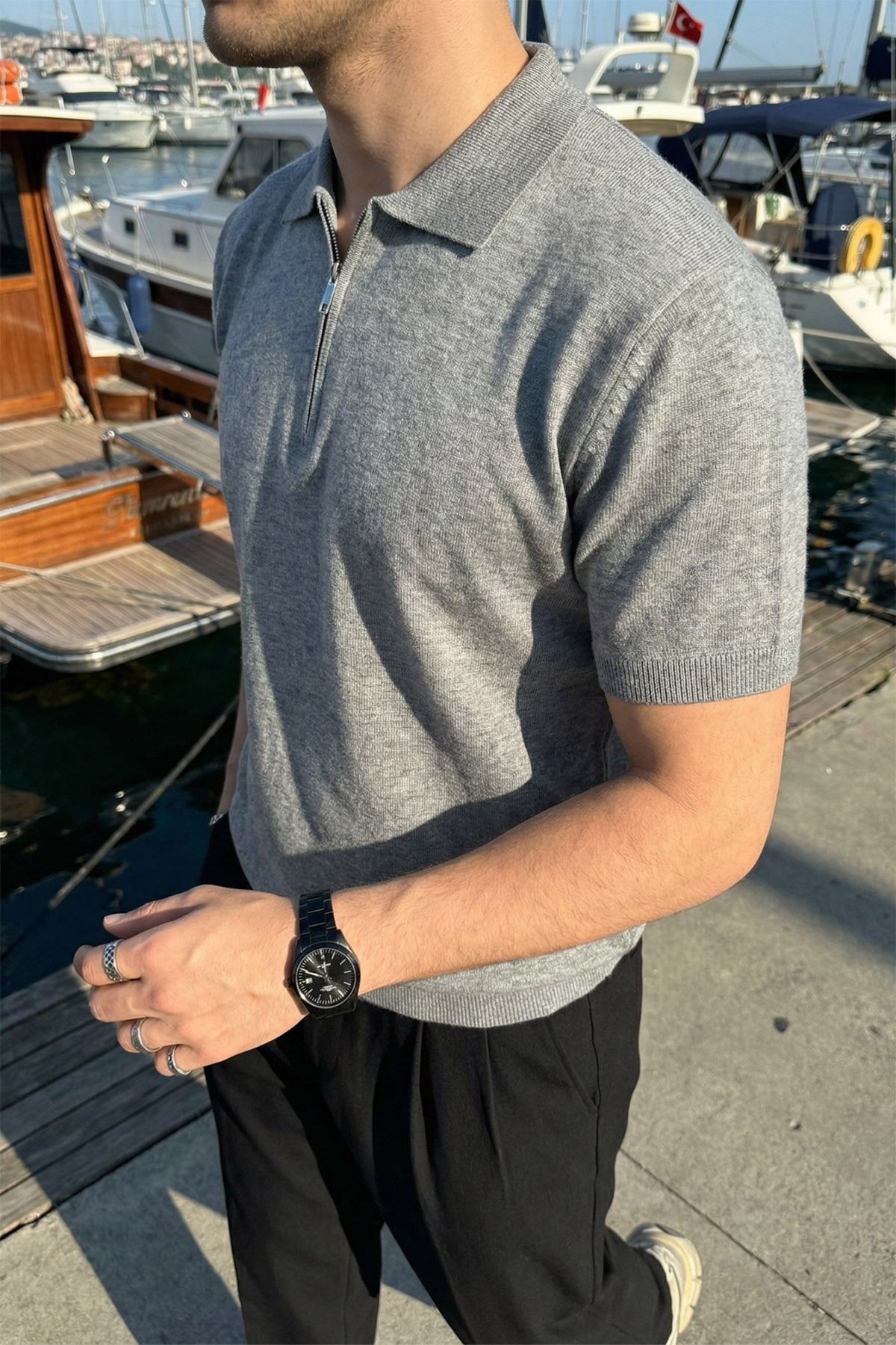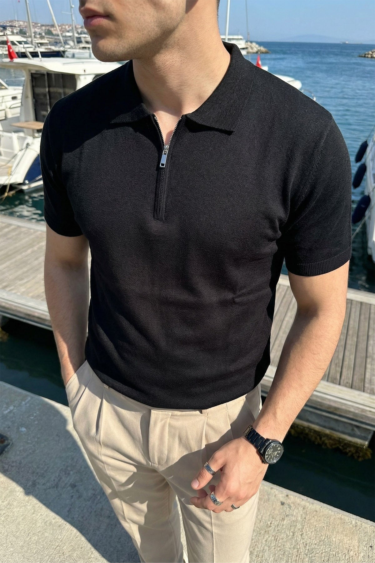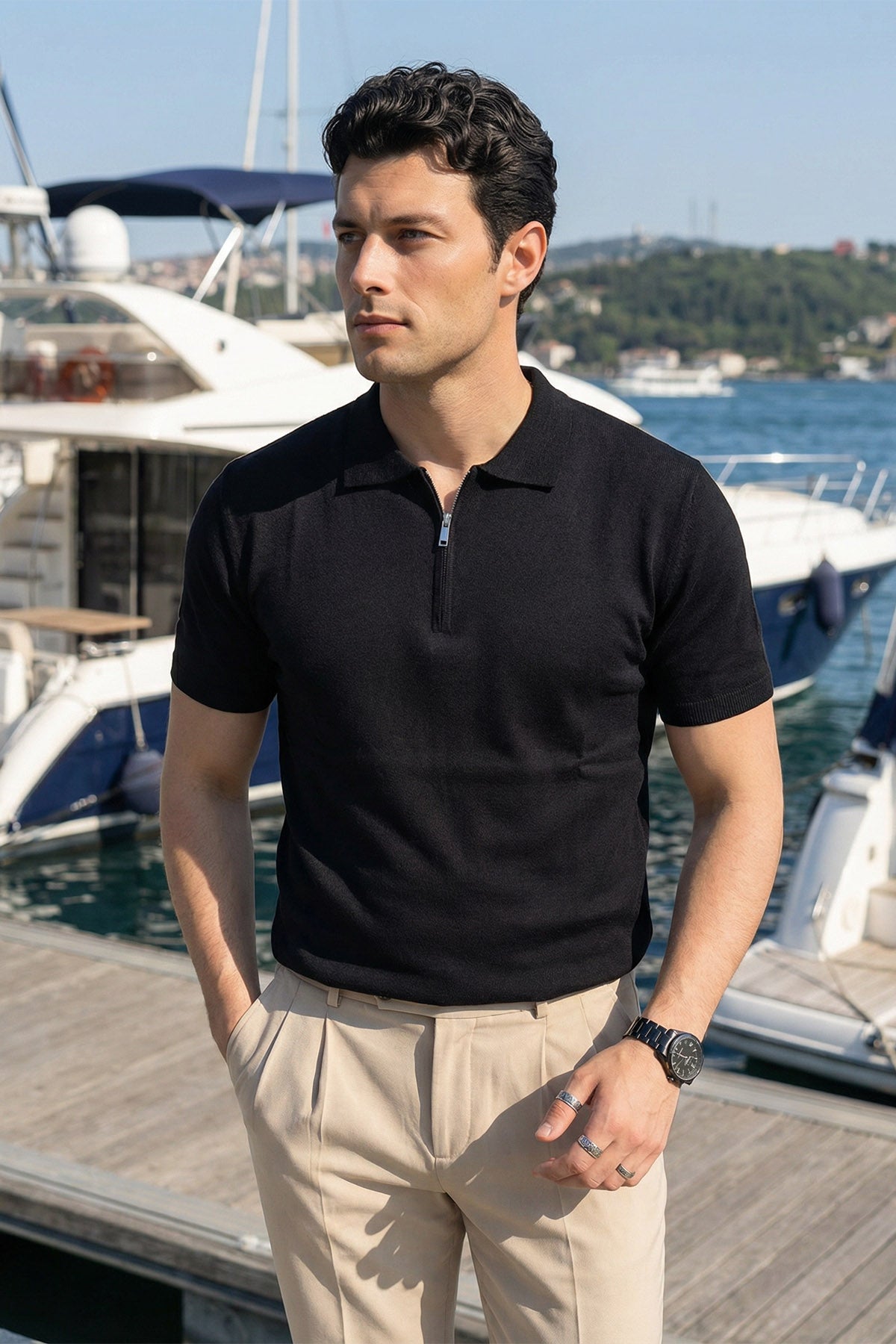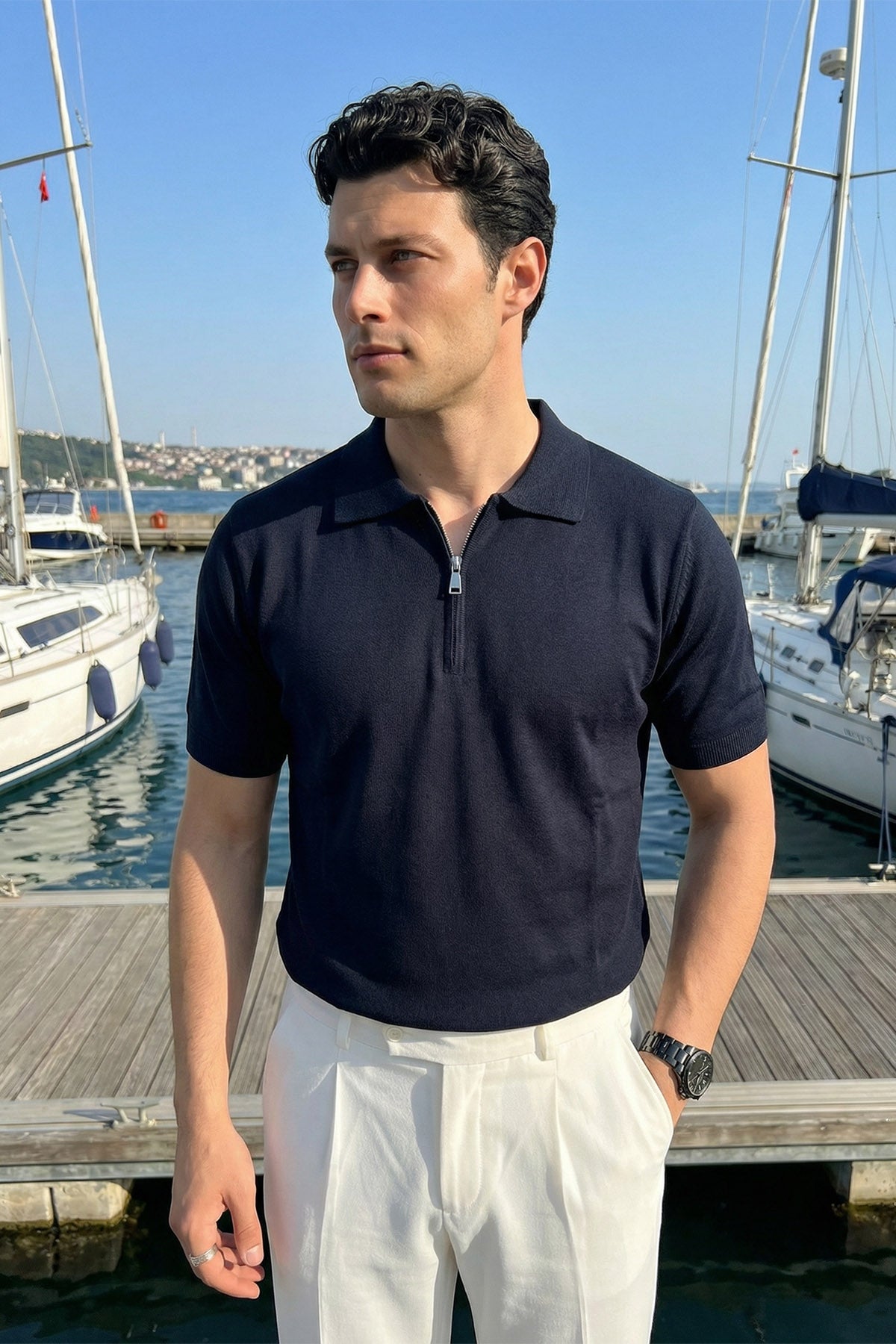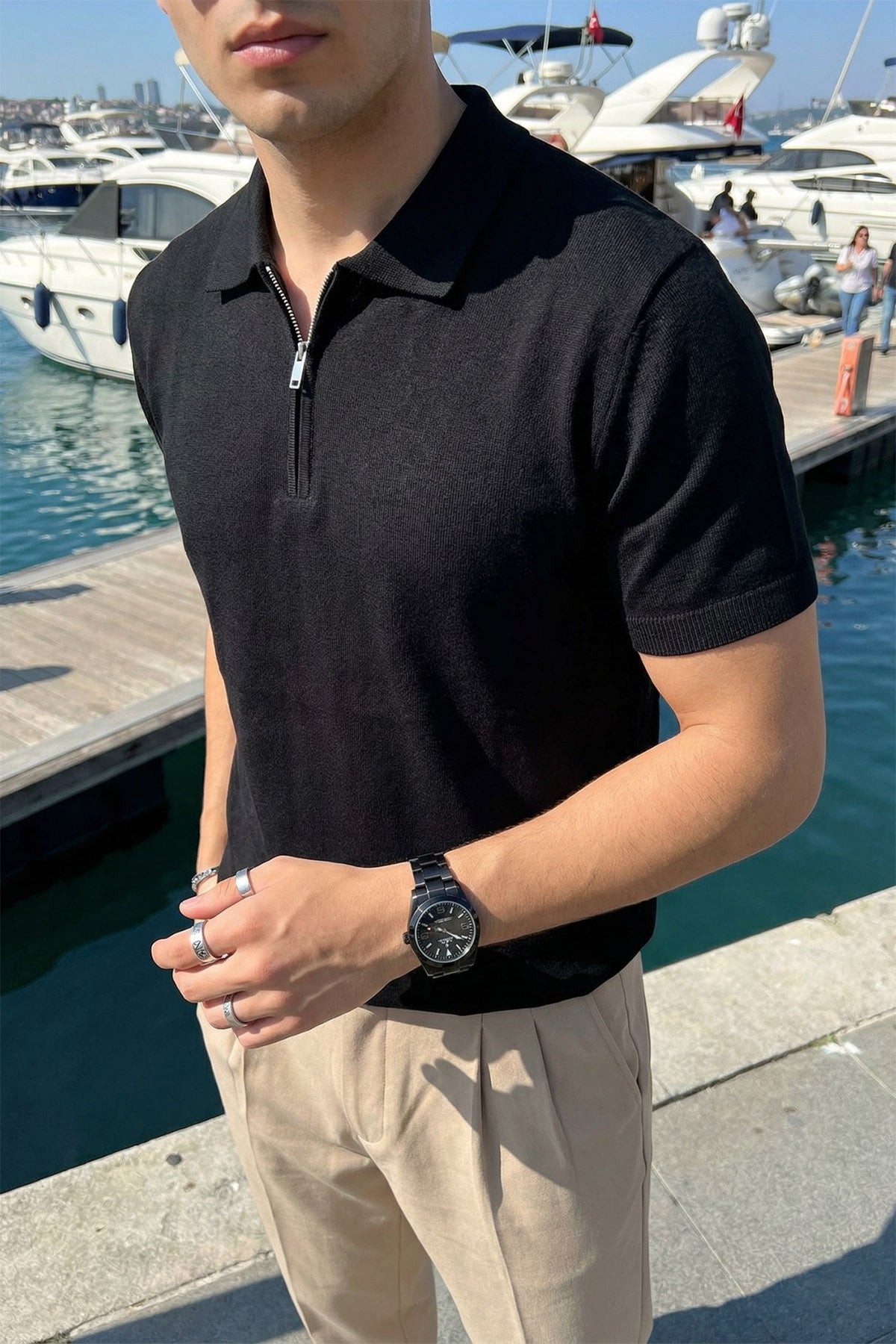 Allen Premium Fermuarlı Polo Yaka Erkek Triko Tişört