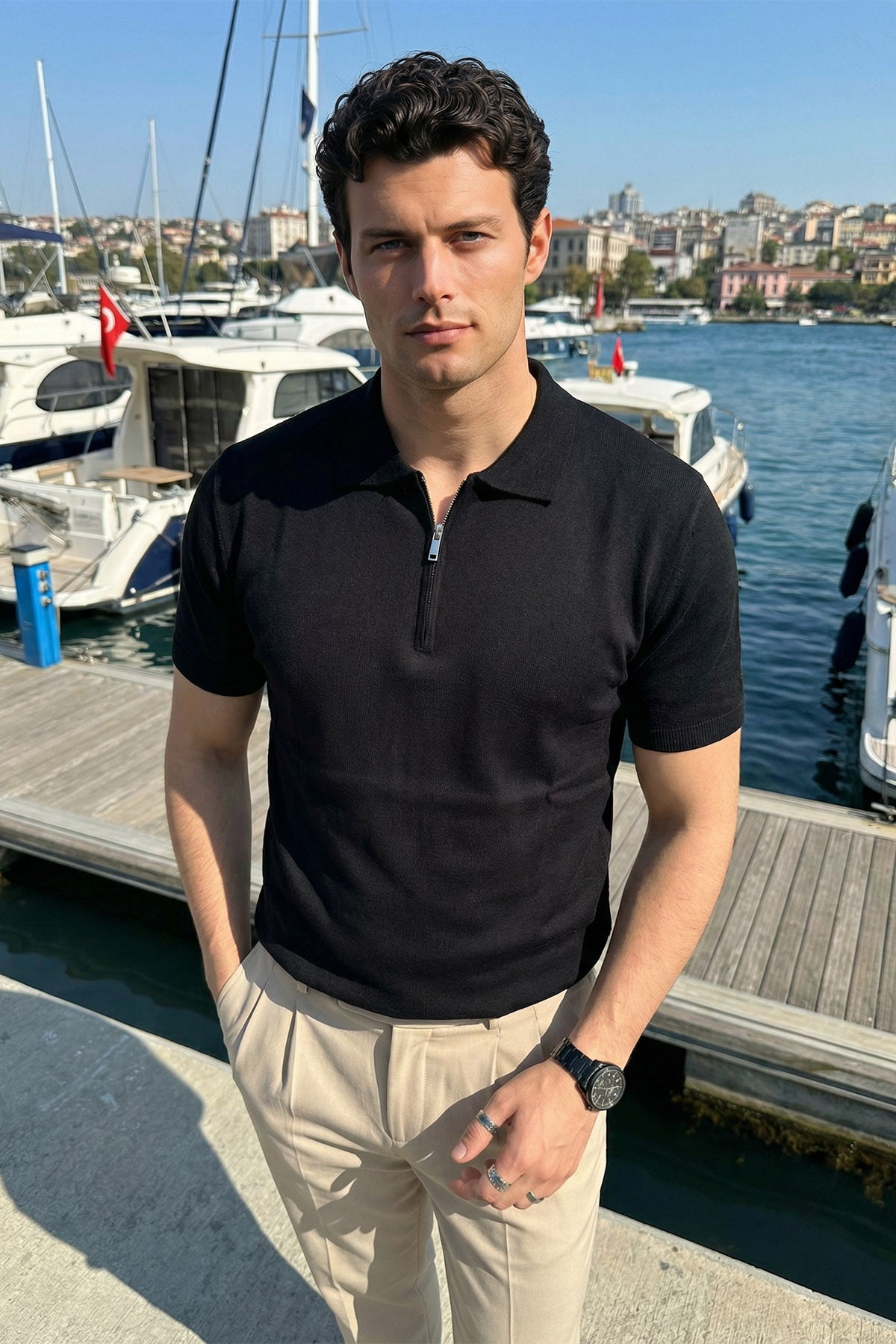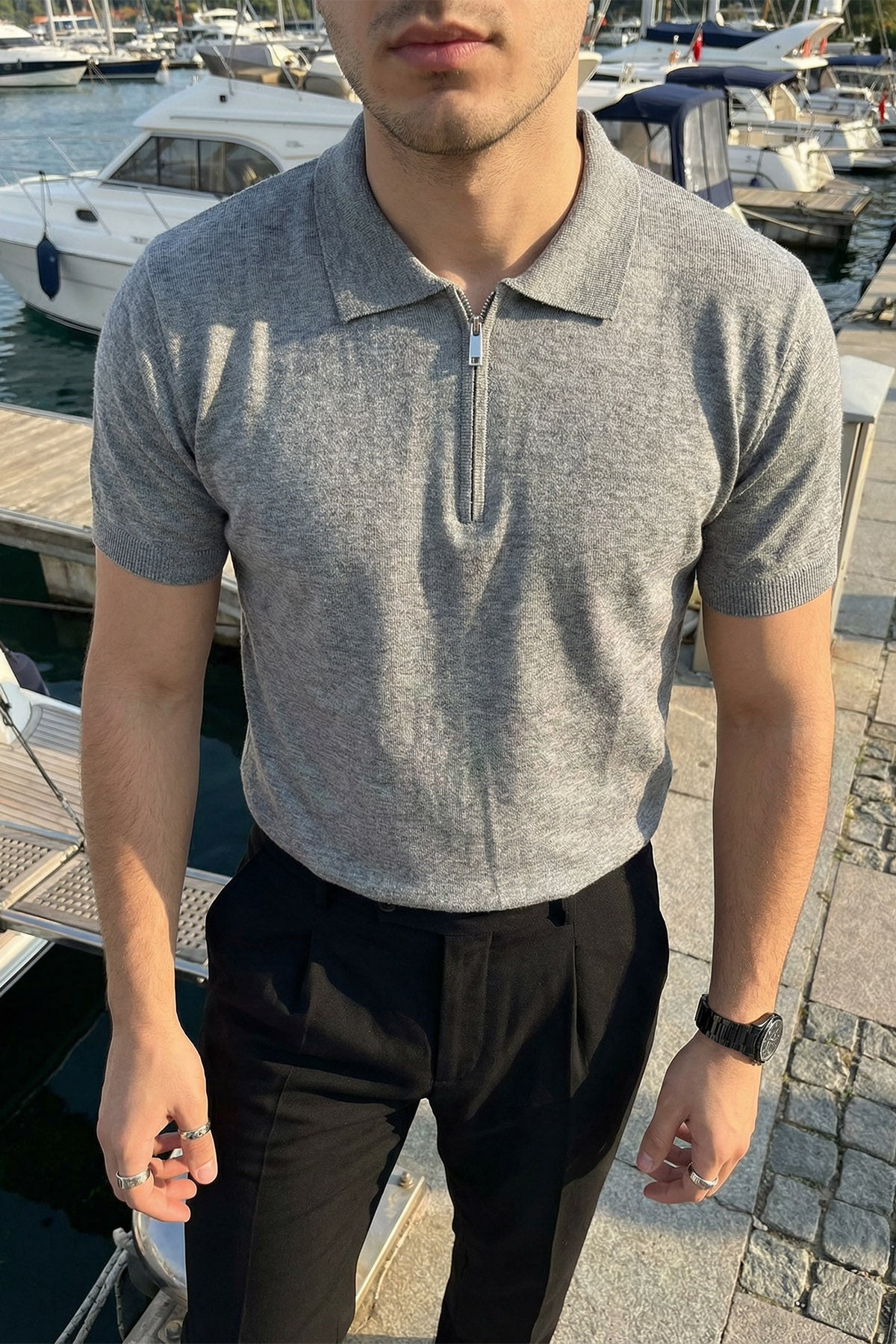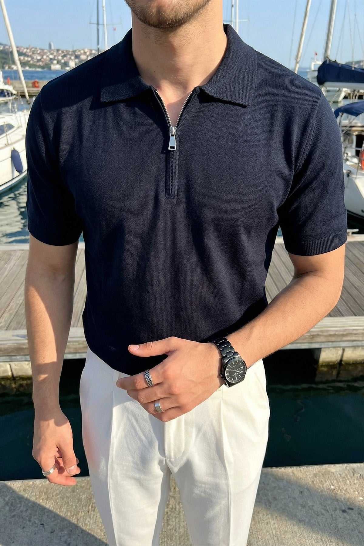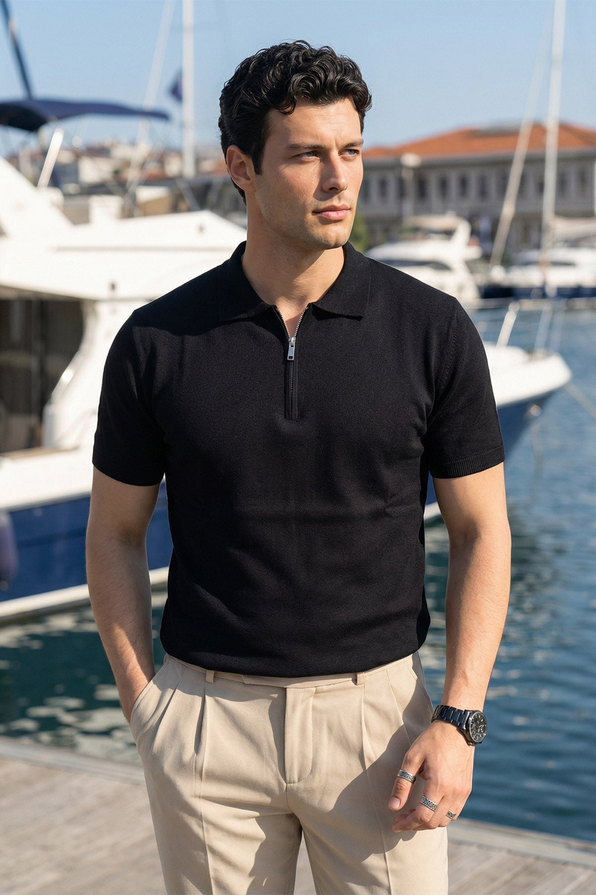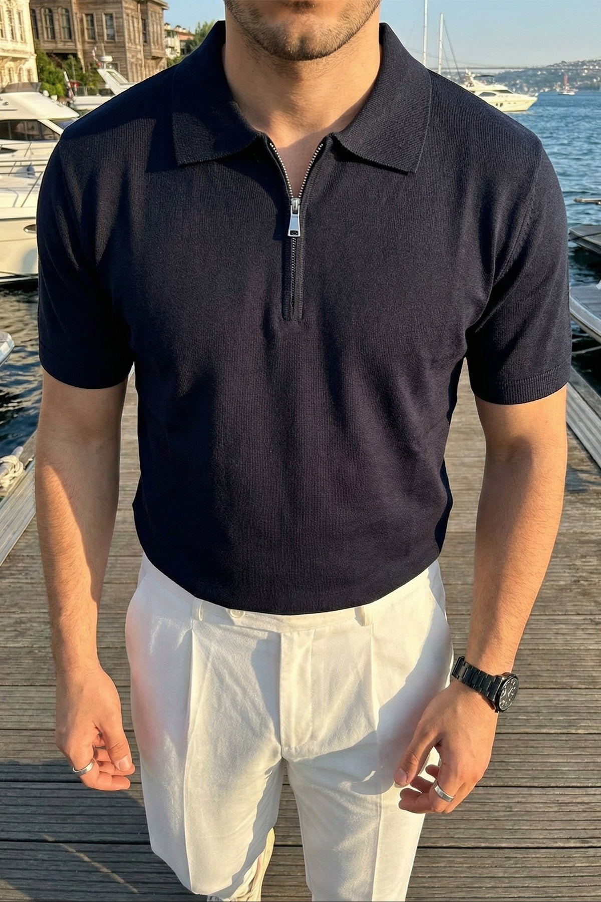 Allen Premium Fermuarlı Polo Yaka Erkek Triko Tişört