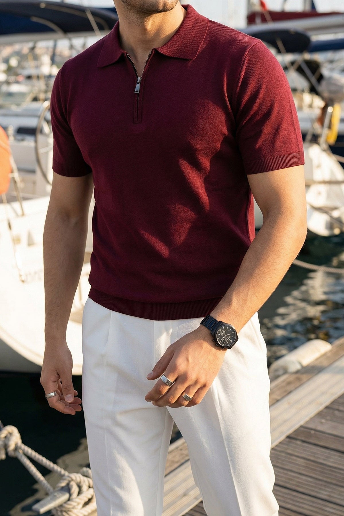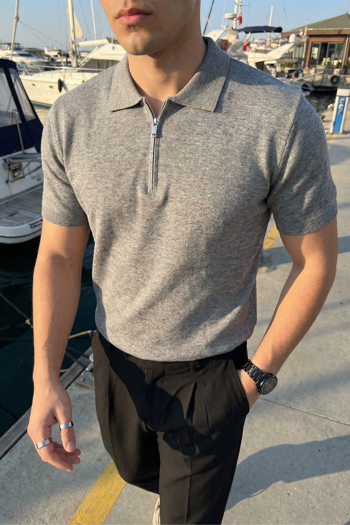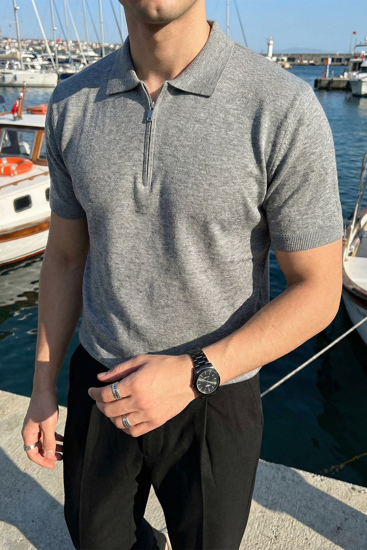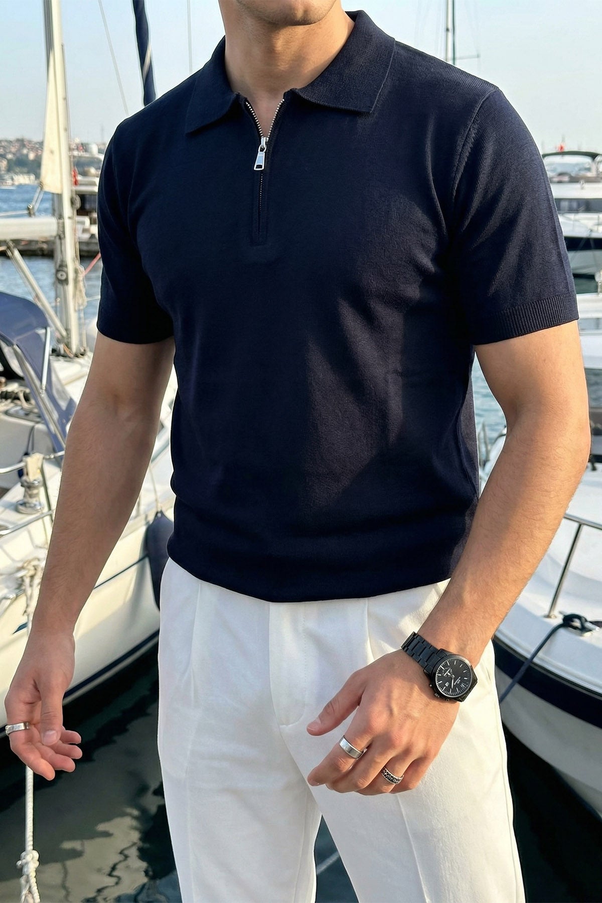 Allen Premium Fermuarlı Polo Yaka Erkek Triko Tişört