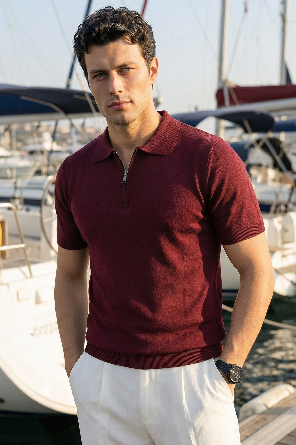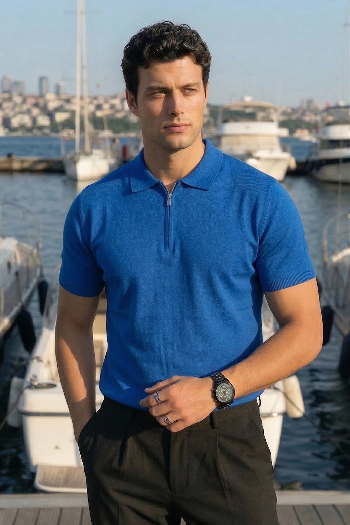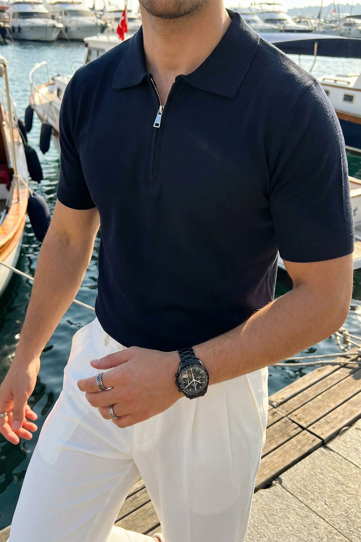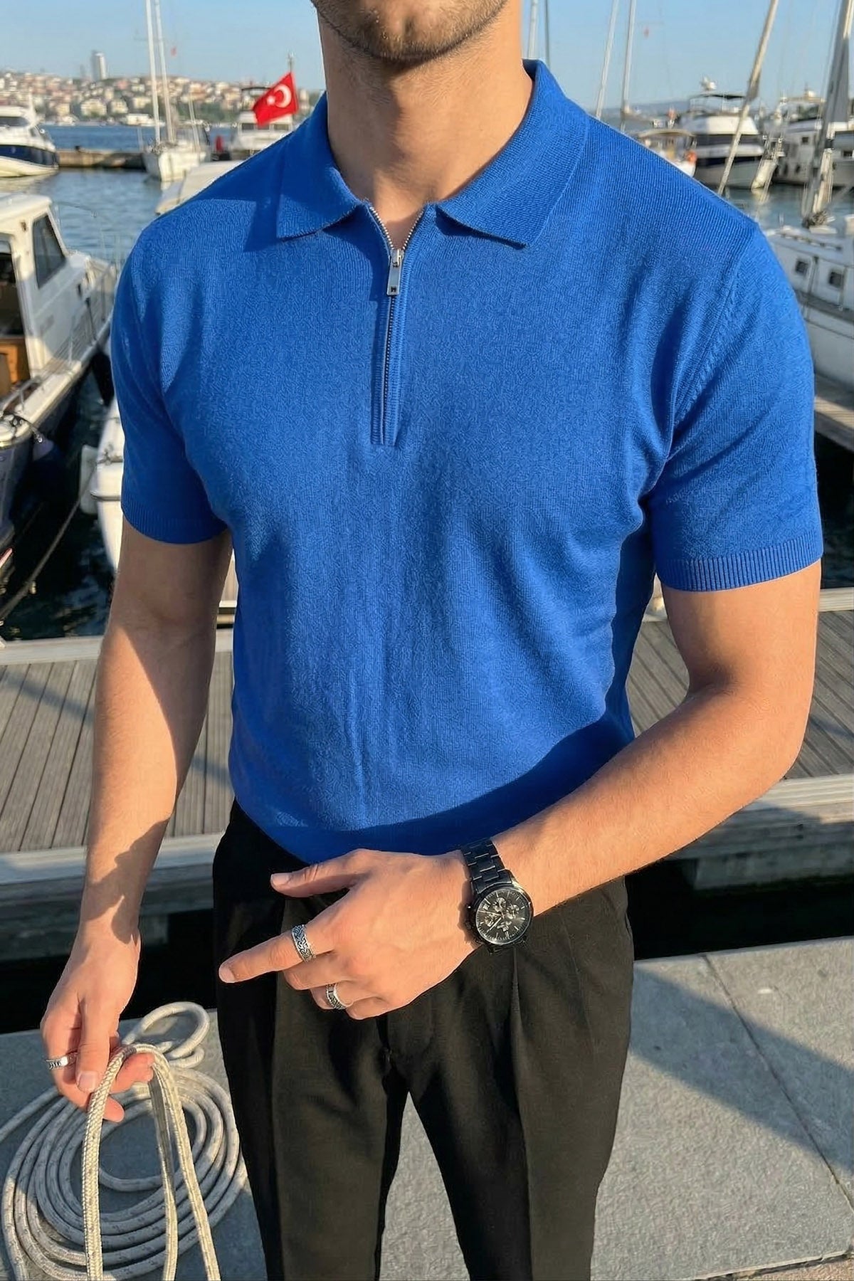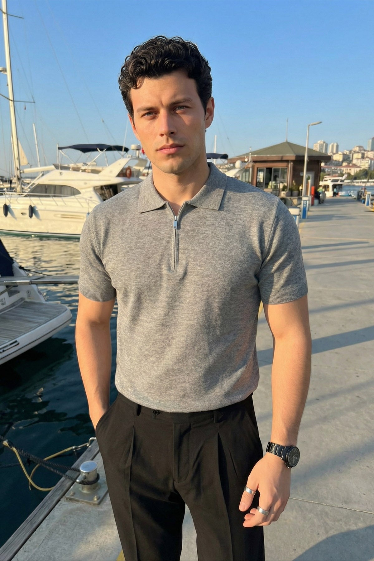 Allen Premium Fermuarlı Polo Yaka Erkek Triko Tişört