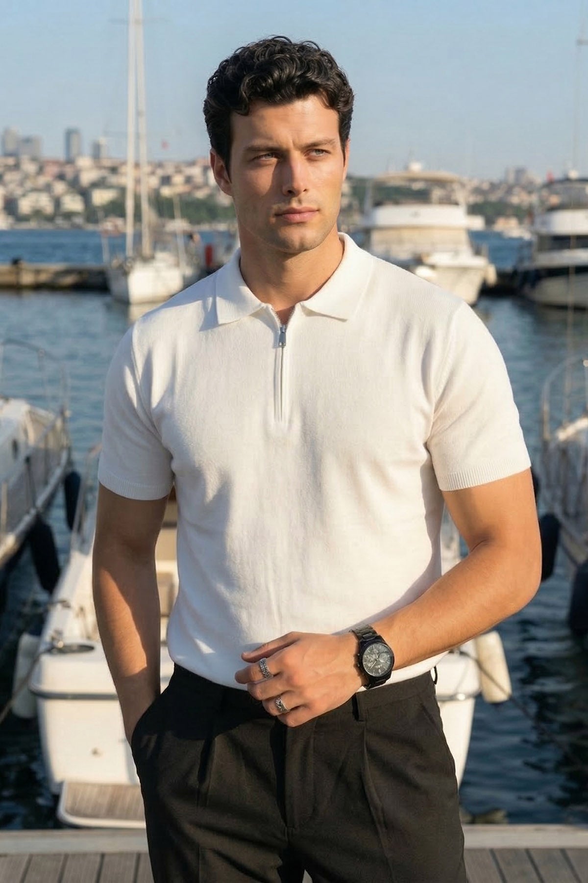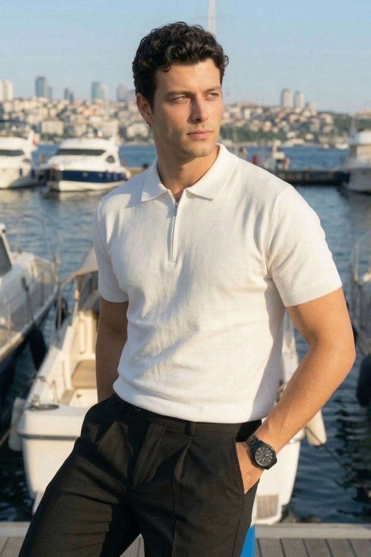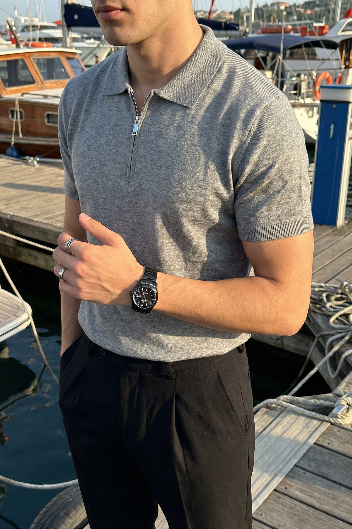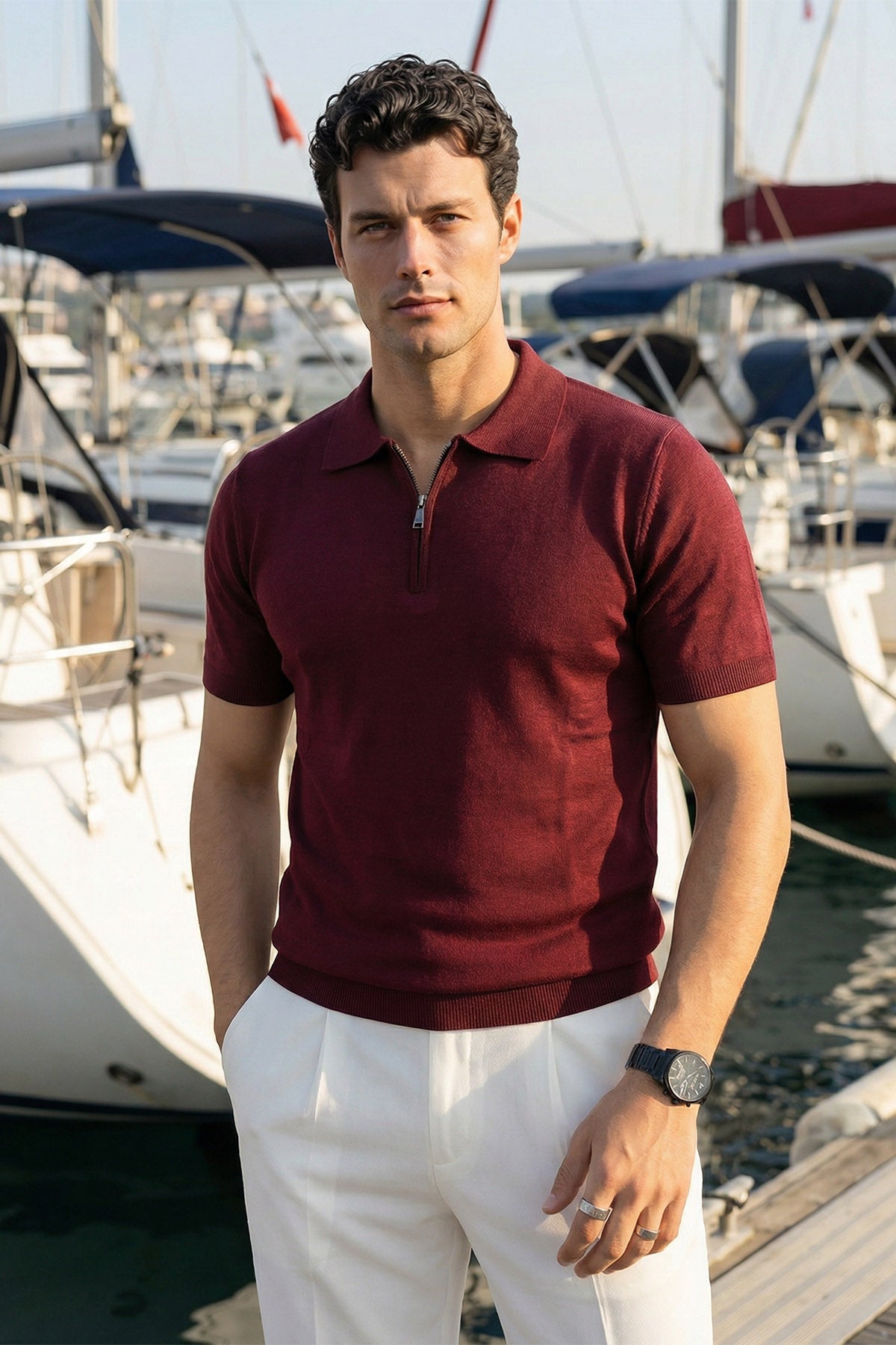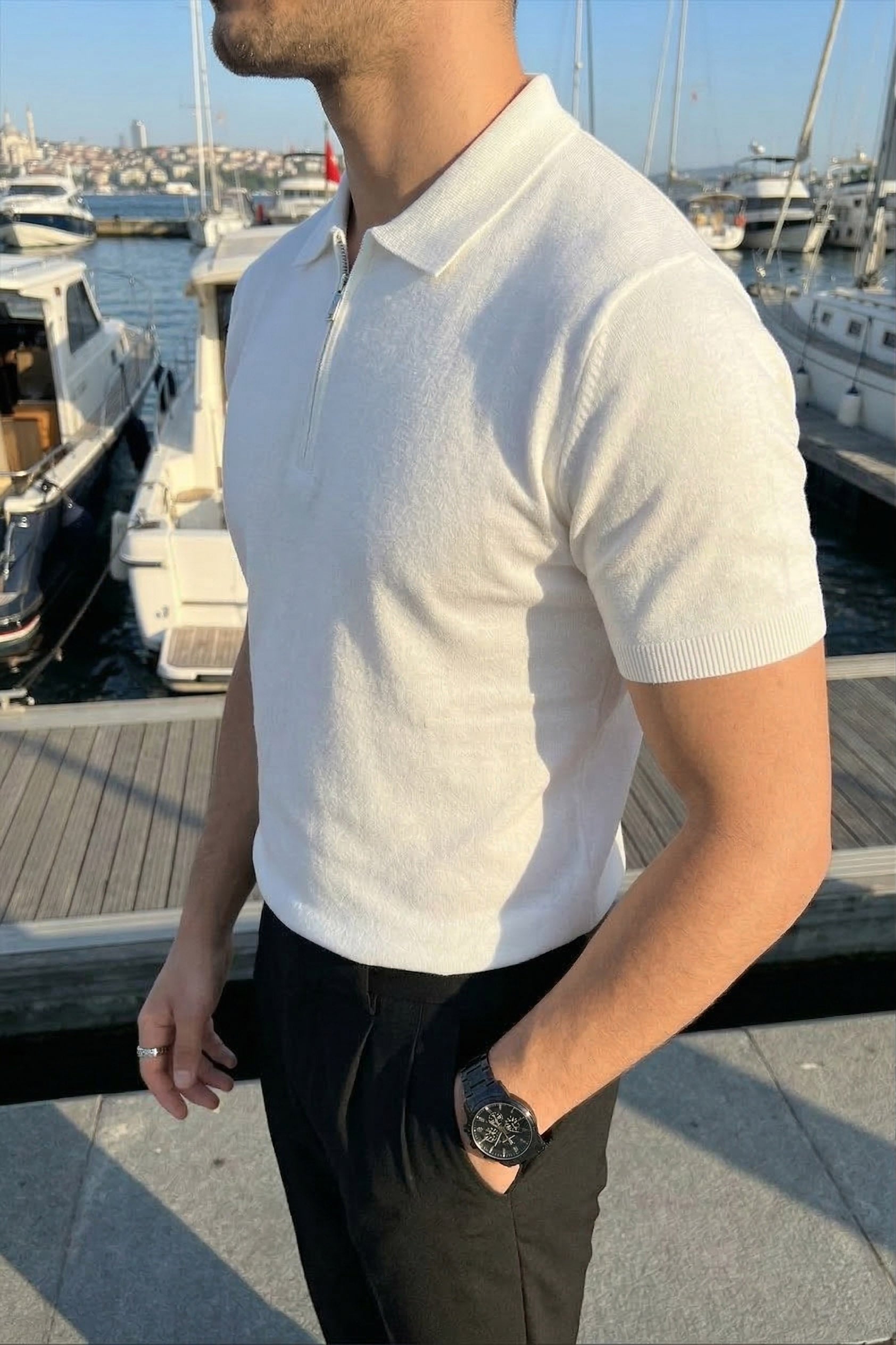 Allen Premium Fermuarlı Polo Yaka Erkek Triko Tişört