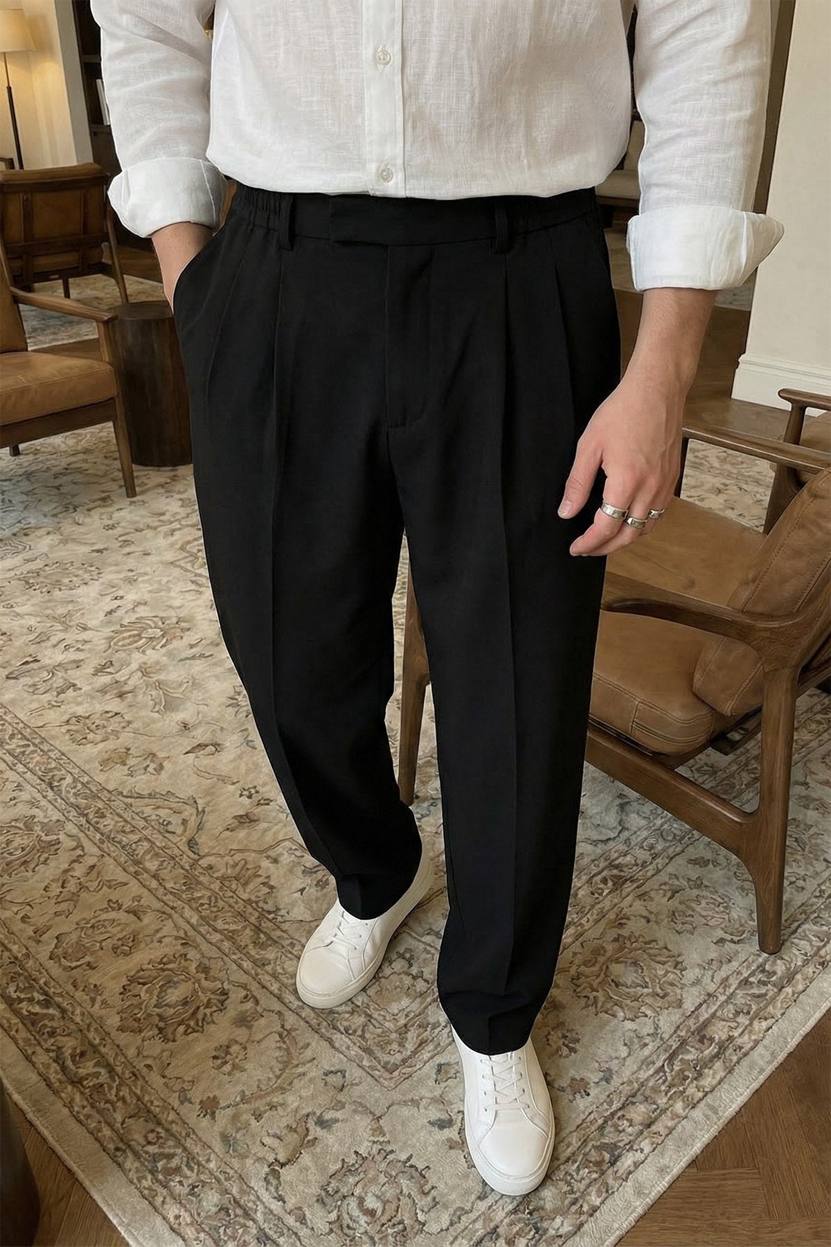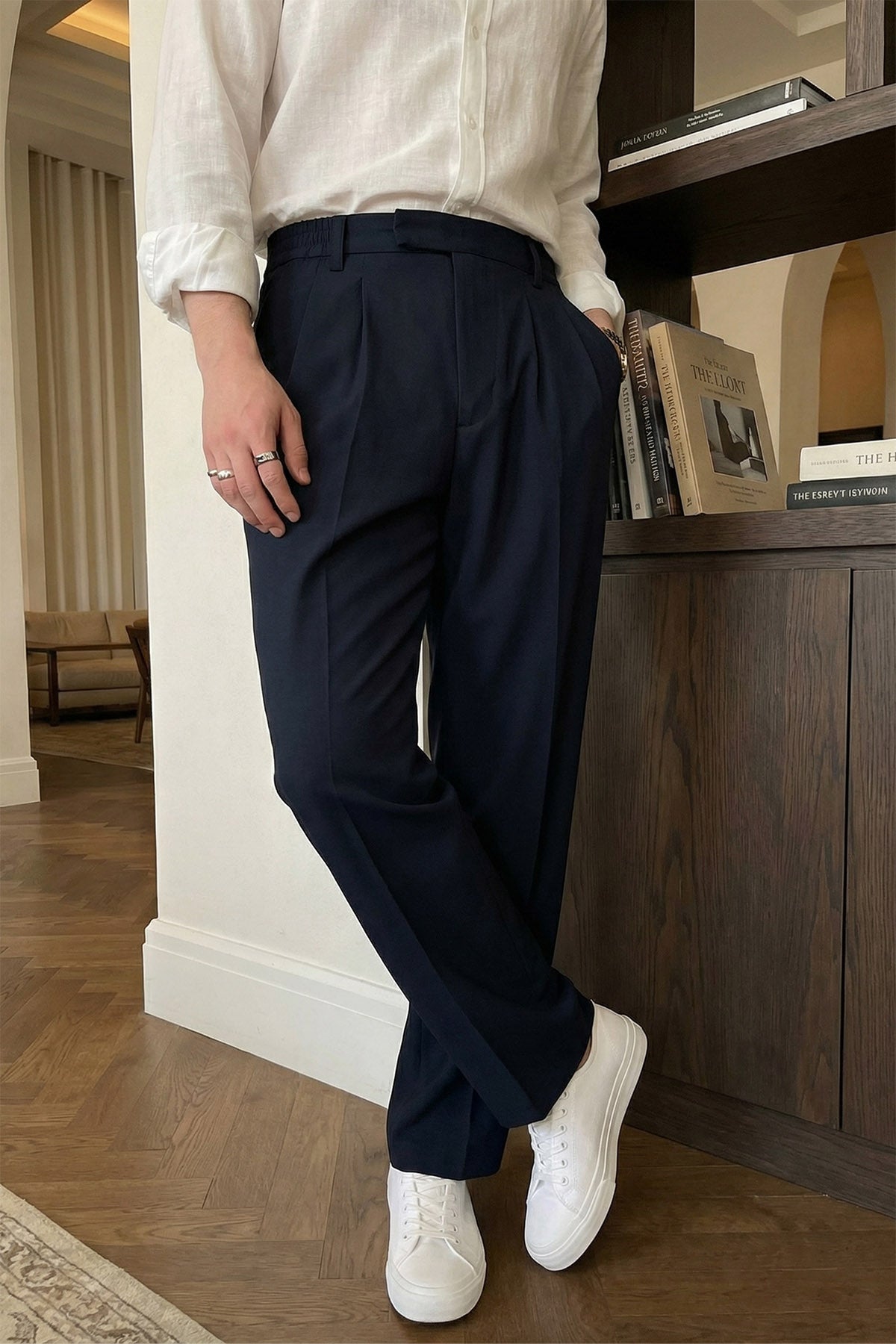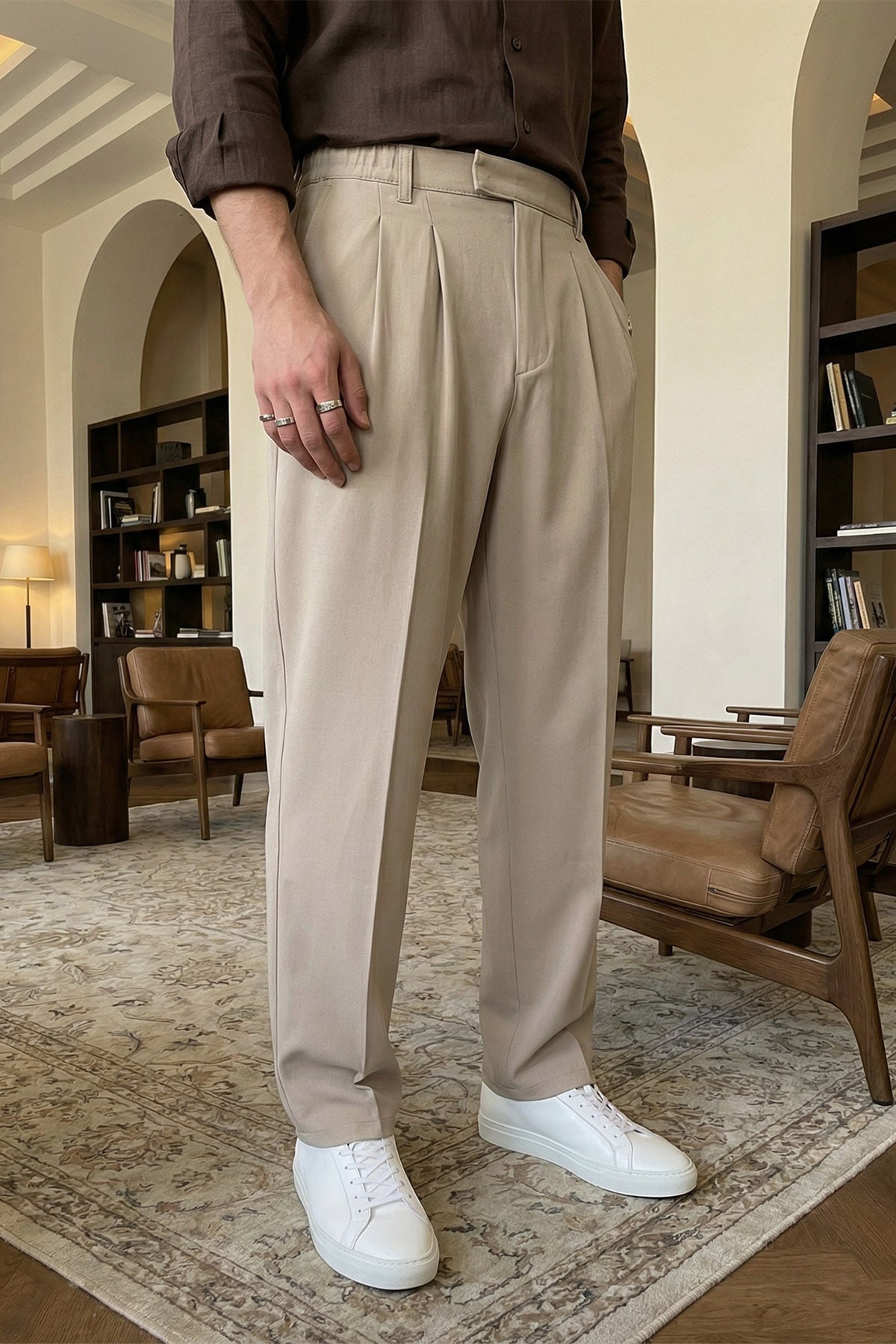 Erkek Kumaş Baggy Kalıp Pileli Pantolon