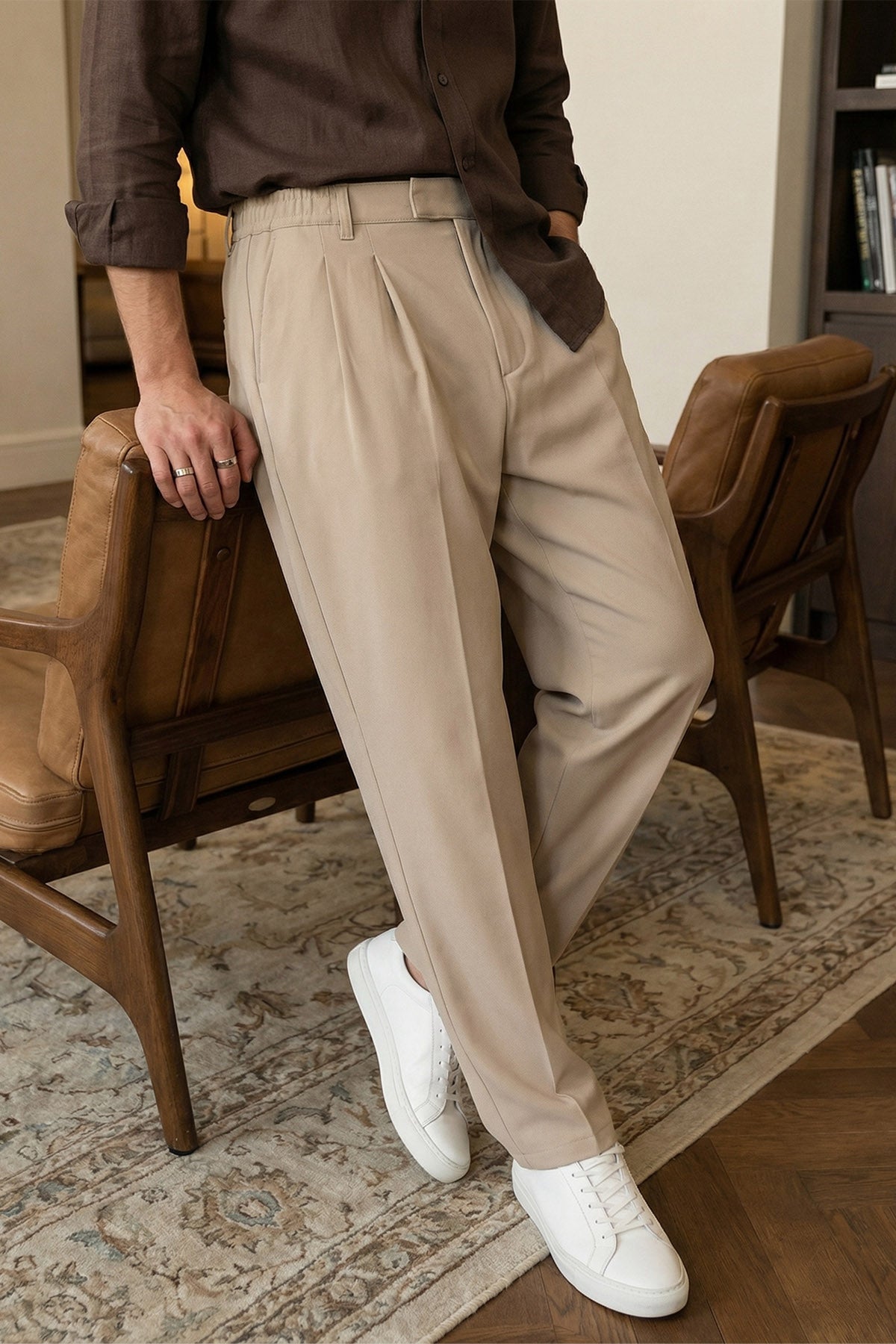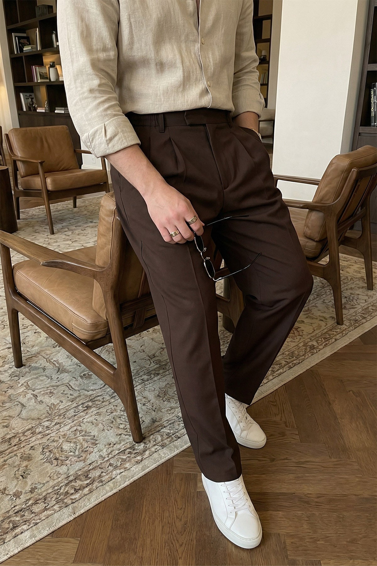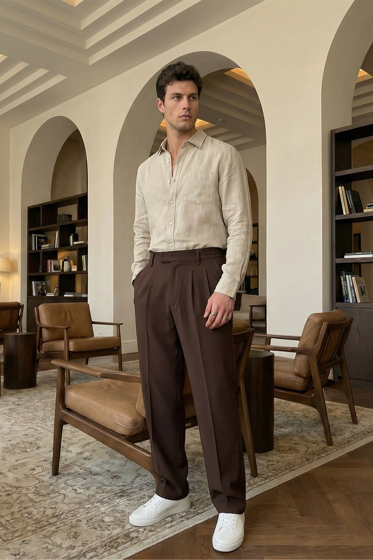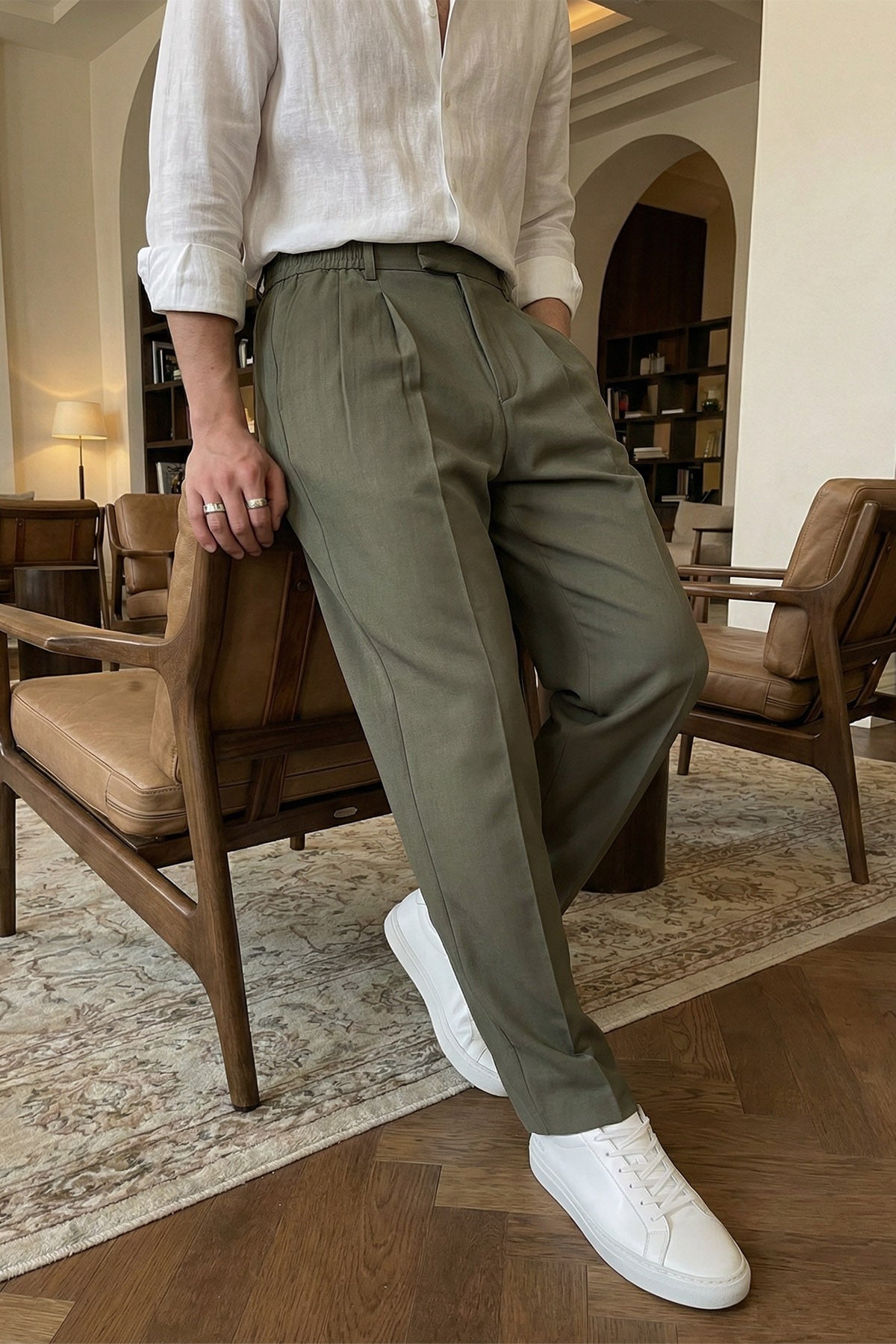 Boso Erkek Çift Pileli Keten Baggy Pantolon