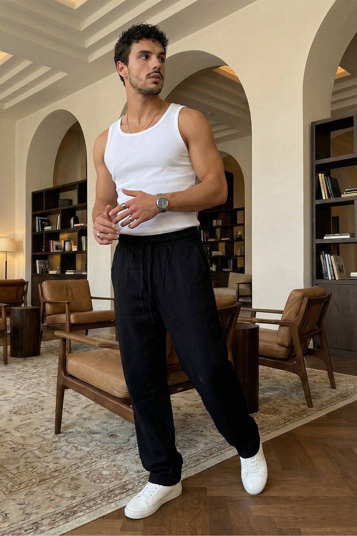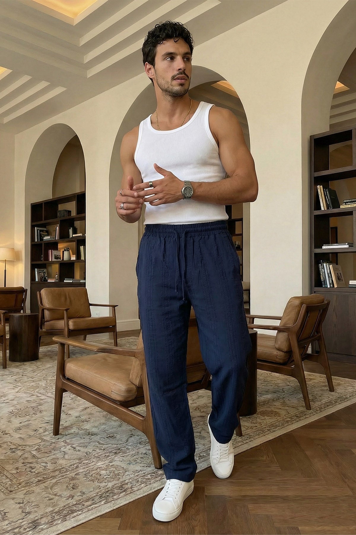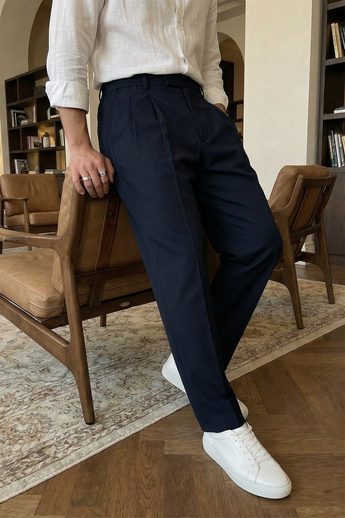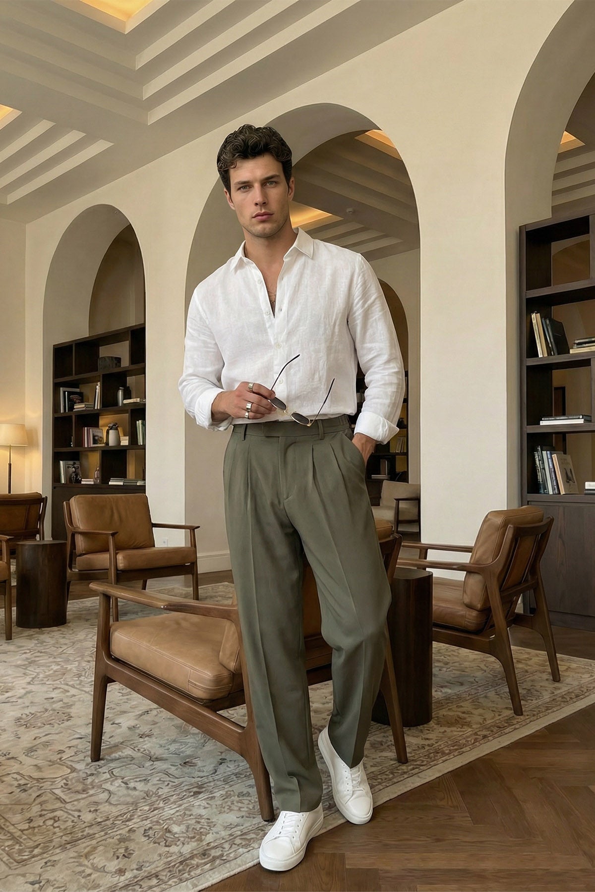 Boso Erkek Çift Pileli Keten Baggy Pantolon