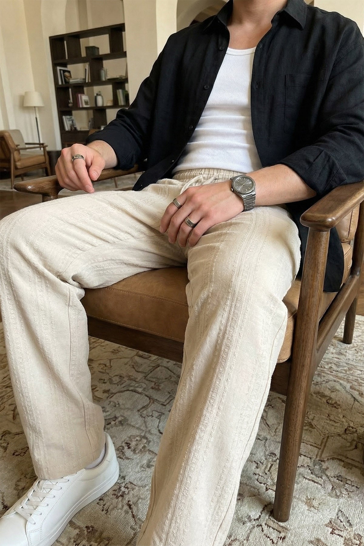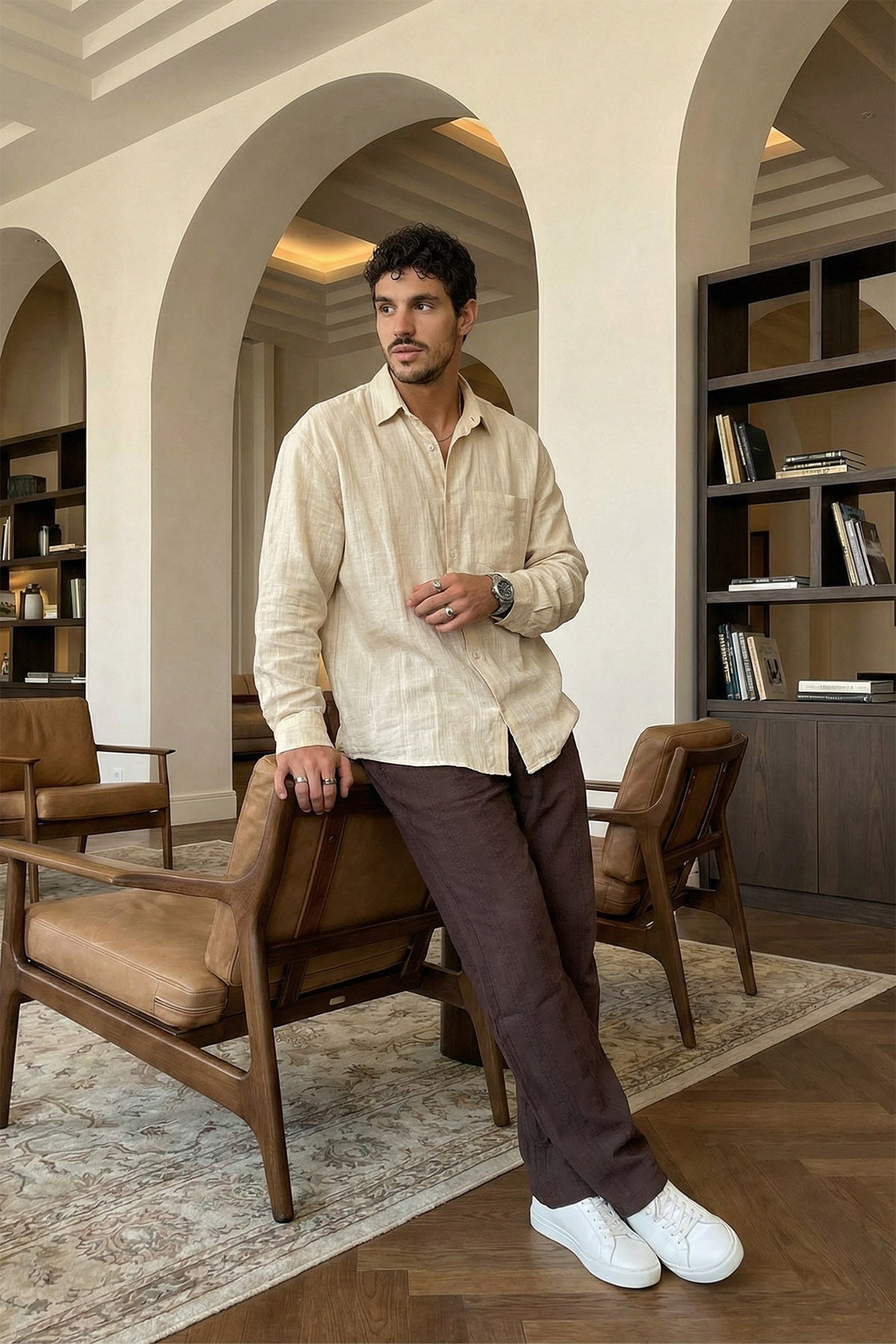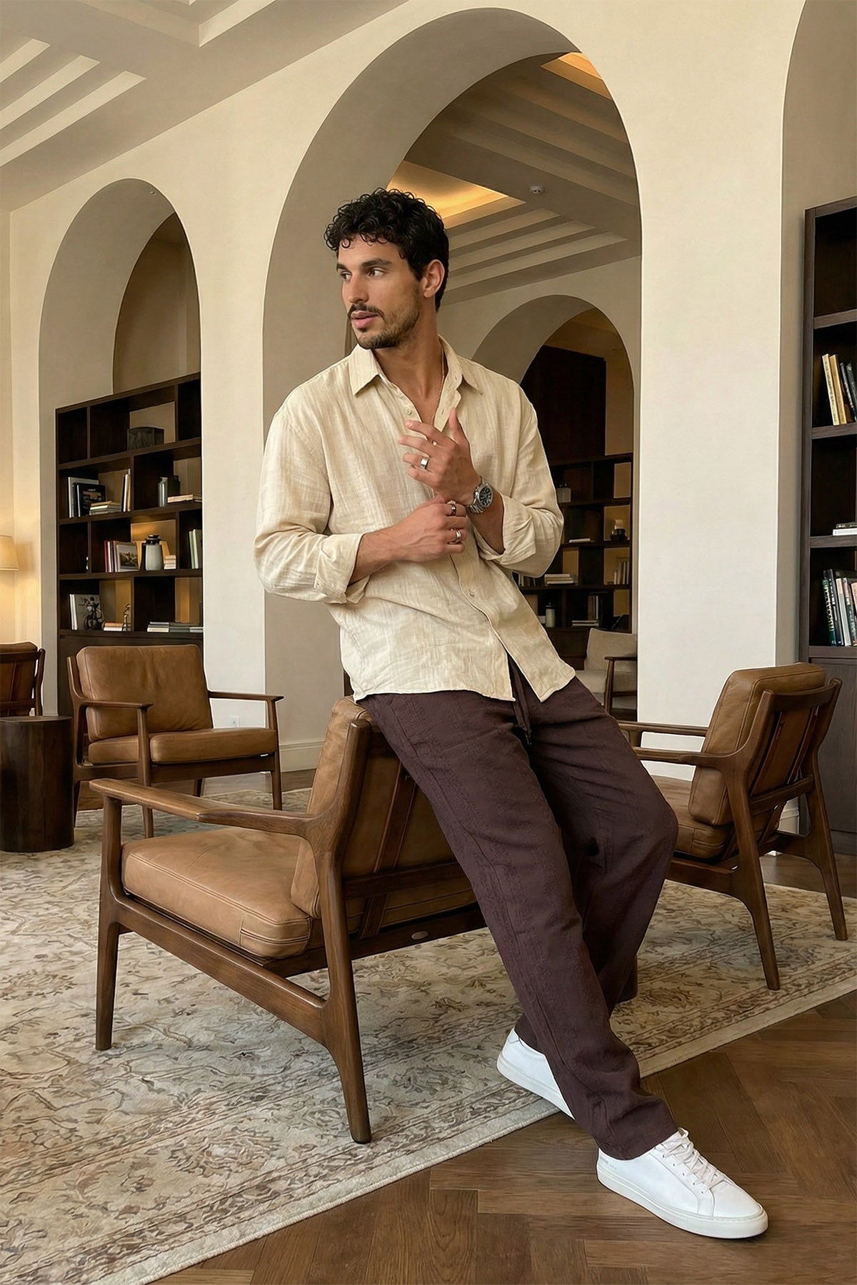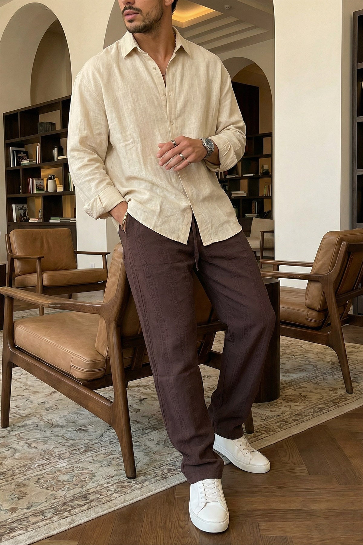 Nara Oversize Erkek İkili Keten Takım Gömlek Pantolon