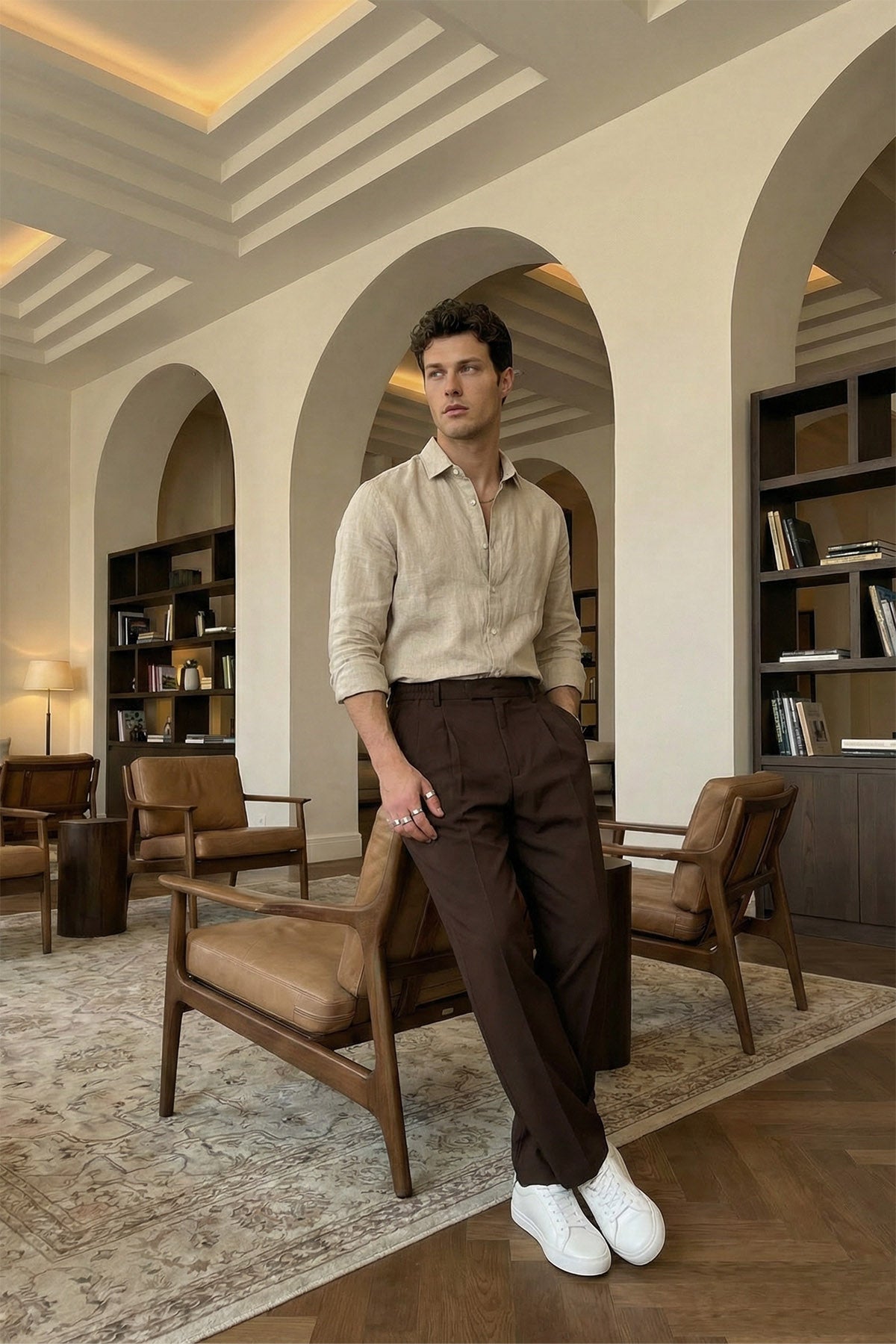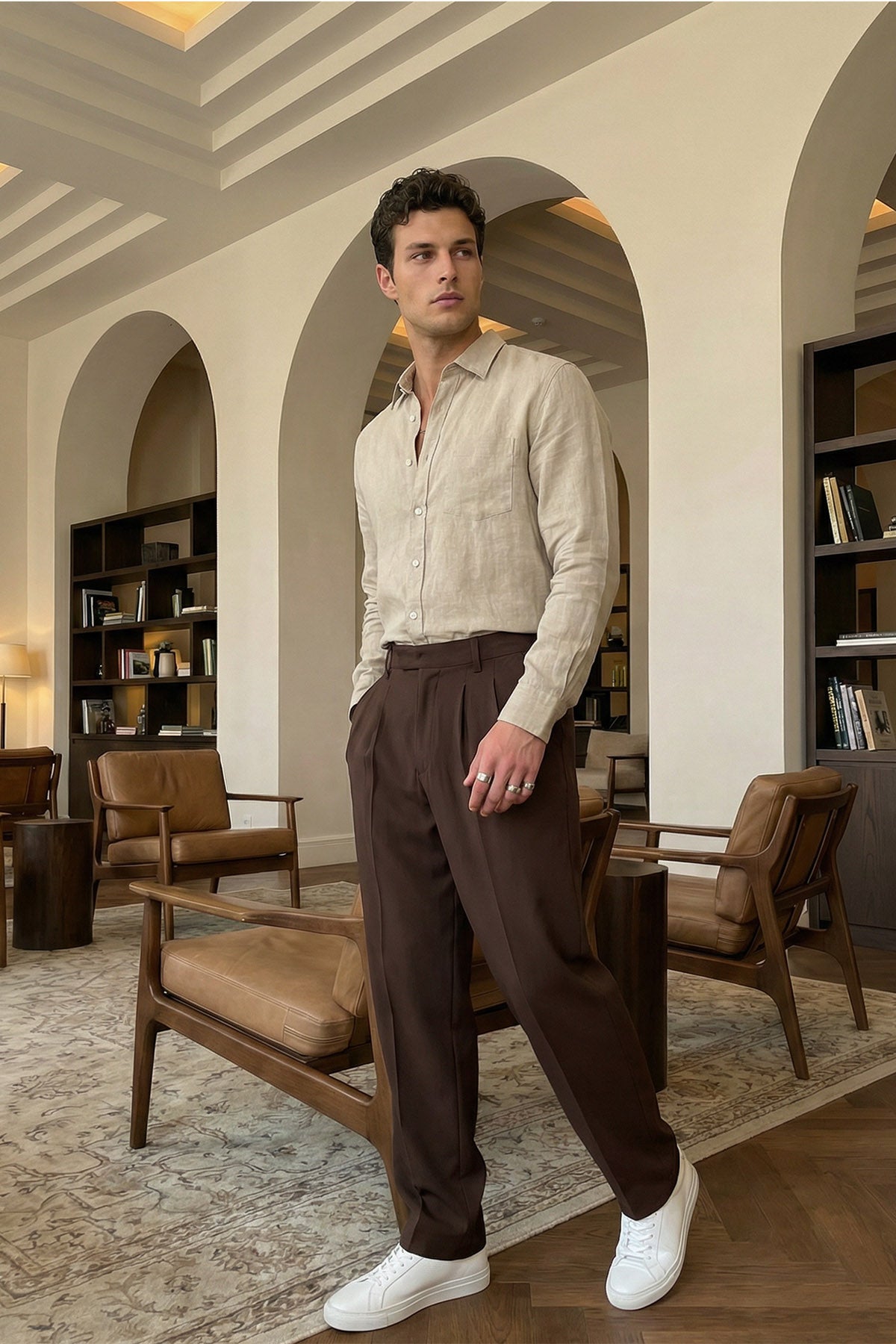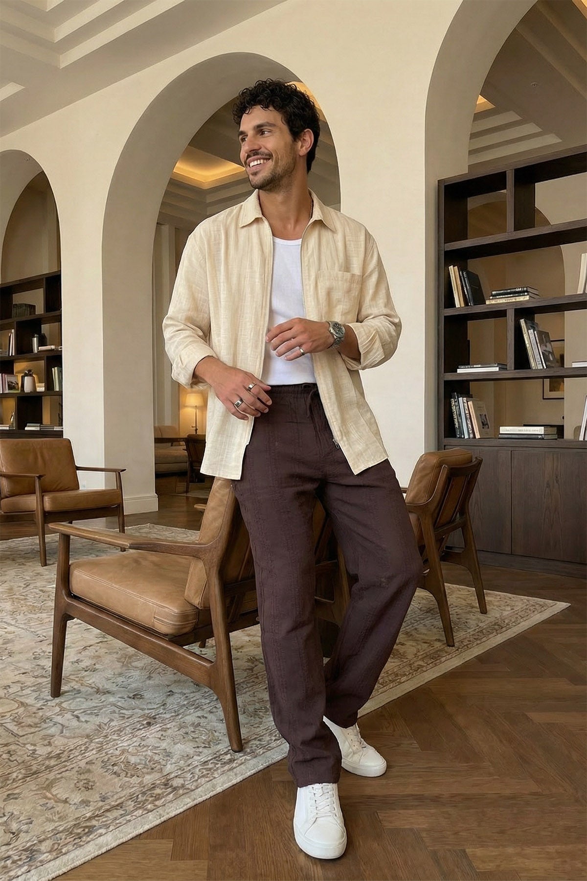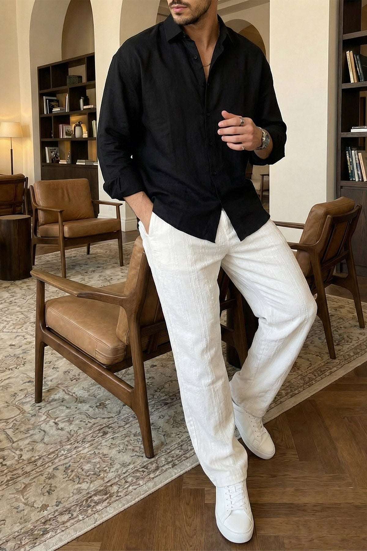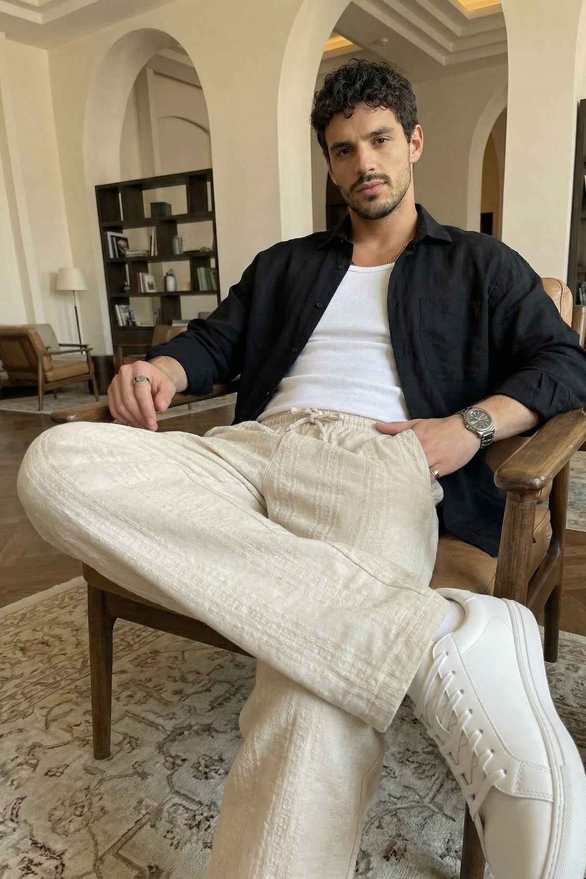 Nara Oversize Erkek İkili Keten Takım Gömlek Pantolon