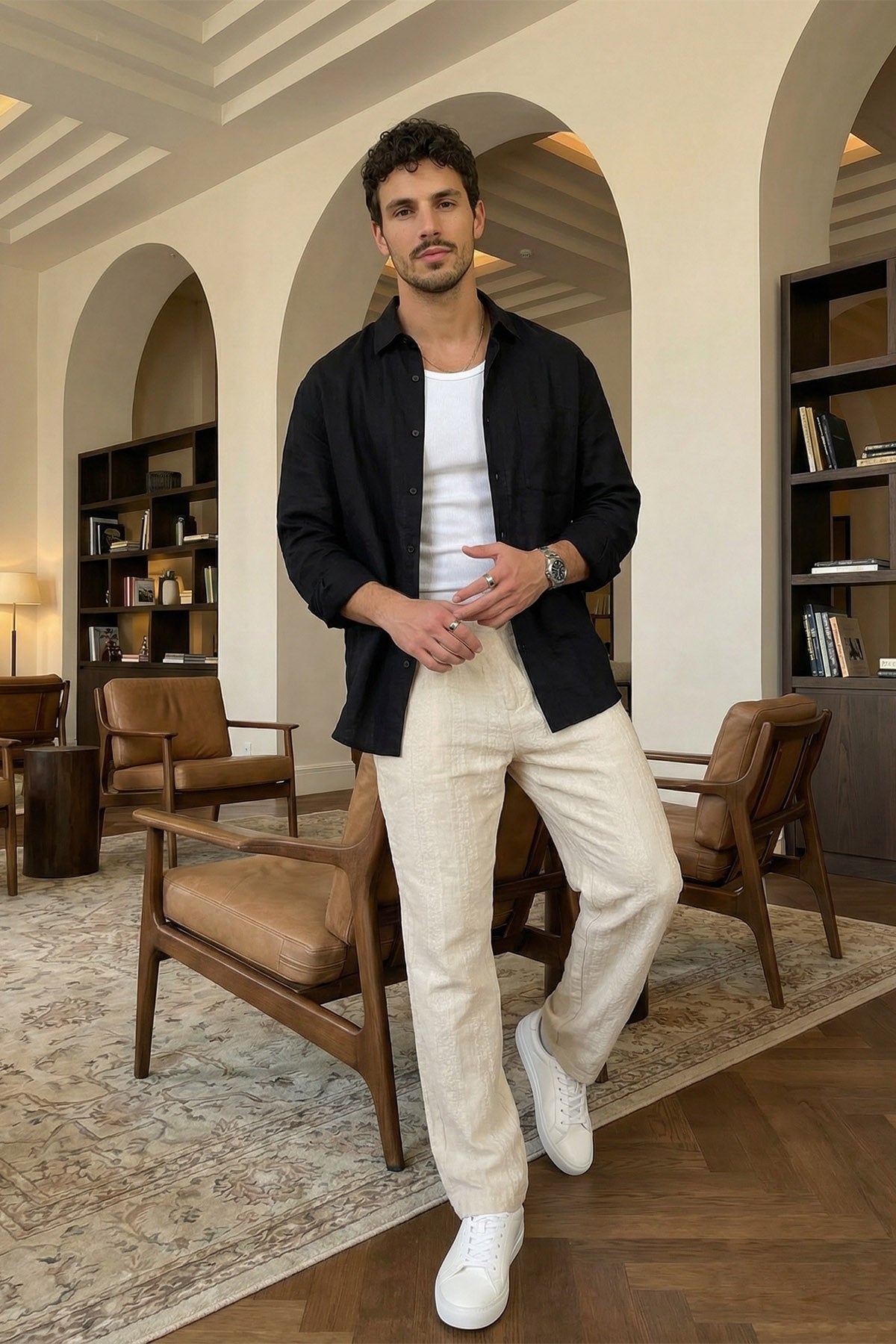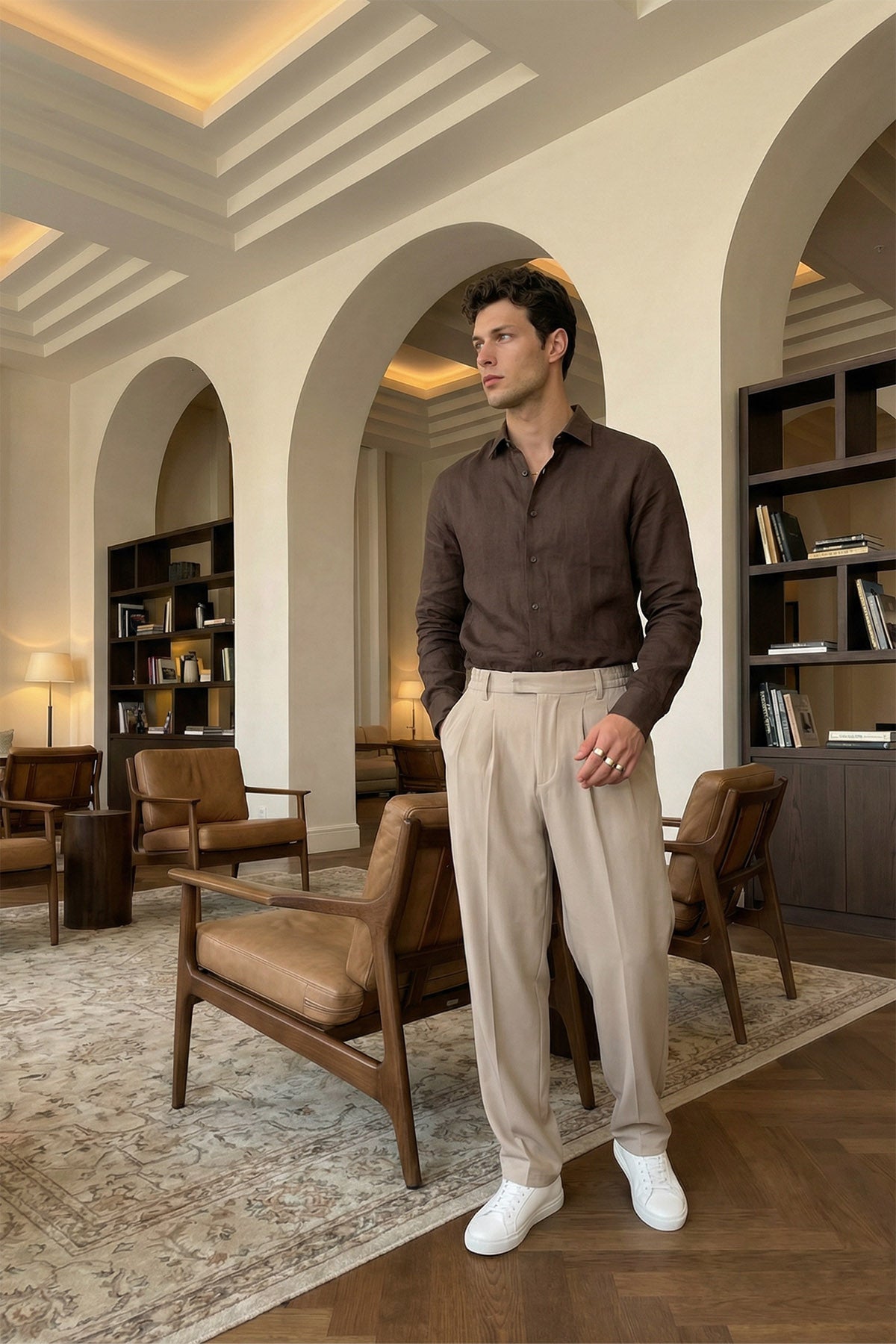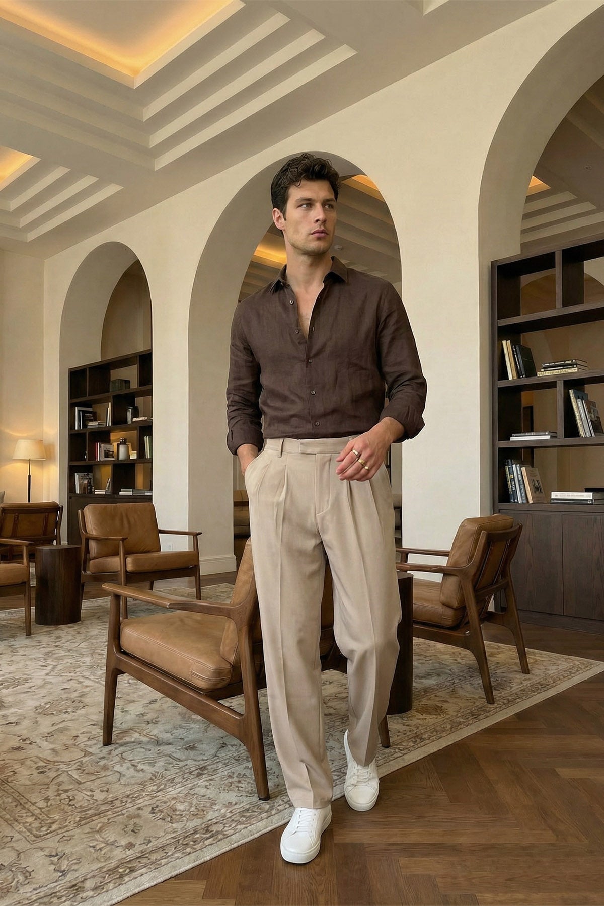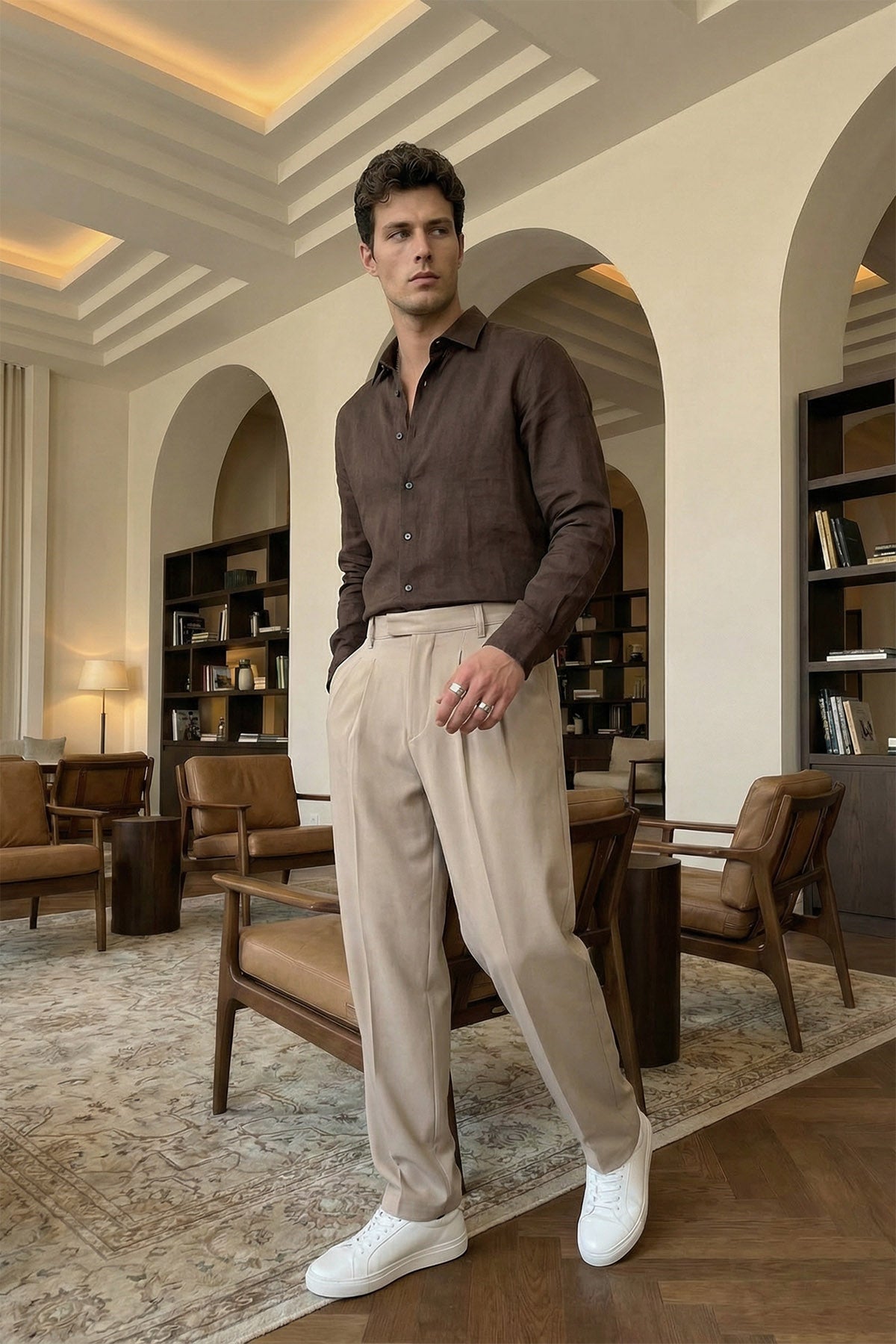 Nara Oversize Erkek İkili Keten Takım Gömlek Pantolon