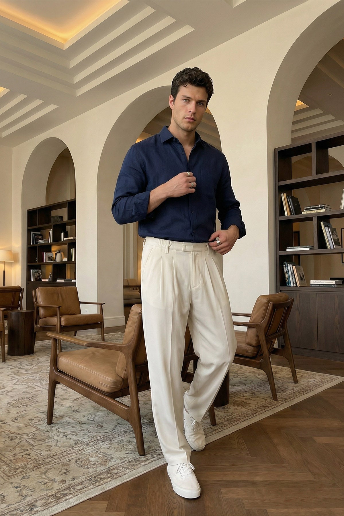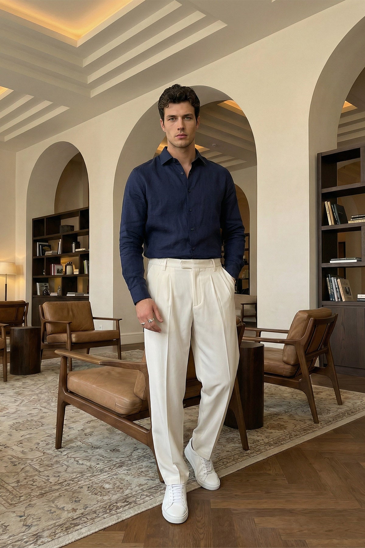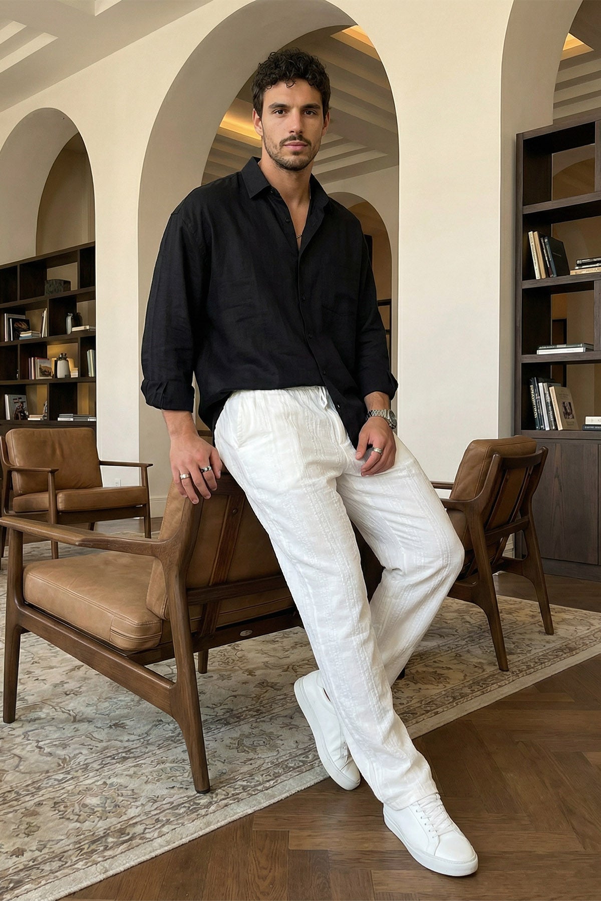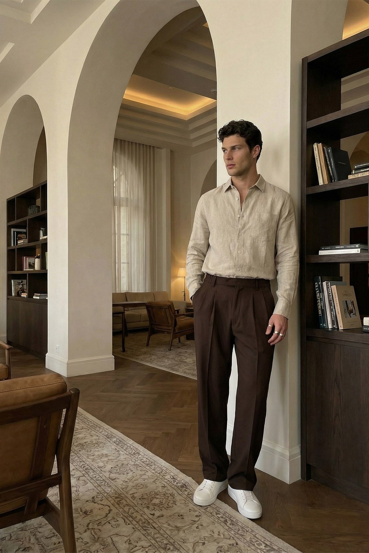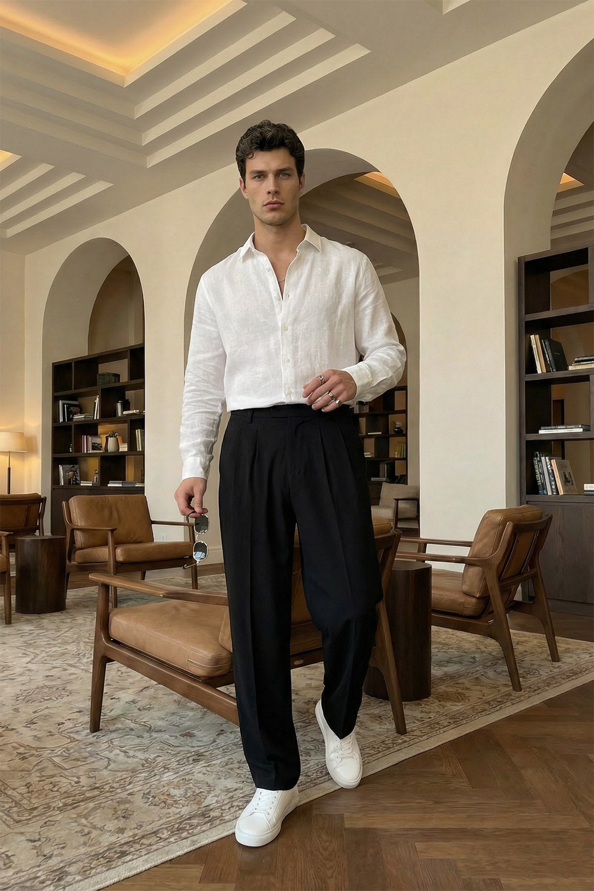 Nara Oversize Erkek İkili Keten Takım Gömlek Pantolon