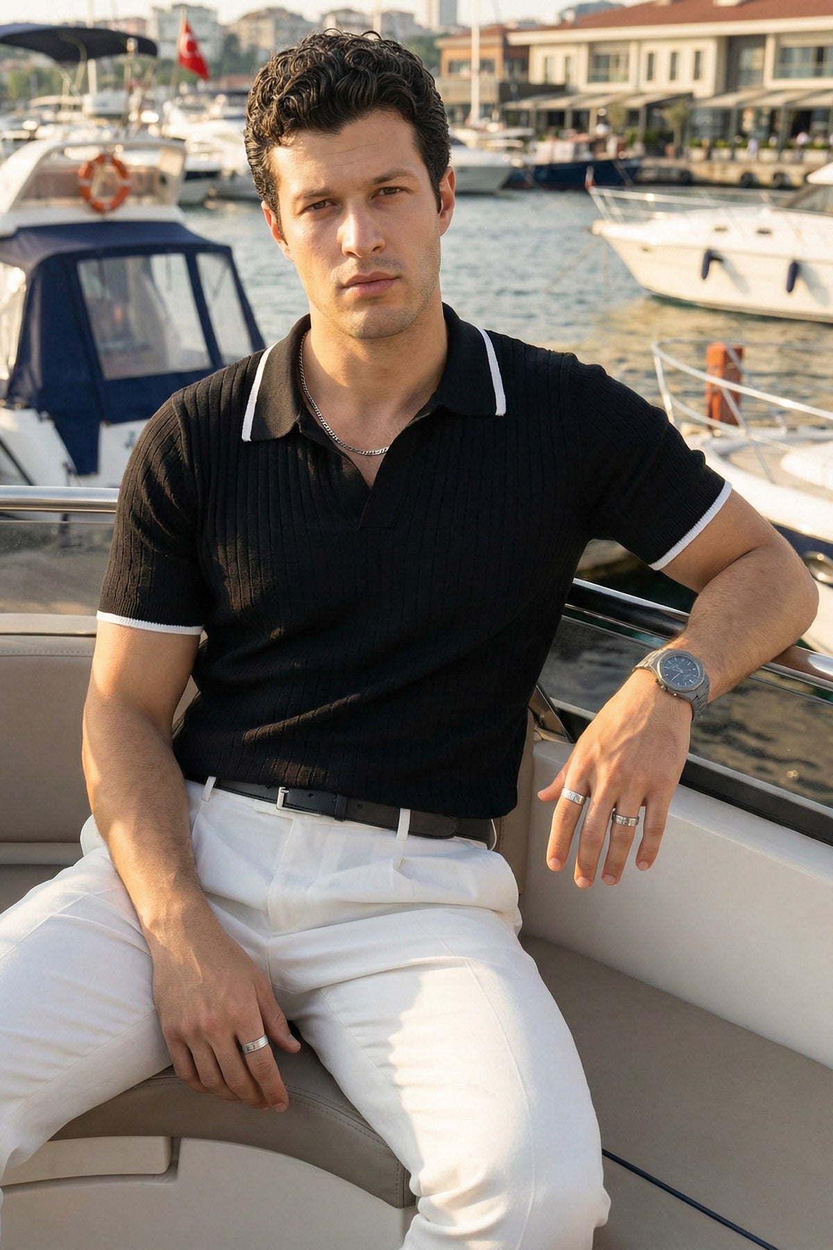 Bande Regular Fit Erkek Kısa Kol Triko Polo Yaka Dokulu Tişört
