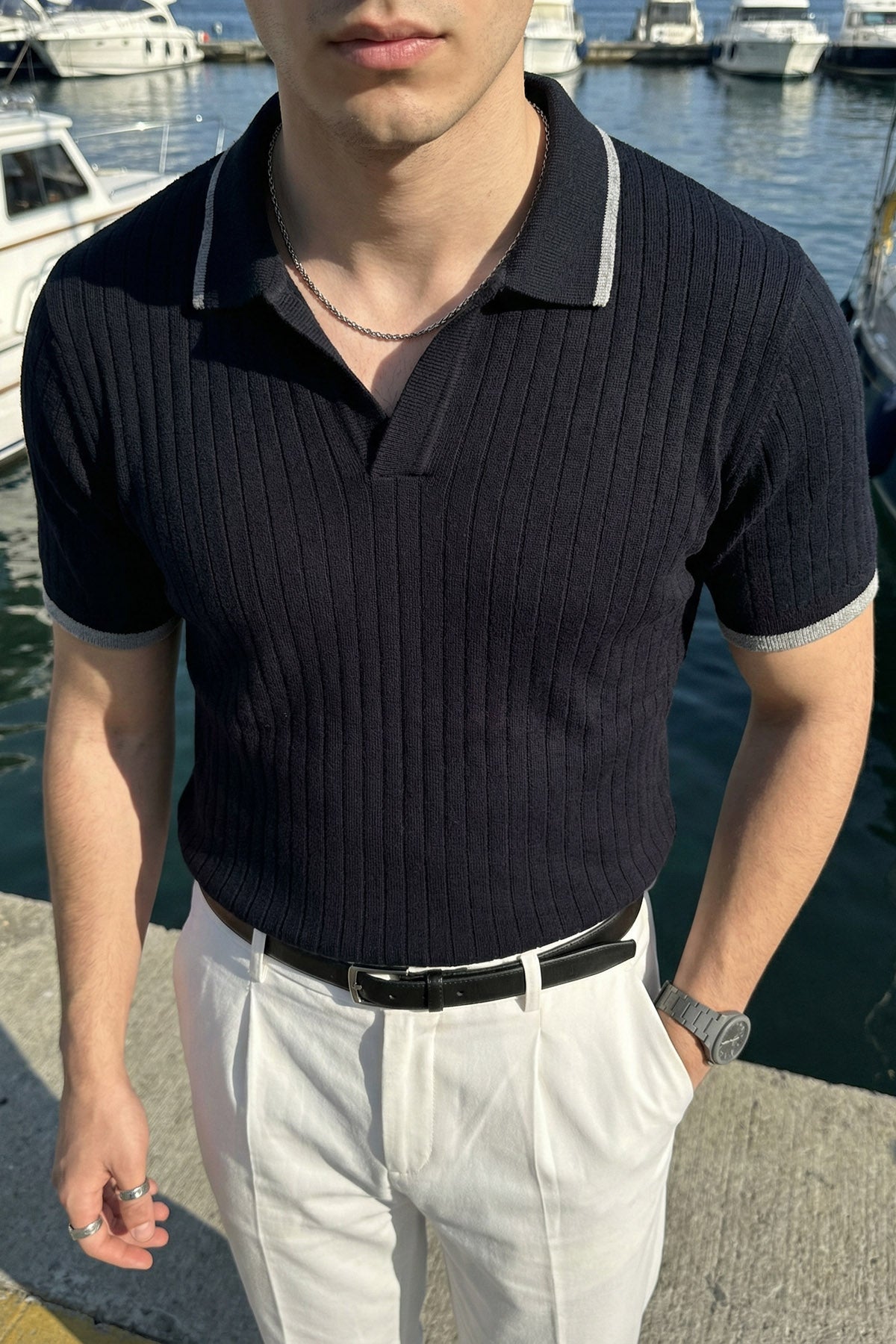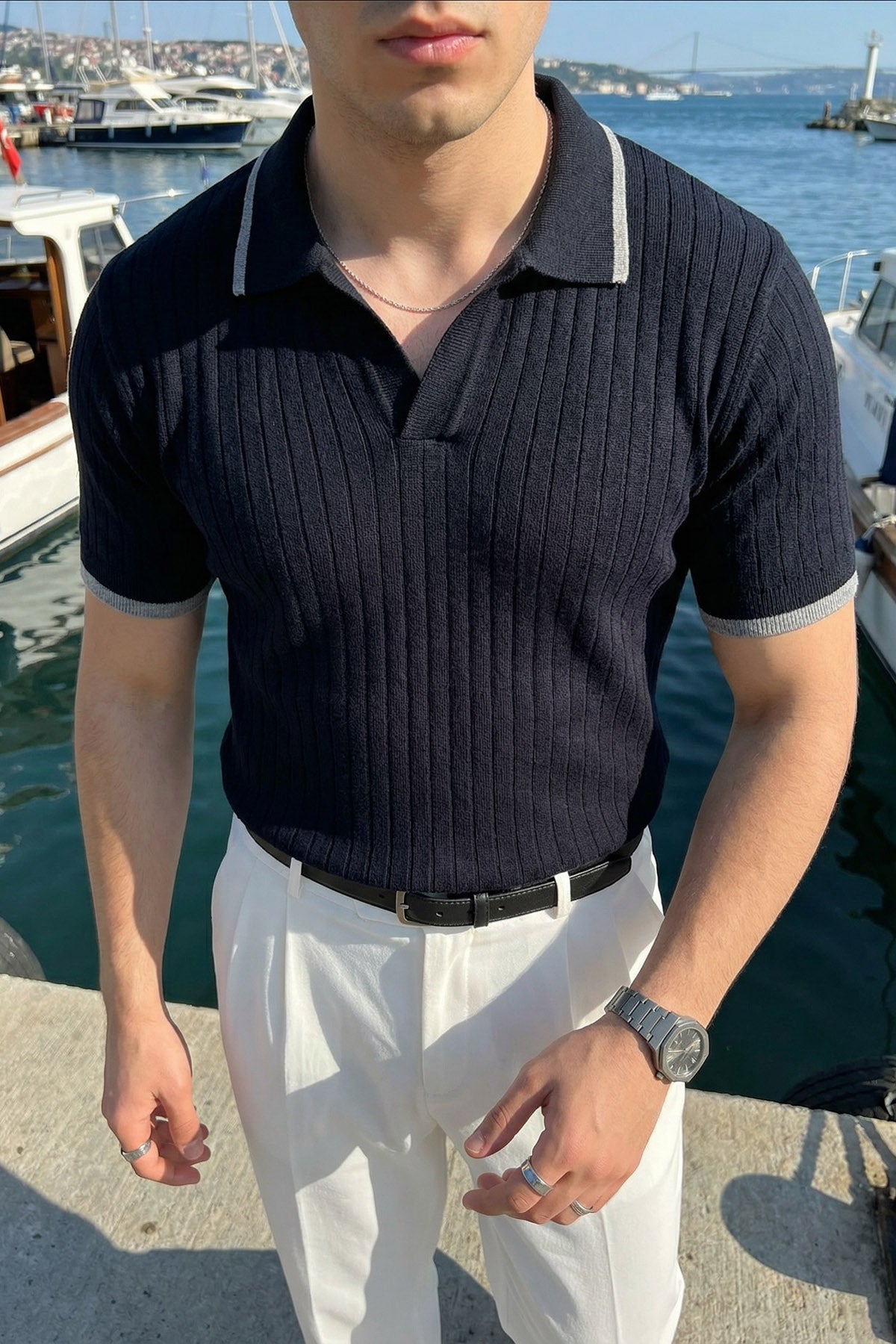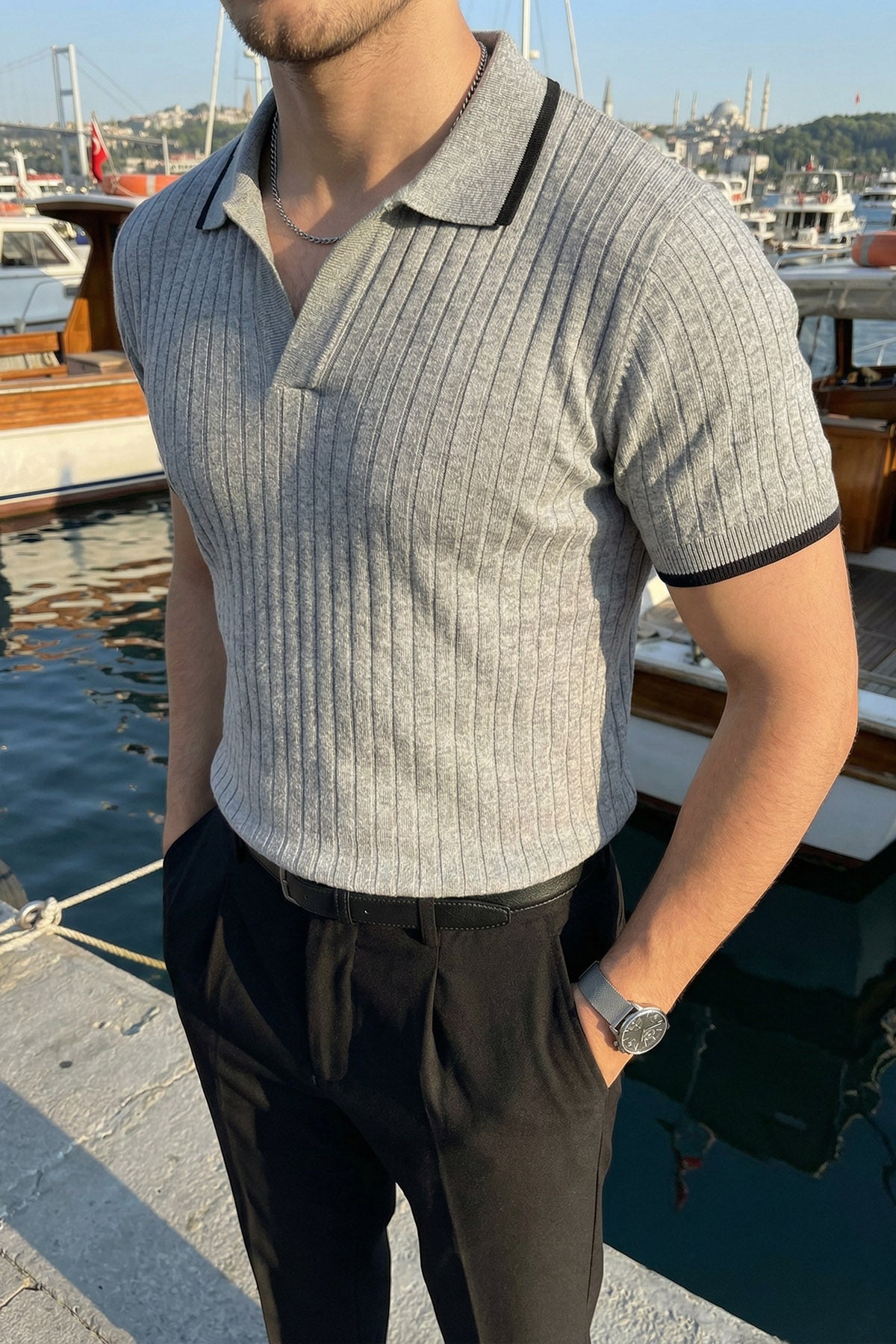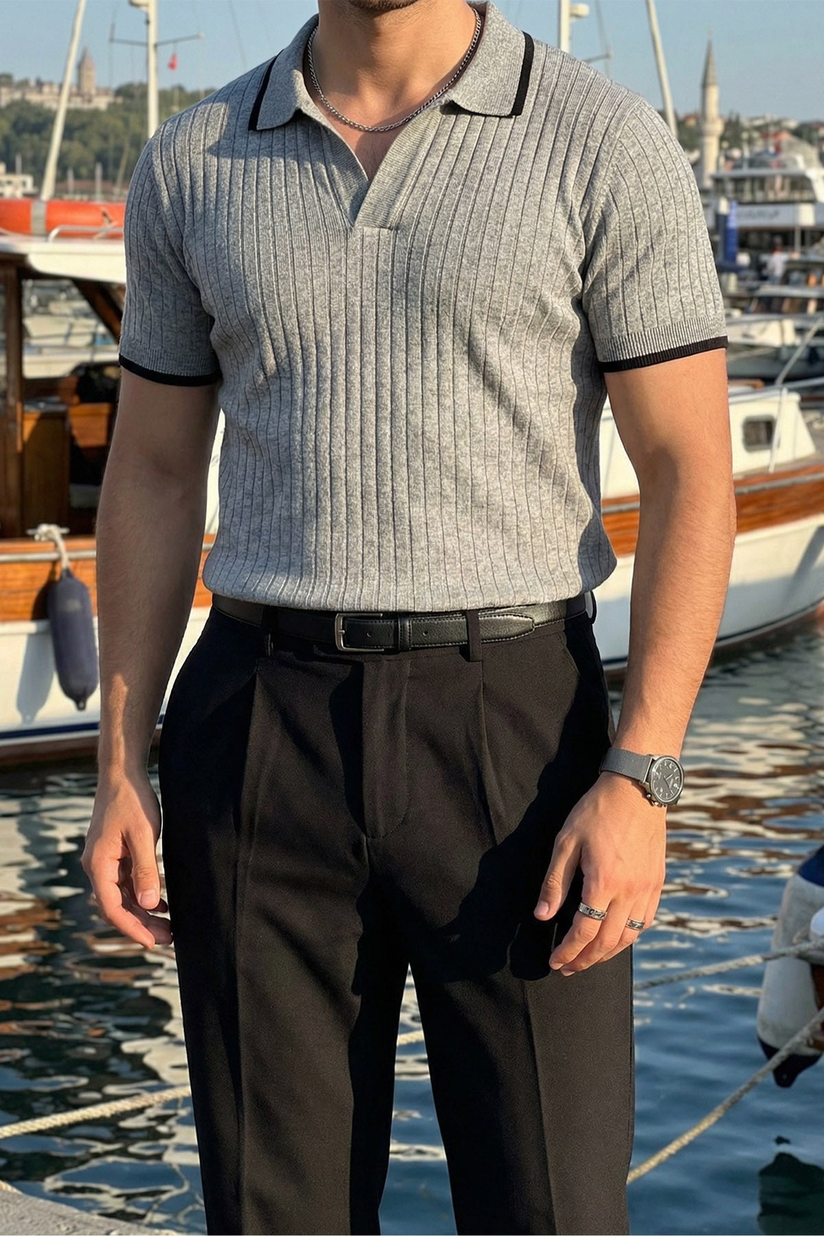 Basay Premium Çizgili Triko Polo Yaka Erkek Tişört