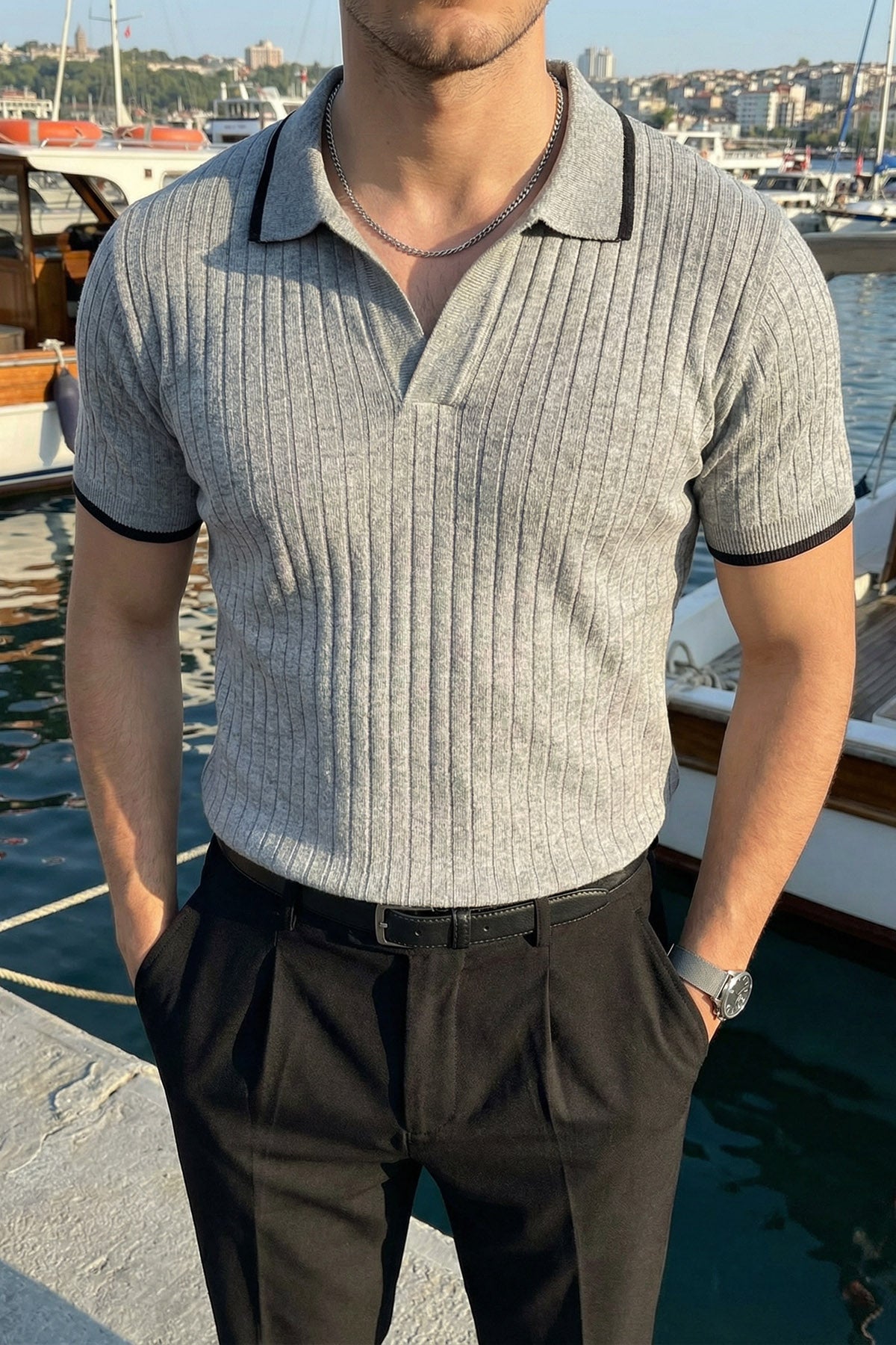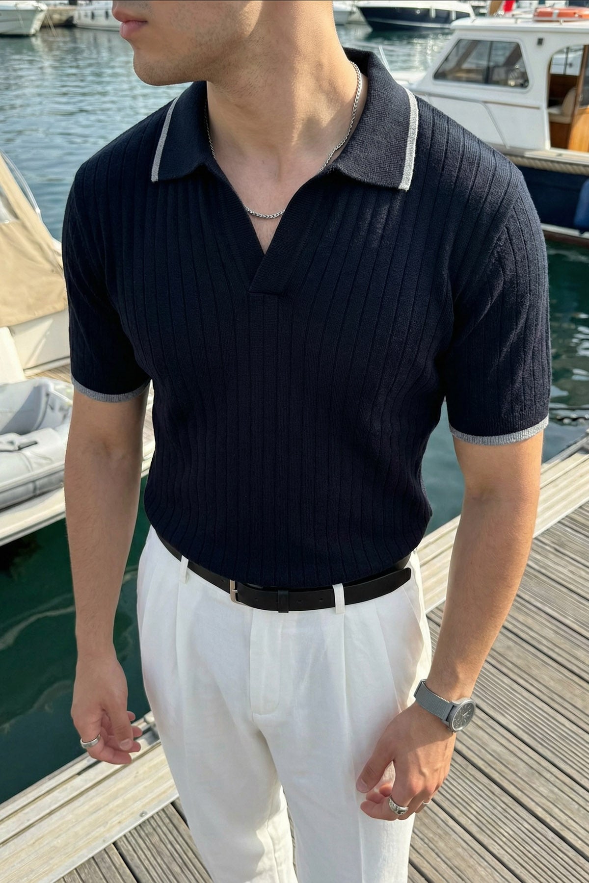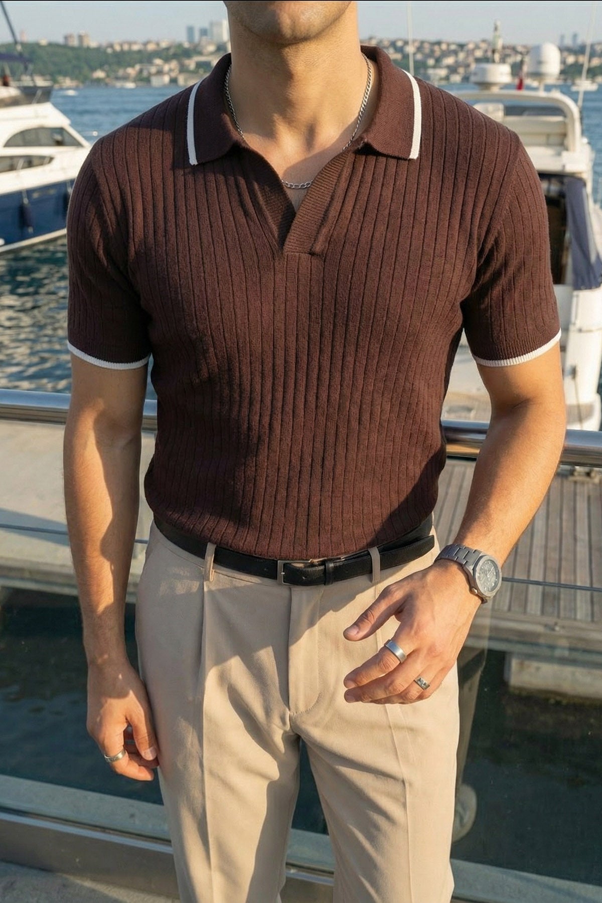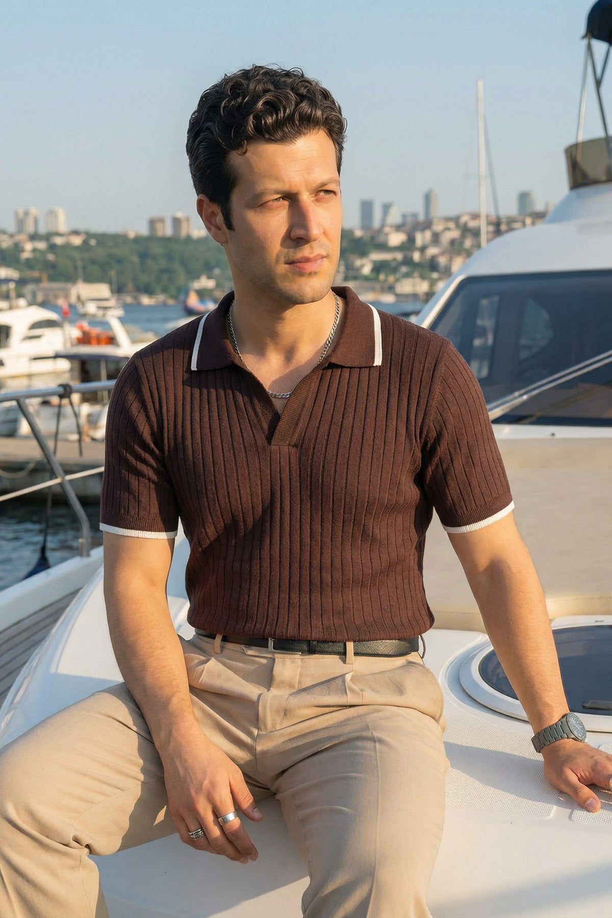 Basay Premium Çizgili Triko Polo Yaka Erkek Tişört