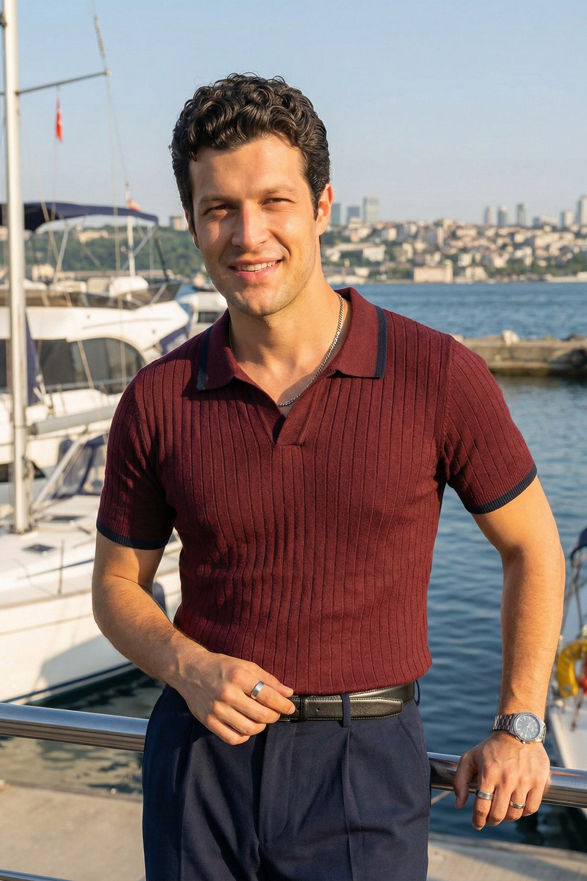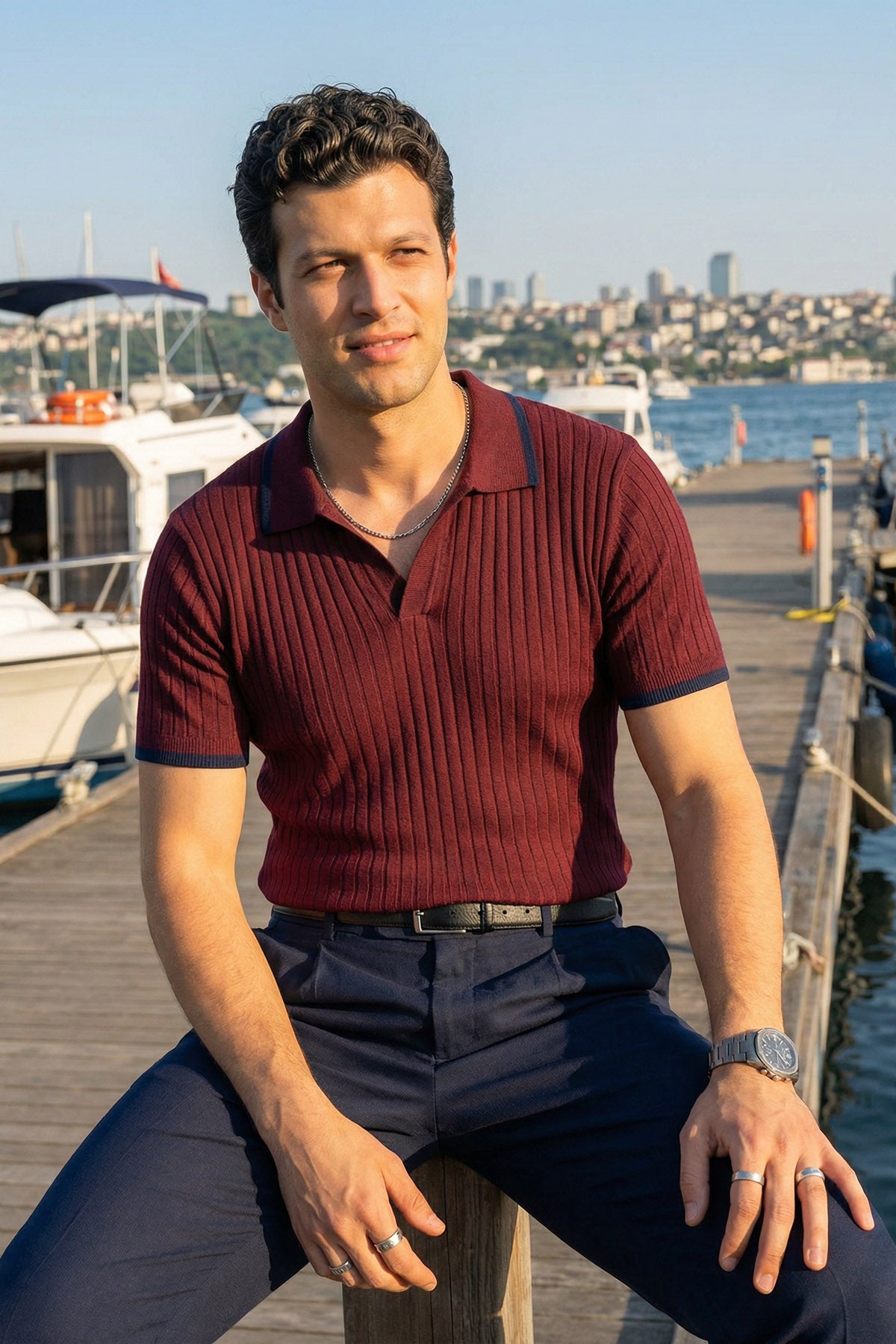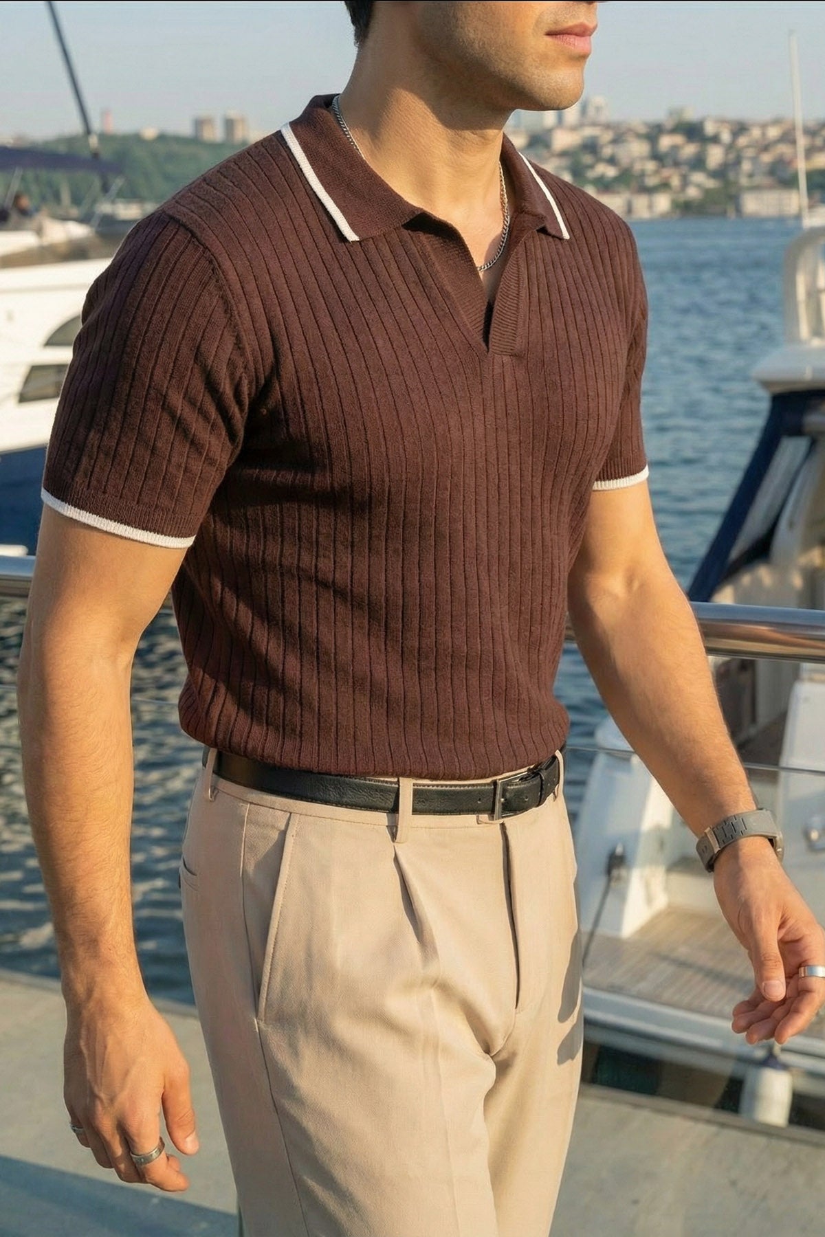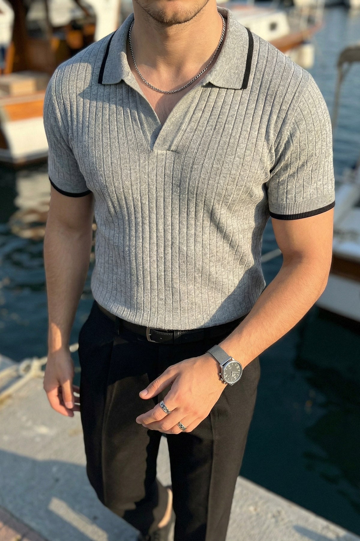 Basay Premium Çizgili Triko Polo Yaka Erkek Tişört
