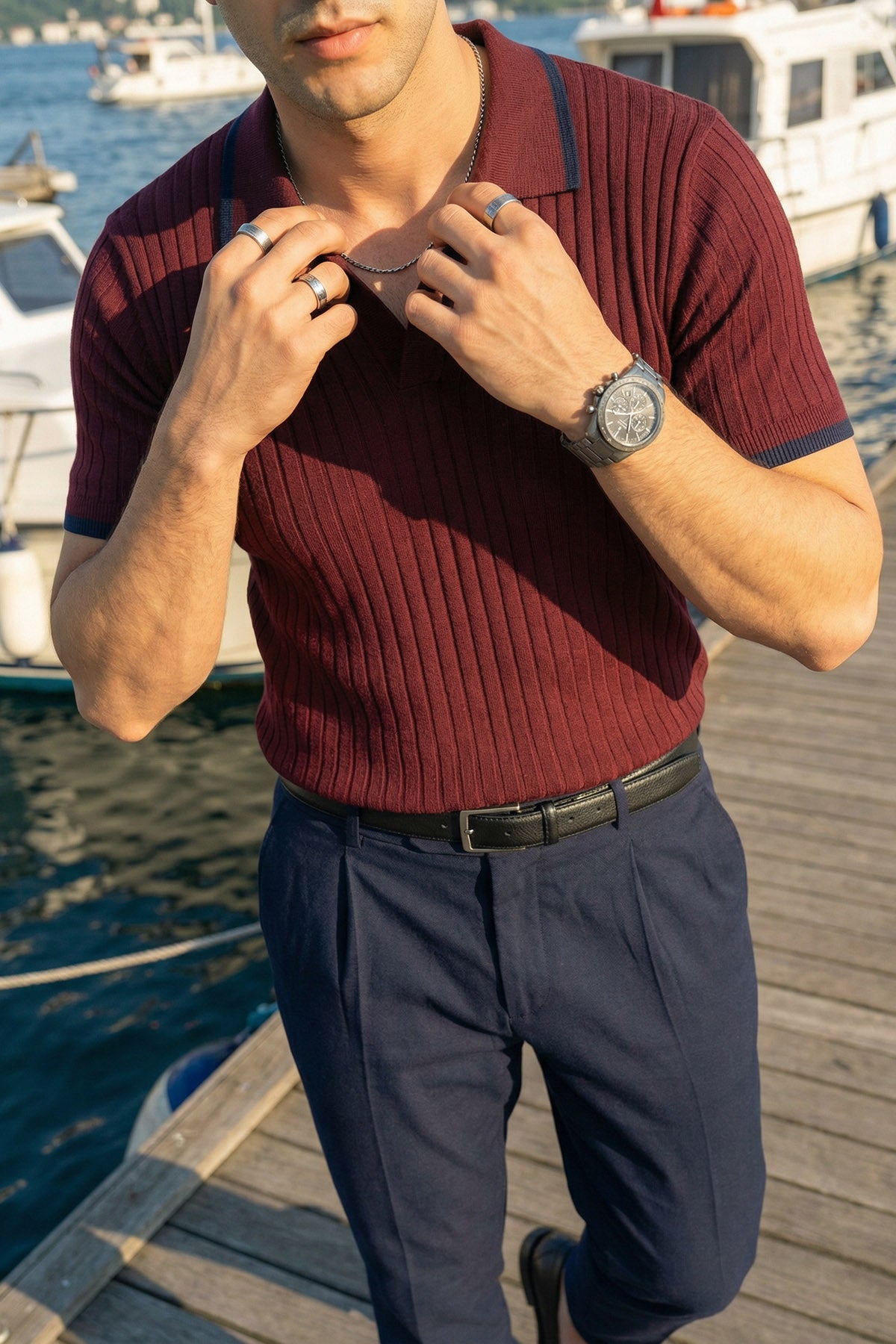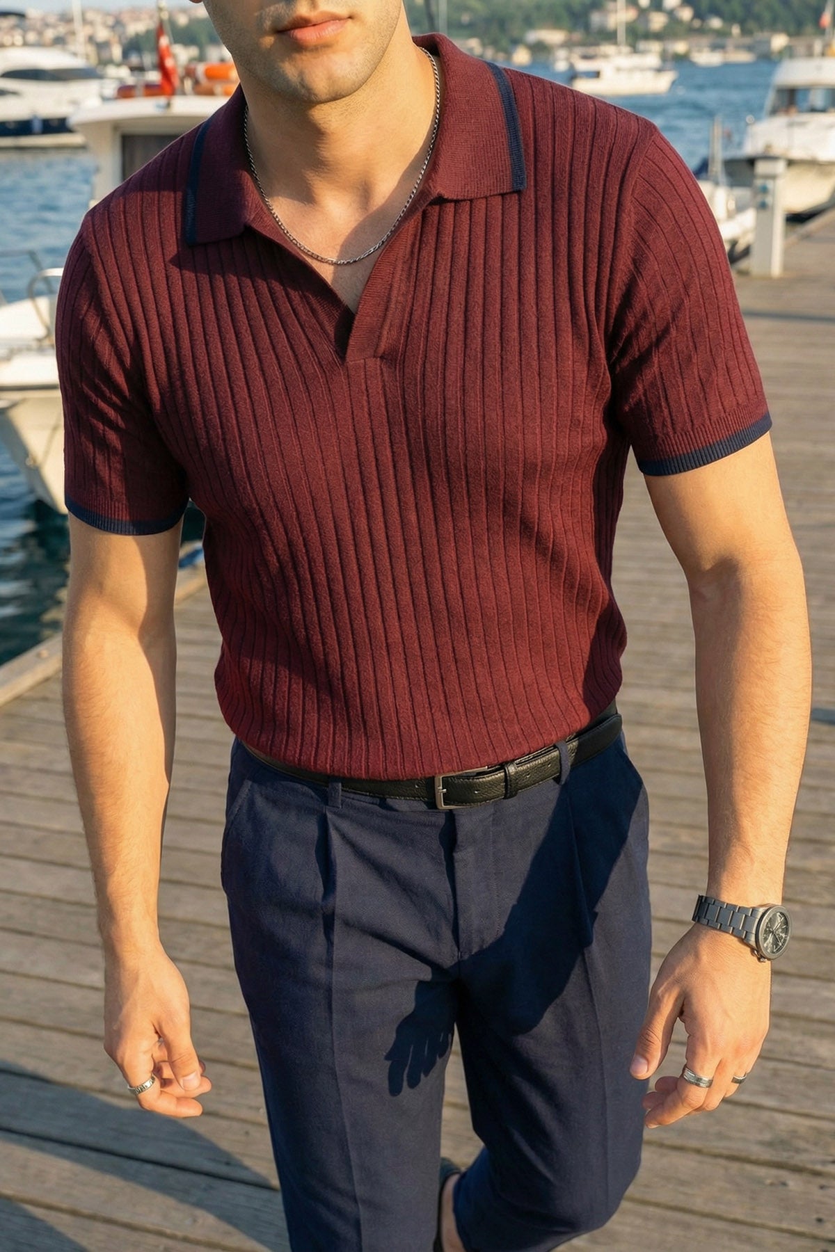 Osko Erkek Polo Yaka Pamuk Düz İnce Triko Tişört