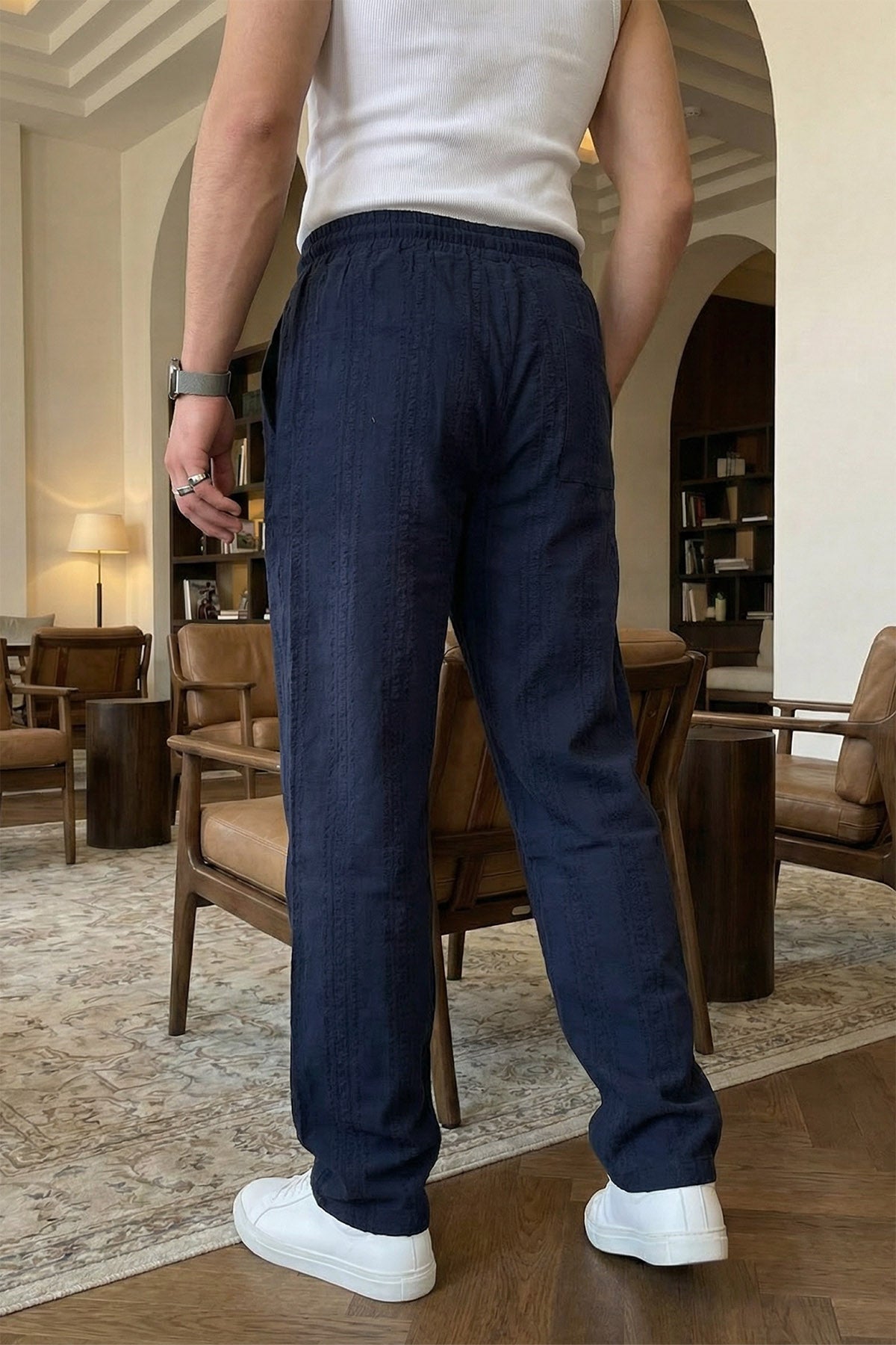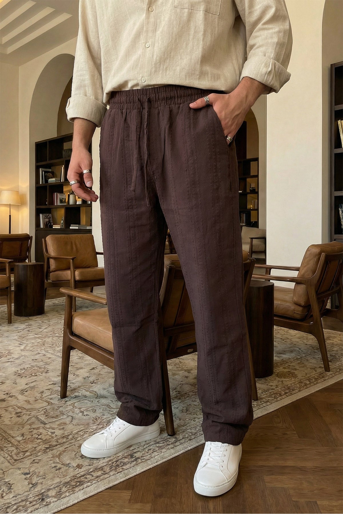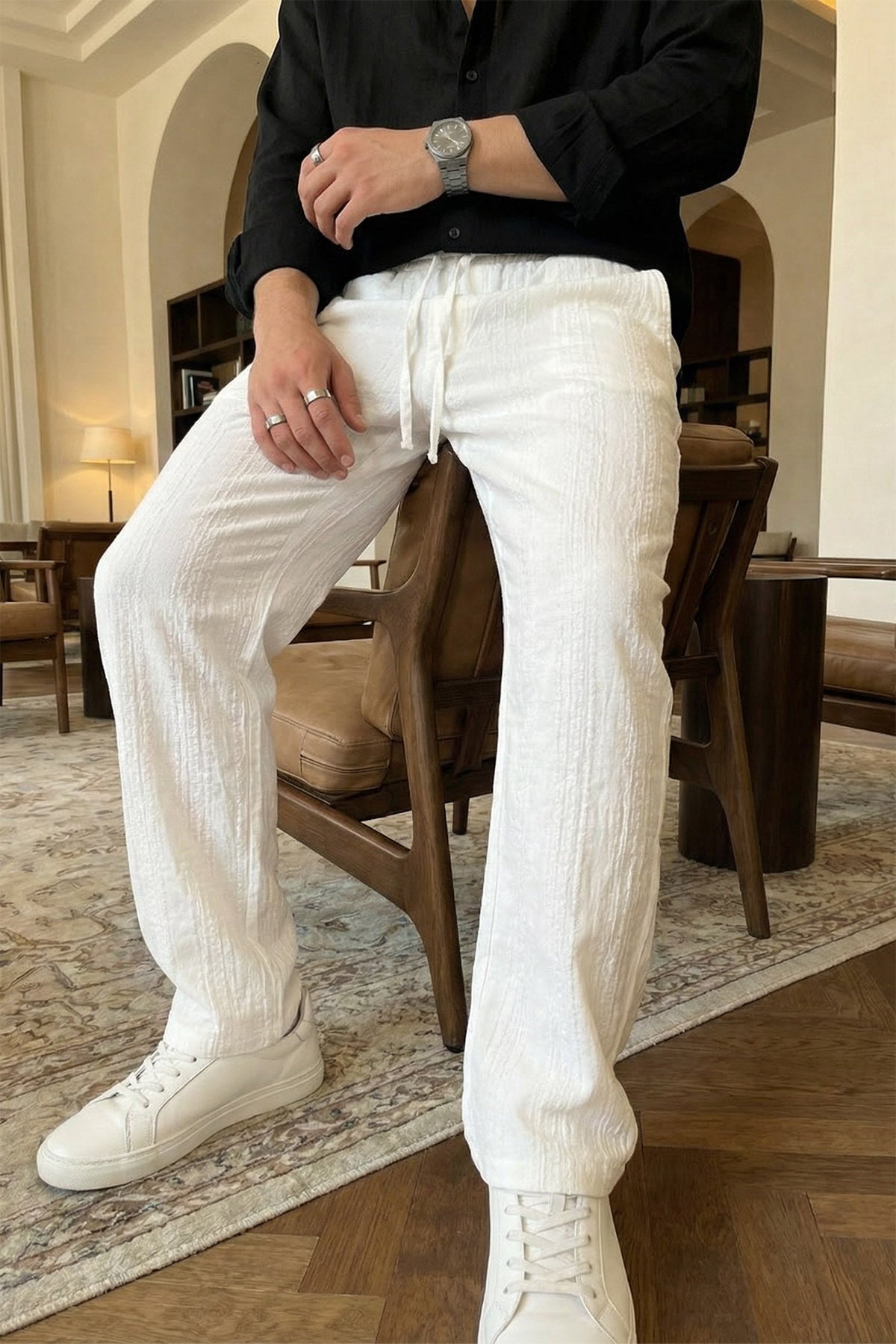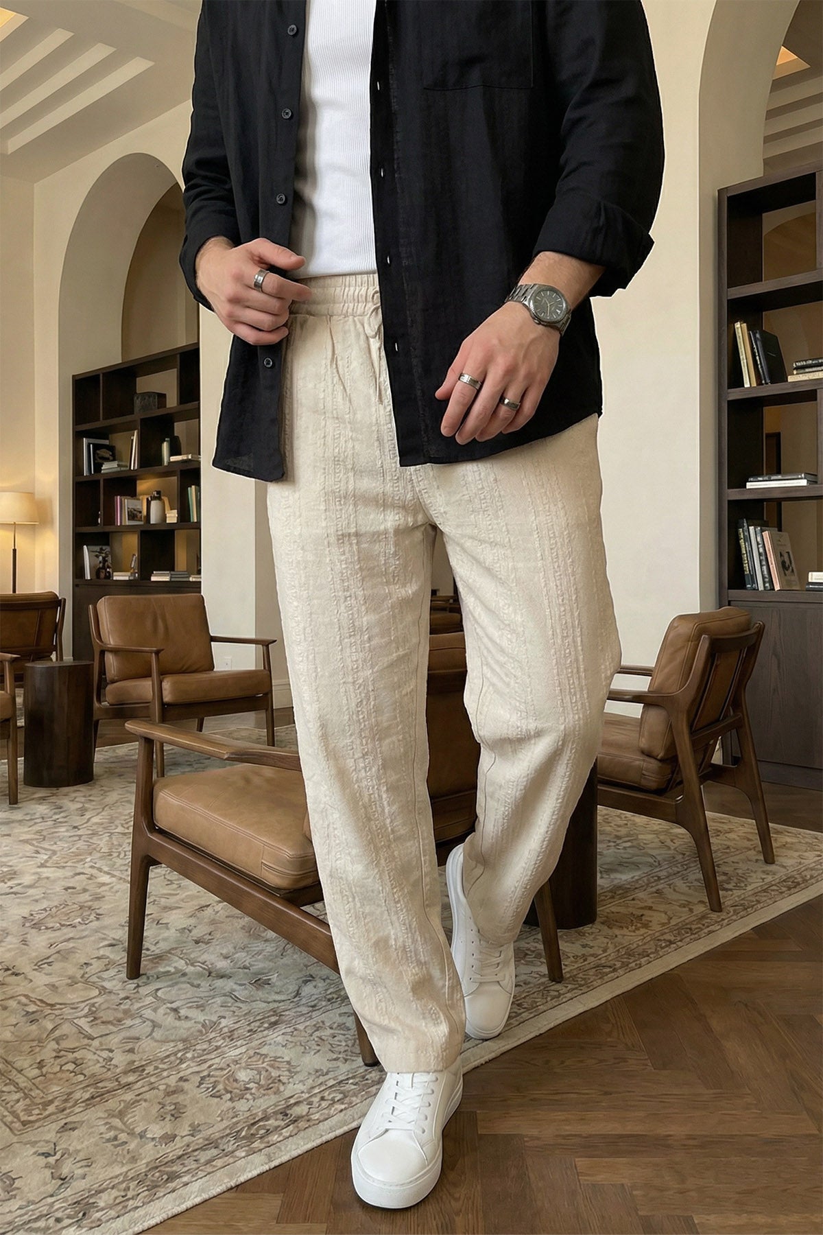 Bunga Desenli Keten Görünümlü Lastikli Erkek Pantolon