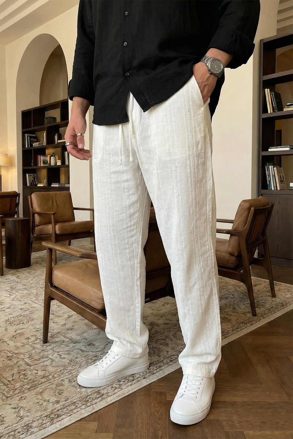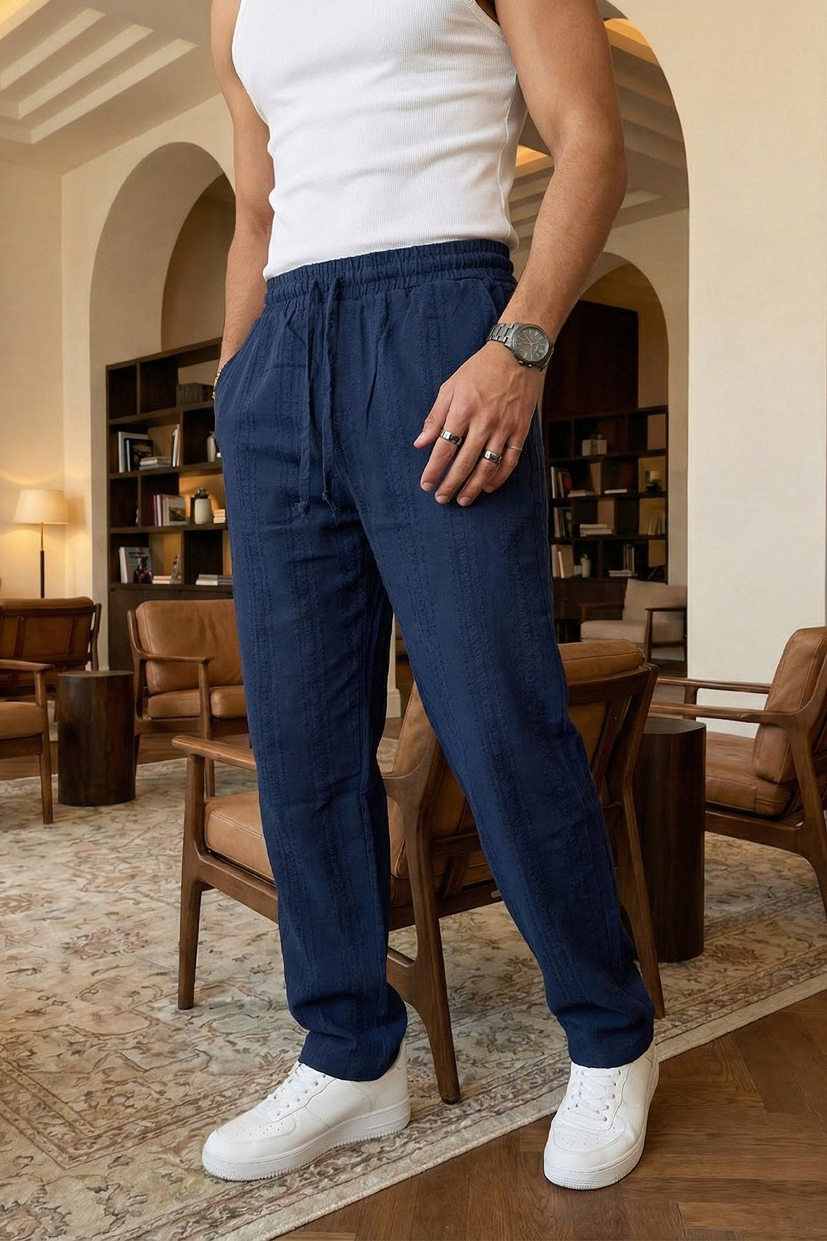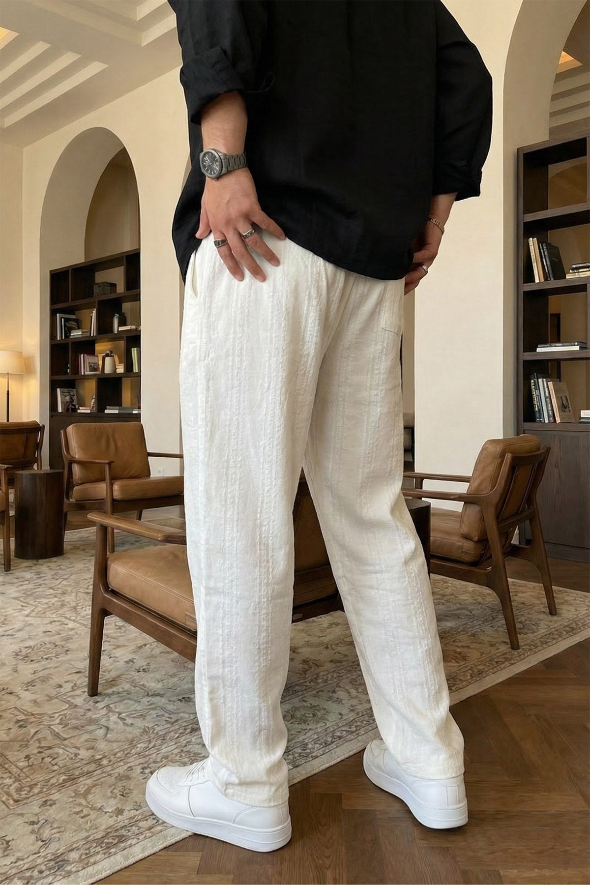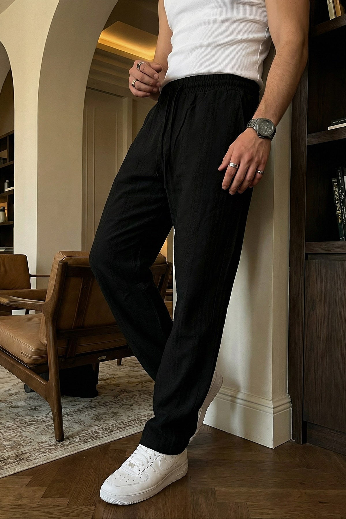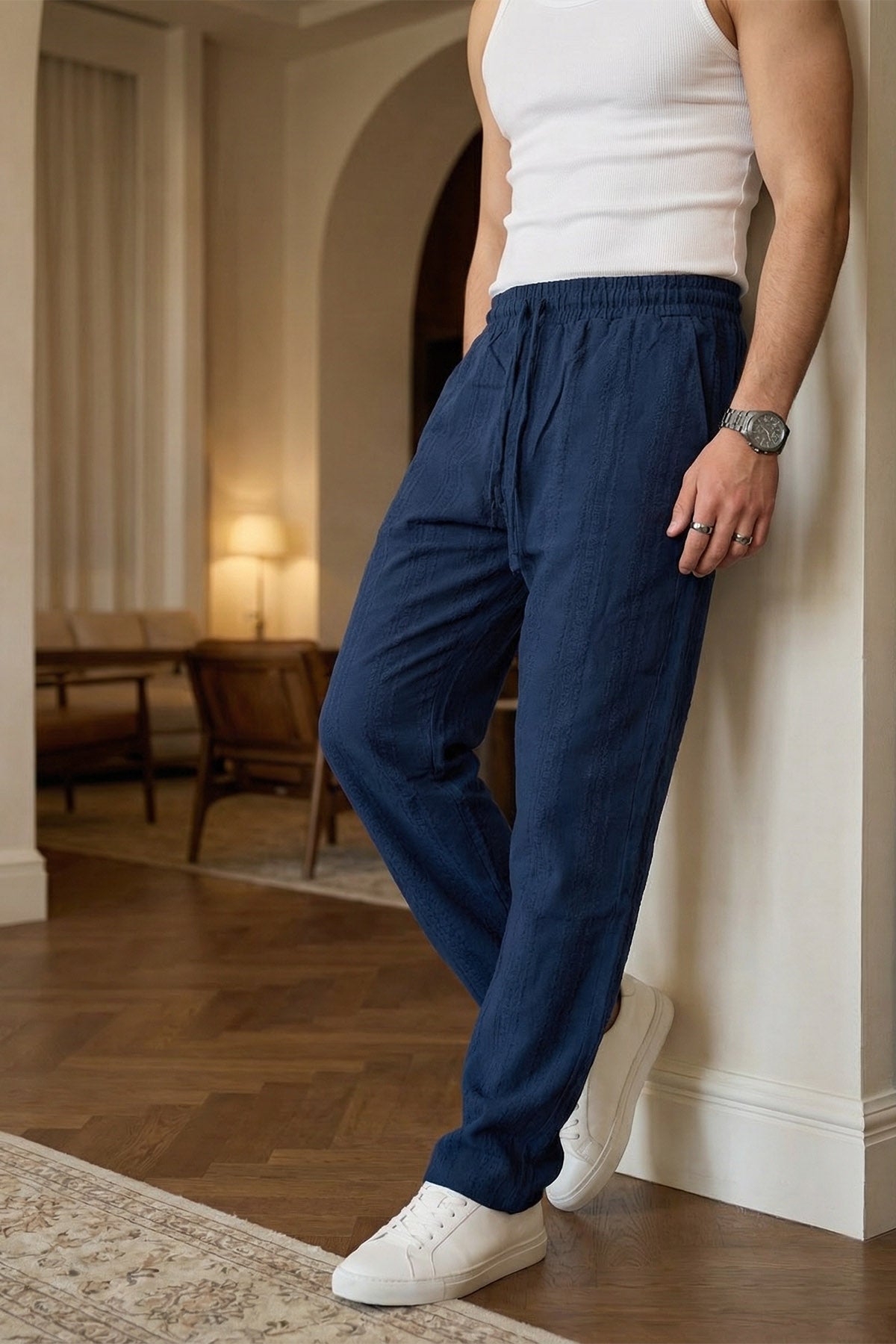 Bunga Desenli Keten Görünümlü Lastikli Erkek Pantolon