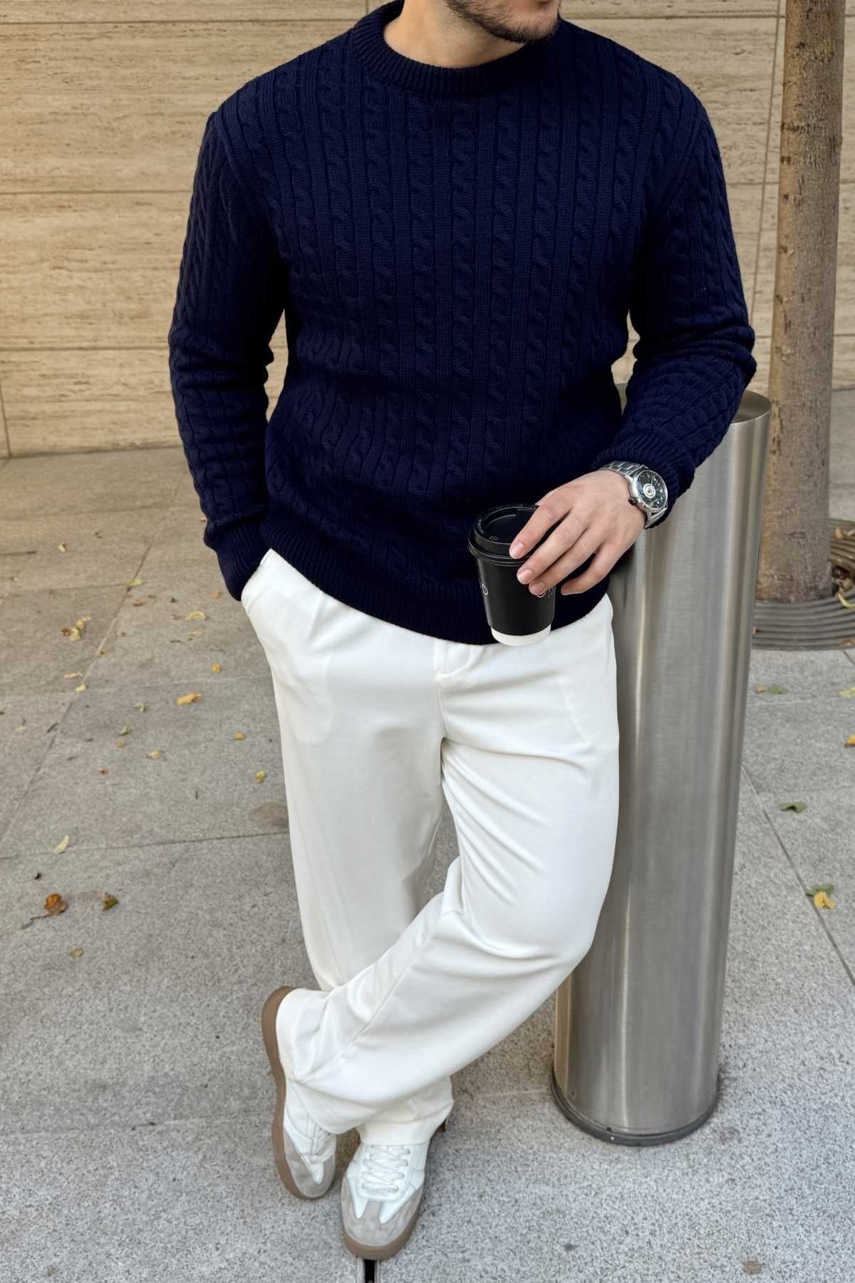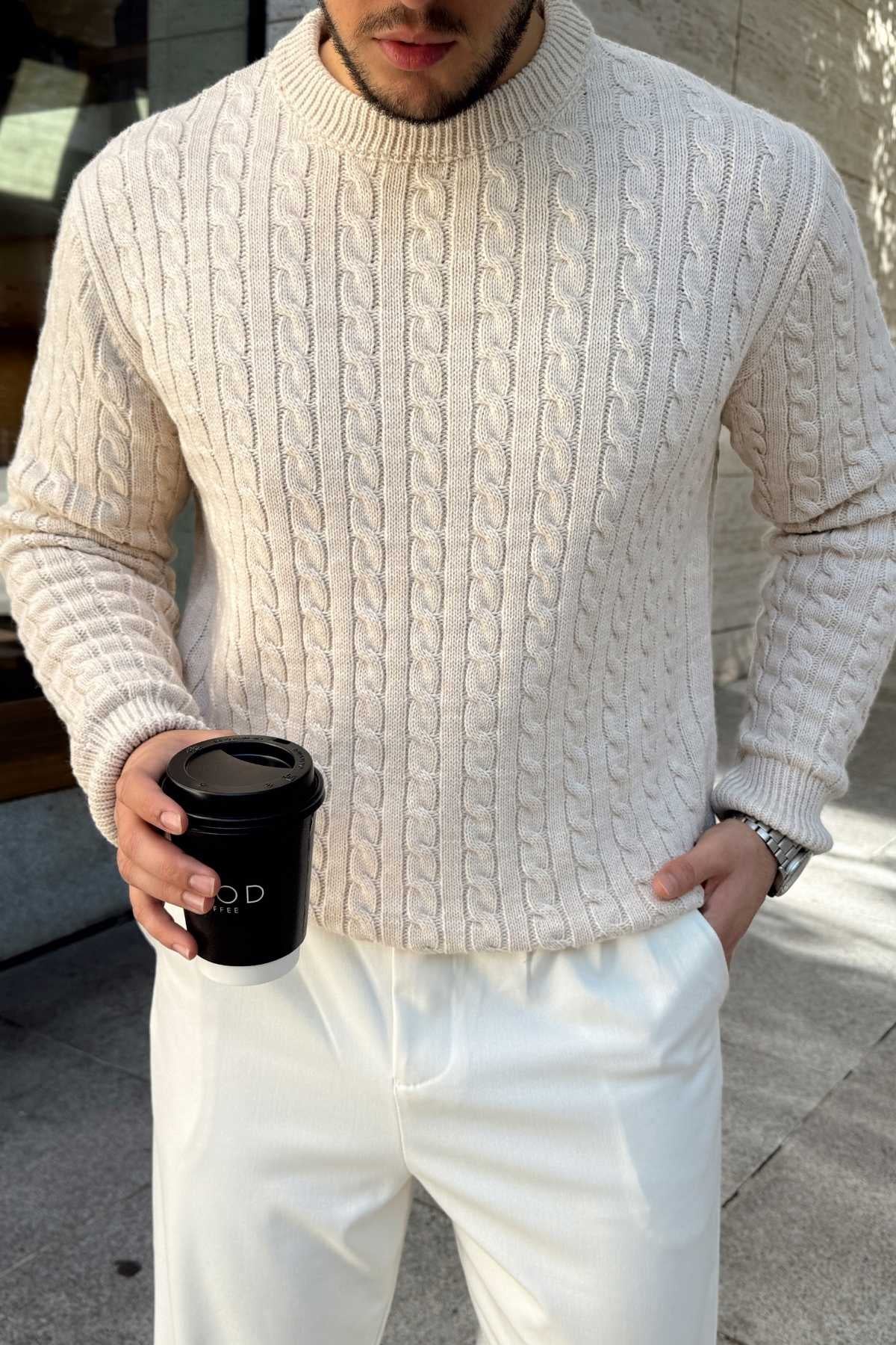 Erin Premium Saç Örgü Bisiklet Yaka Kalın Triko Kazak