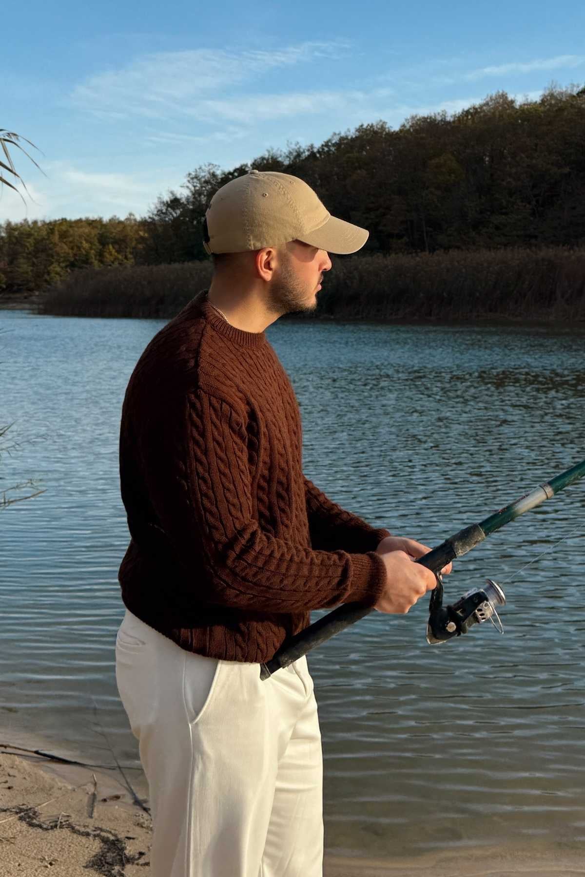 Erkek Balıkçı Yaka Slim Fit Fitilli Triko Kazak