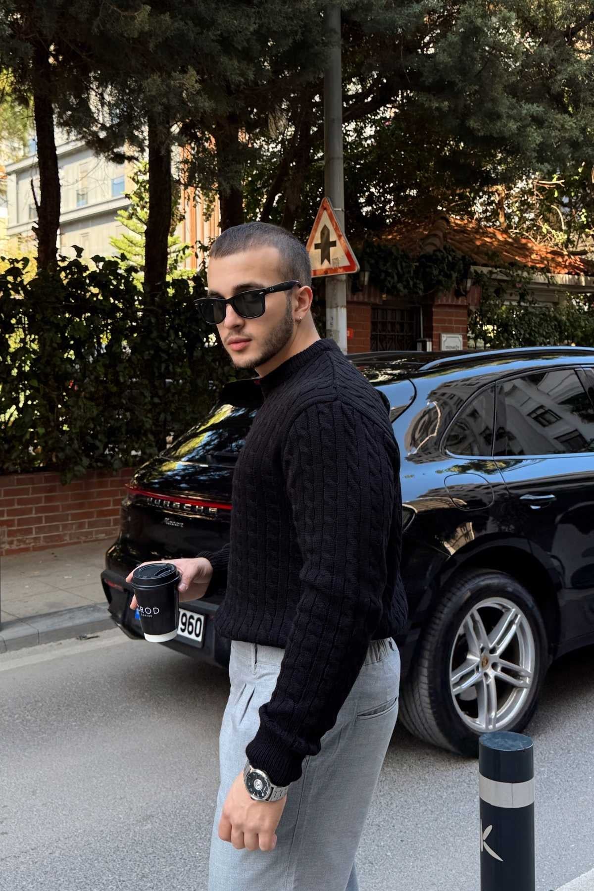 Koba Erkek Selanik Örgü Oversize Bisiklet Yaka Kalın Kazak