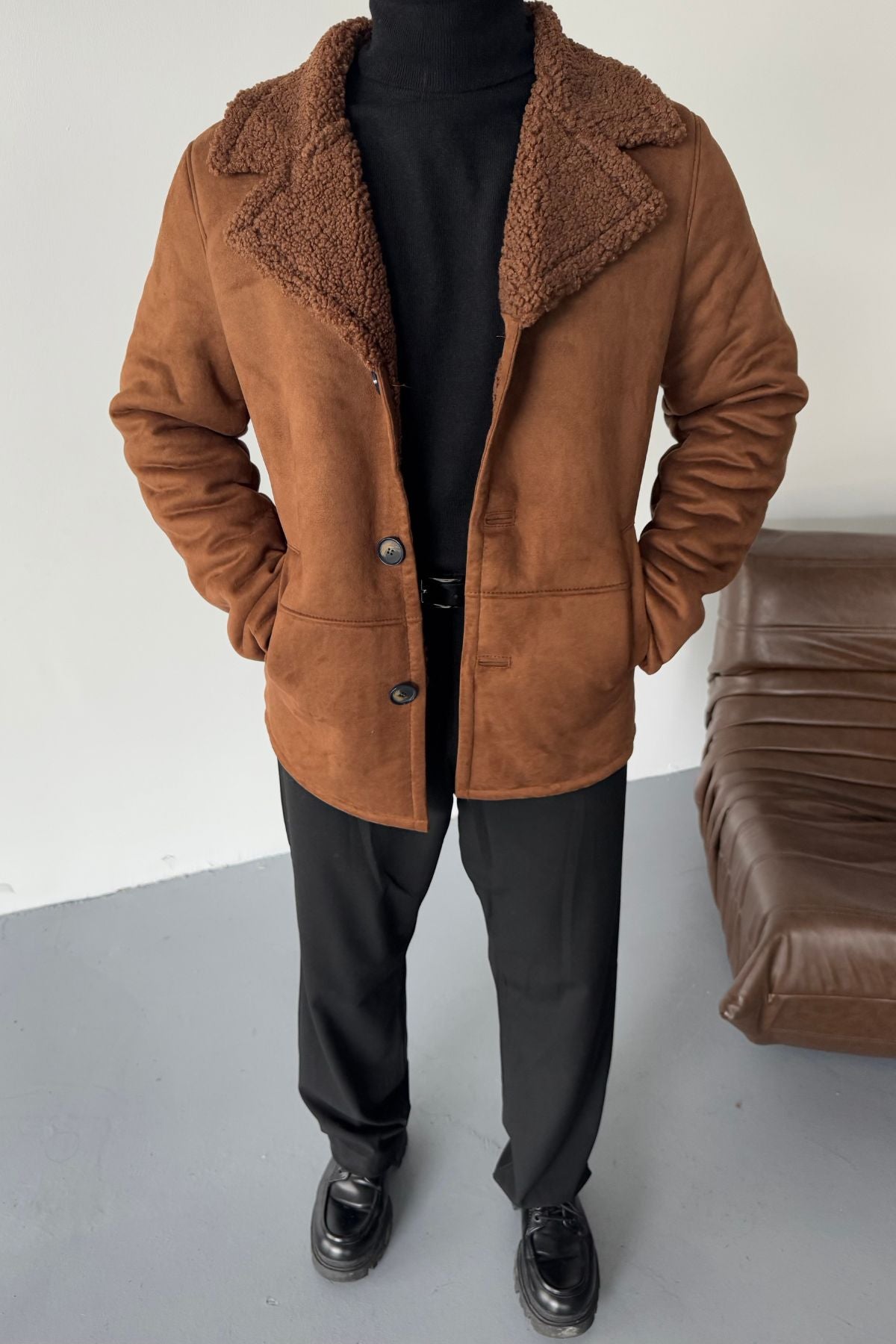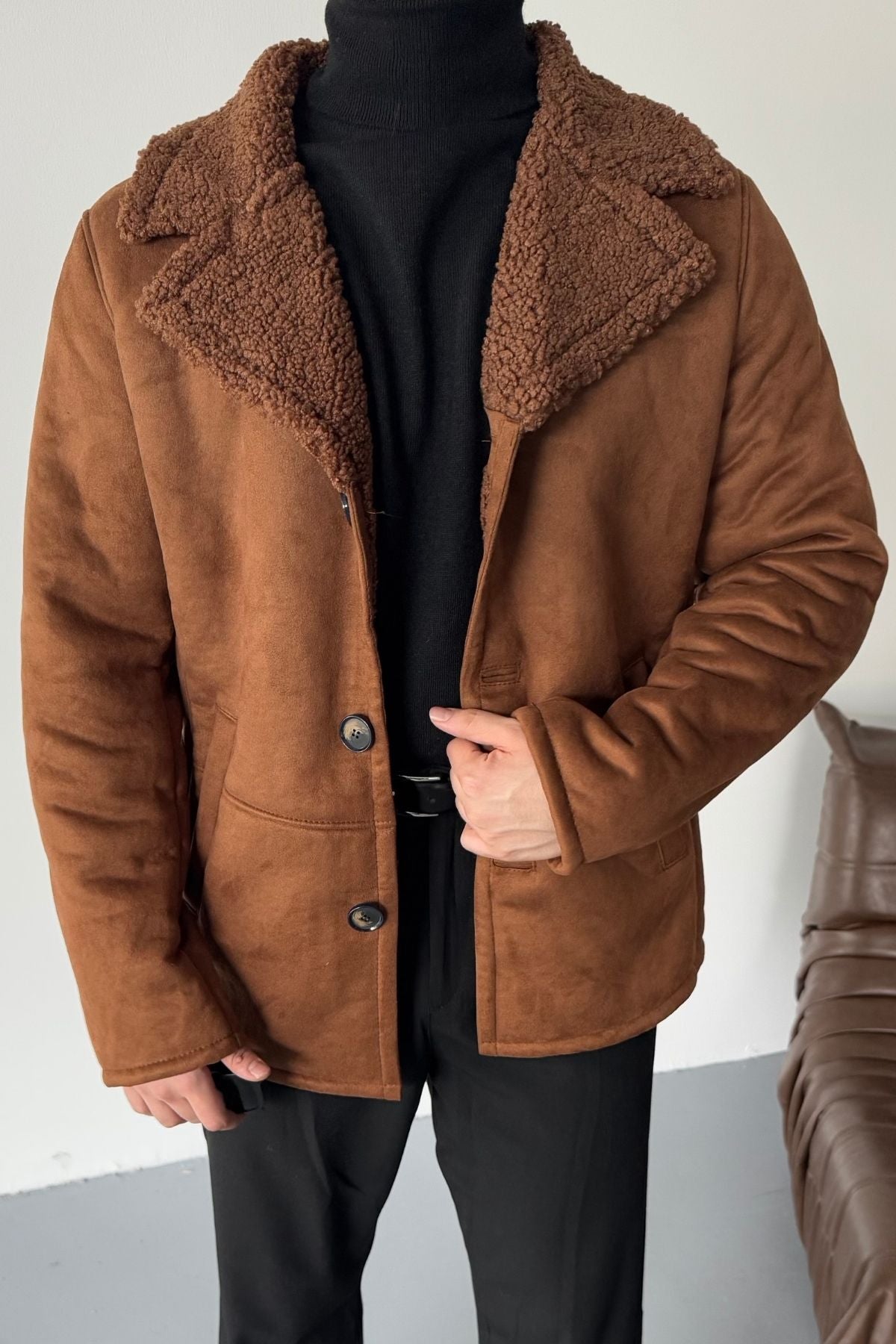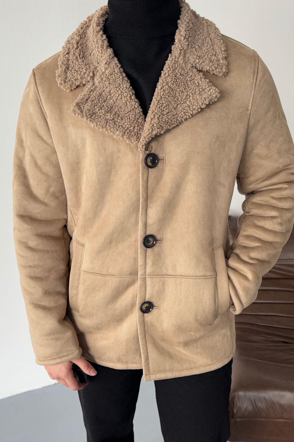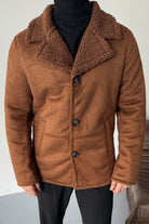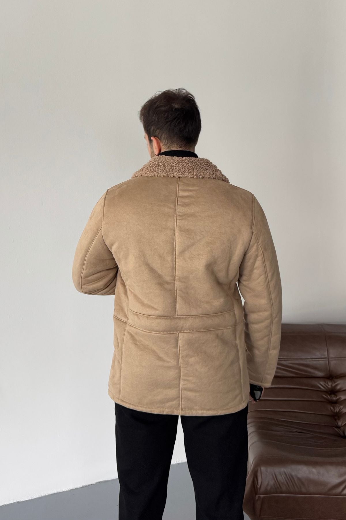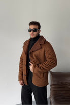 Erkek Regular Fit Içi Kürklü Düğmeli Katlı Yaka Yandan Cepli Klasik Süet Mont