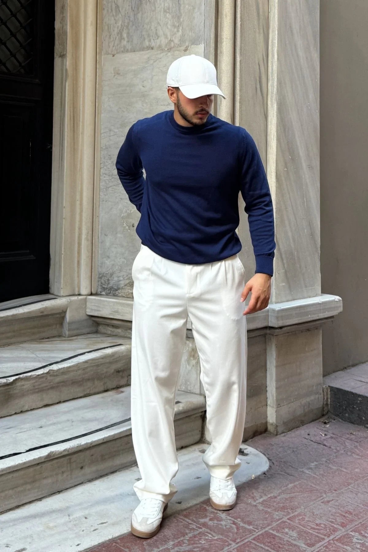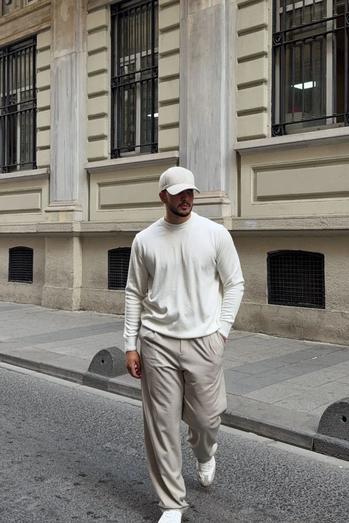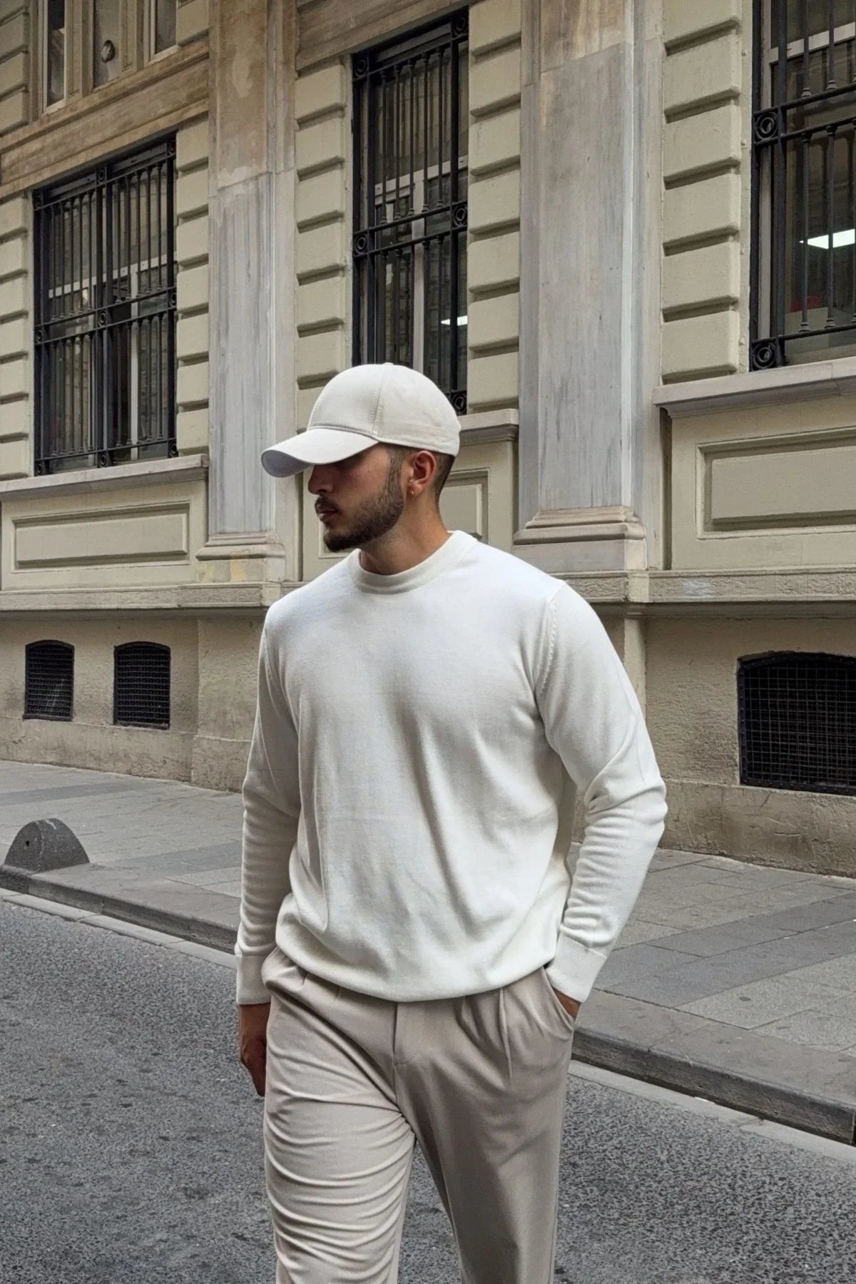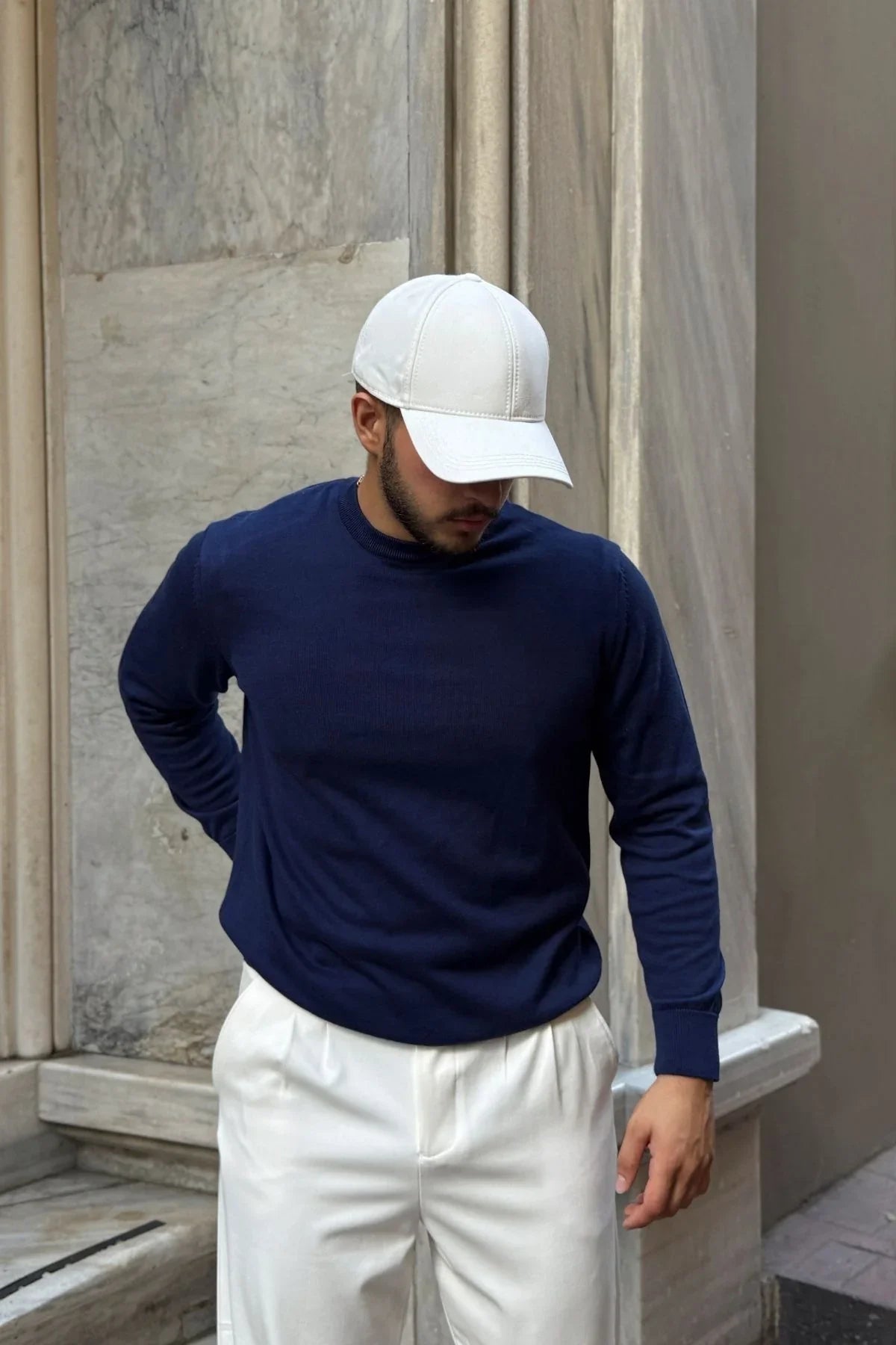 Acton Erkek %100 Organik Pamuk Bisiklet Yaka Triko Kazak