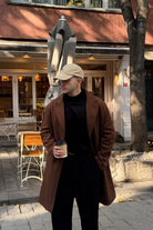 Erkek Regular Fit Düğmeli Cepli Kışlık Astarlı Klasik Uzun Kaşe Kaban