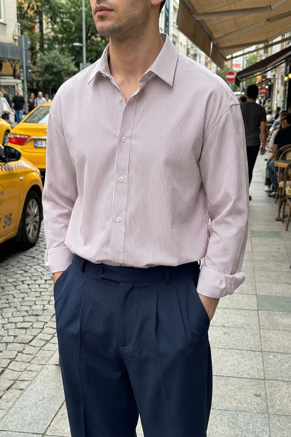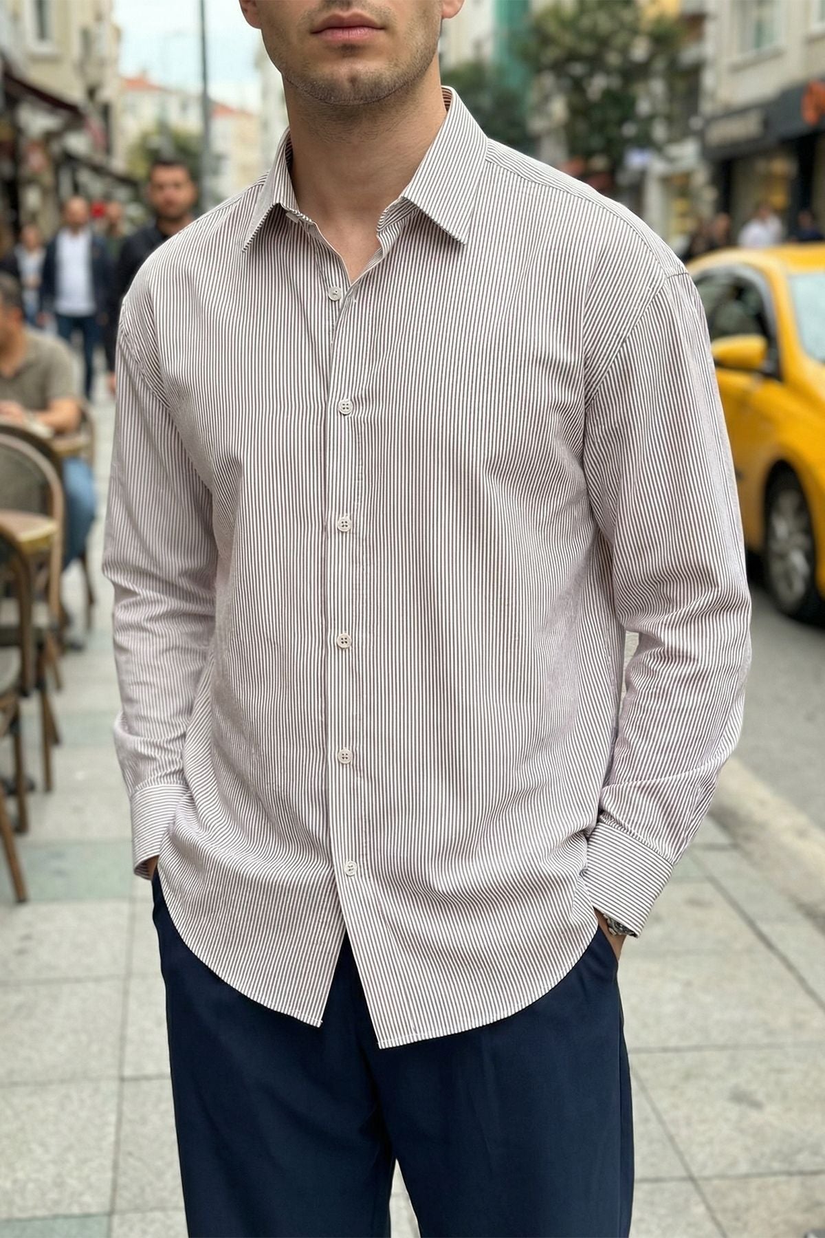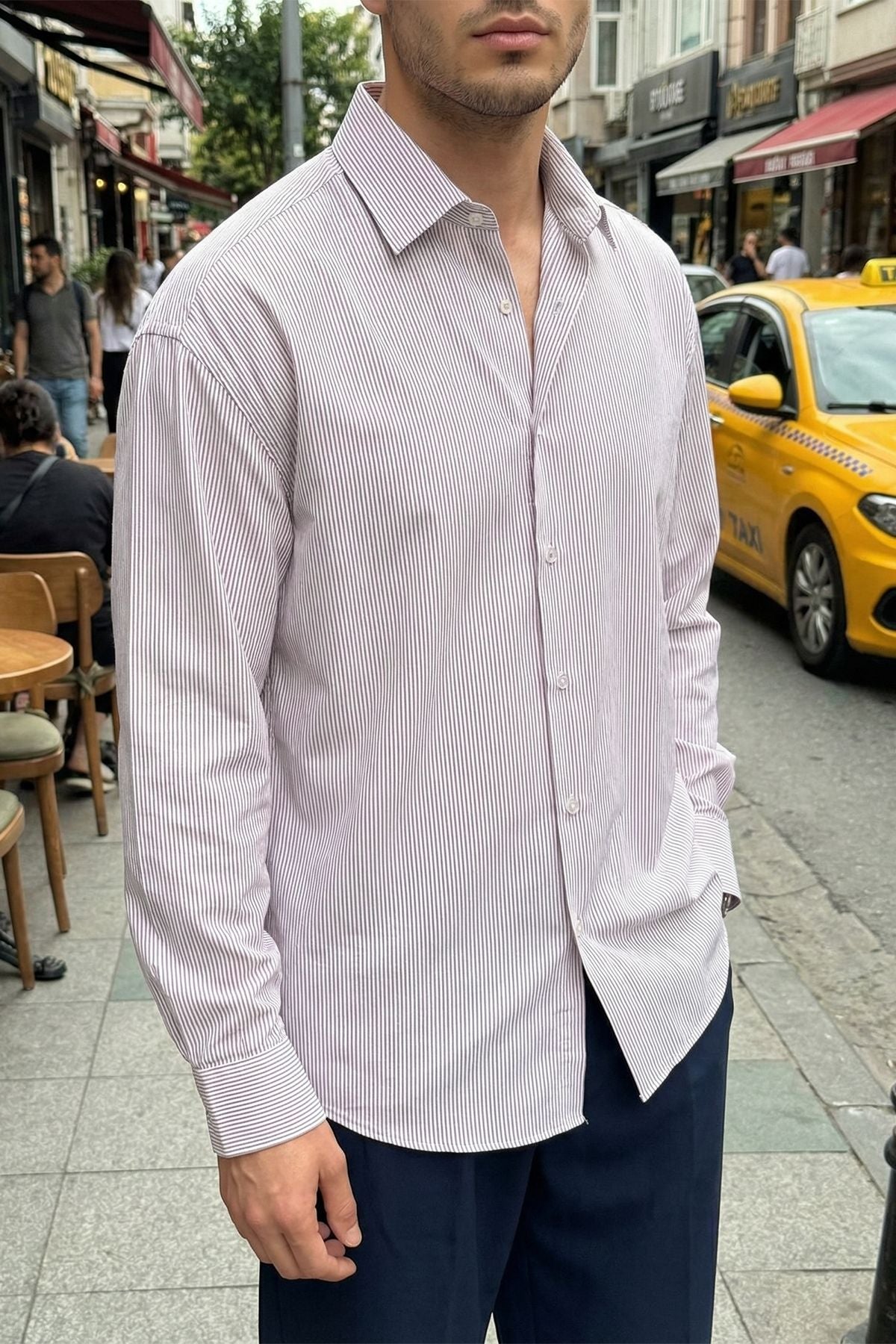 Bion Geniş Kalıp Erkek Çizgili Gömlek