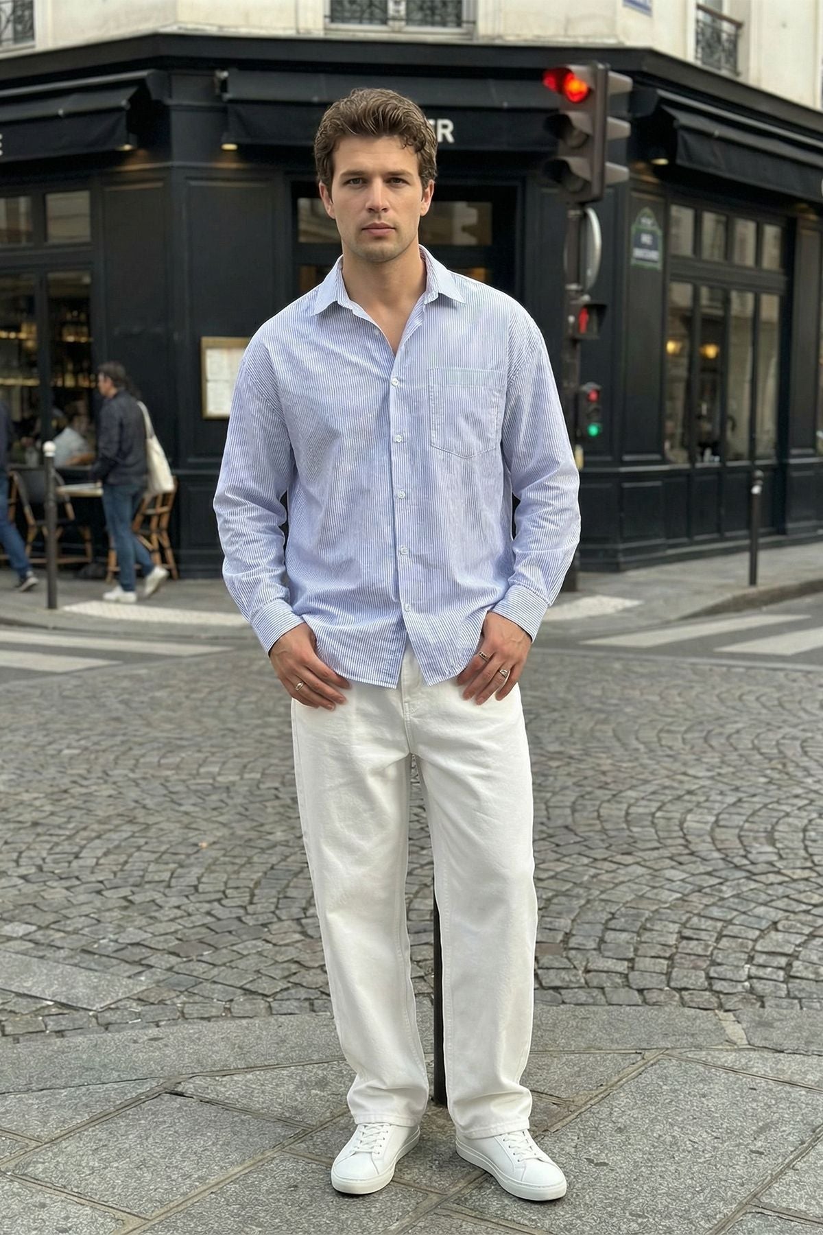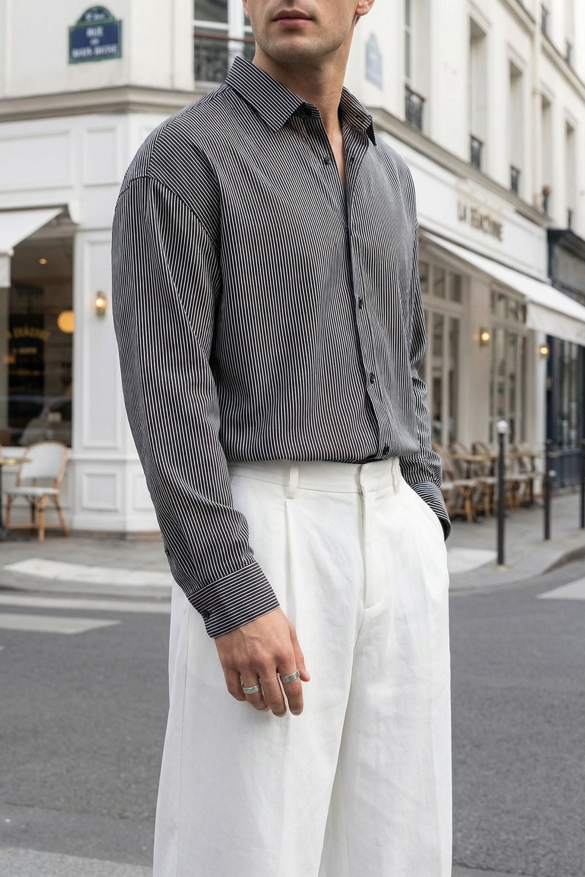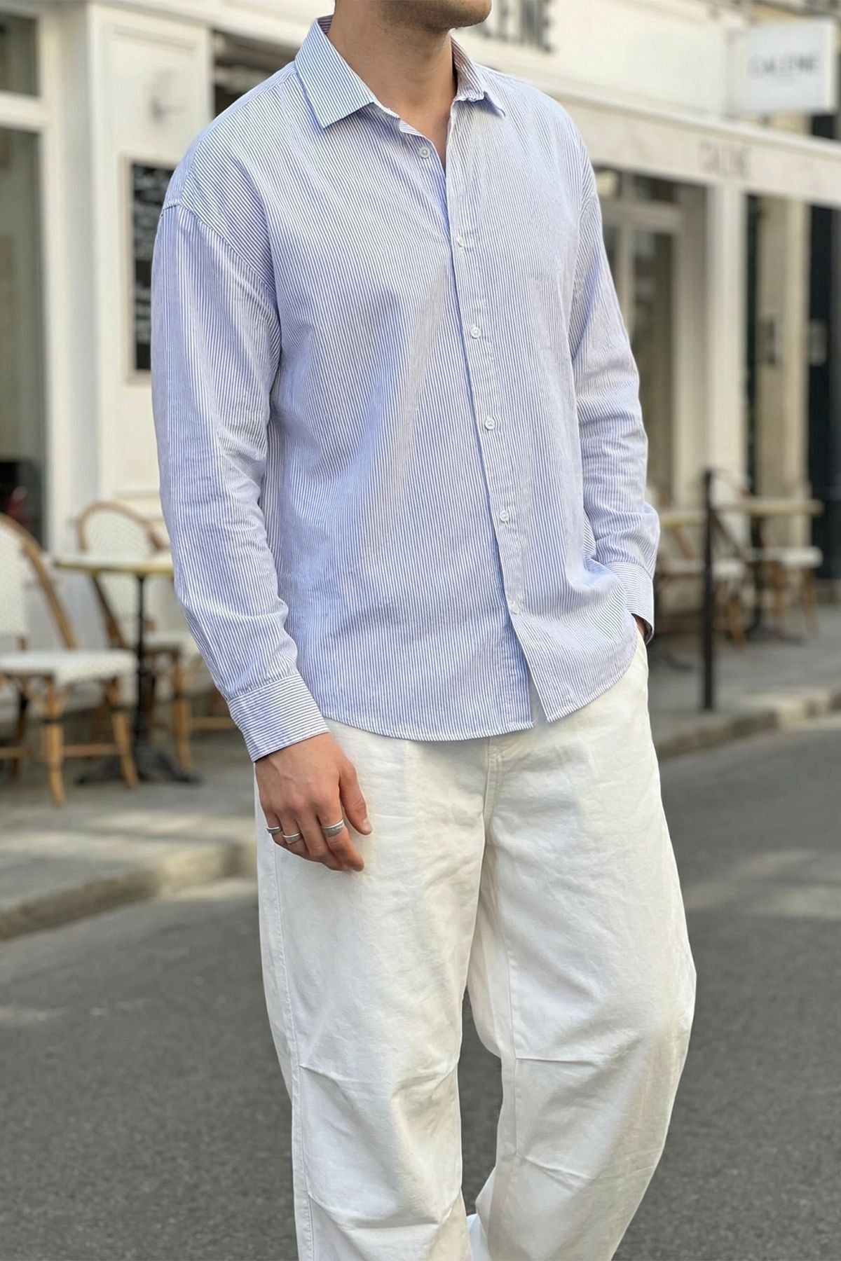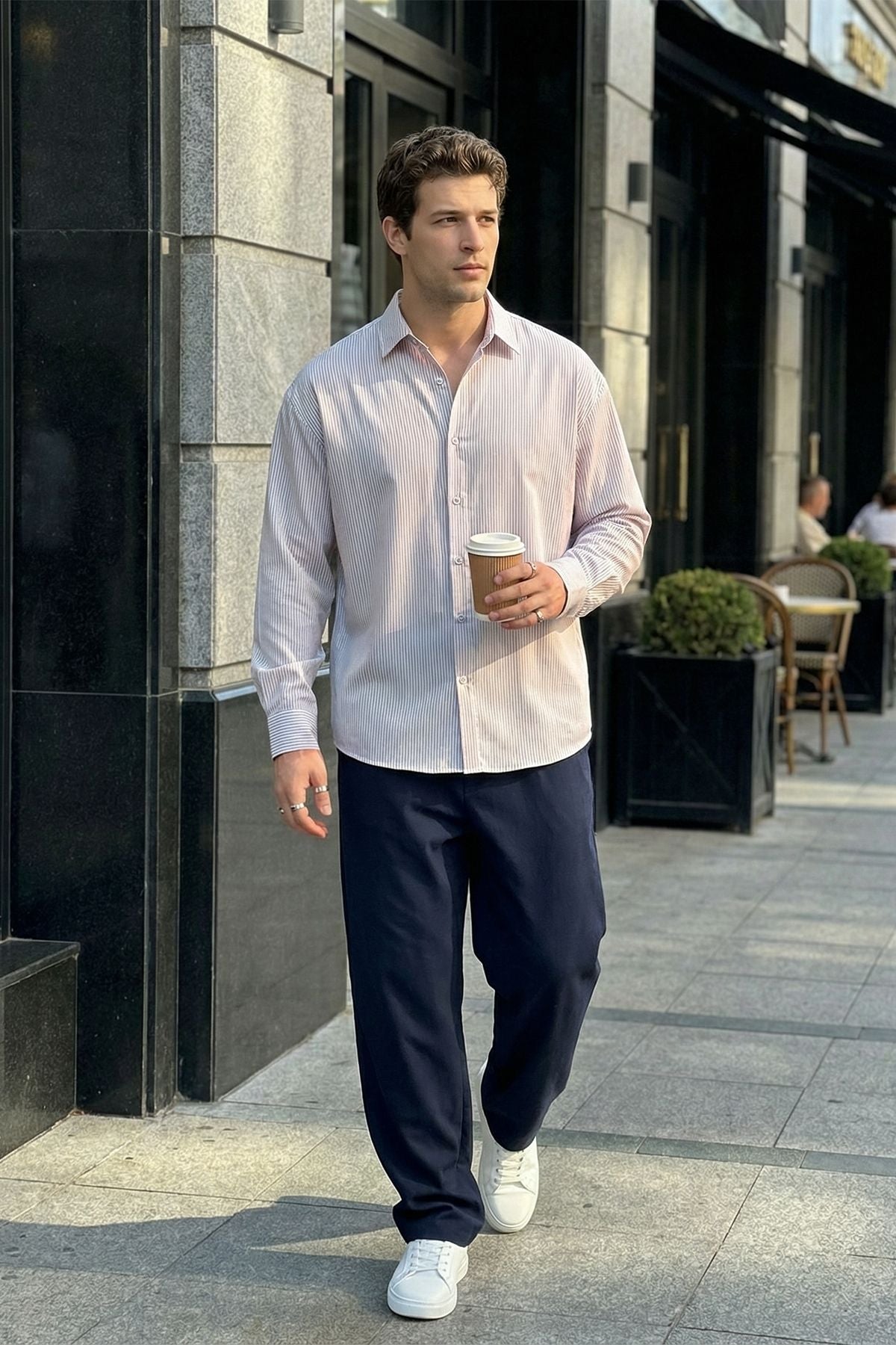 Bion Geniş Kalıp Erkek Çizgili Gömlek