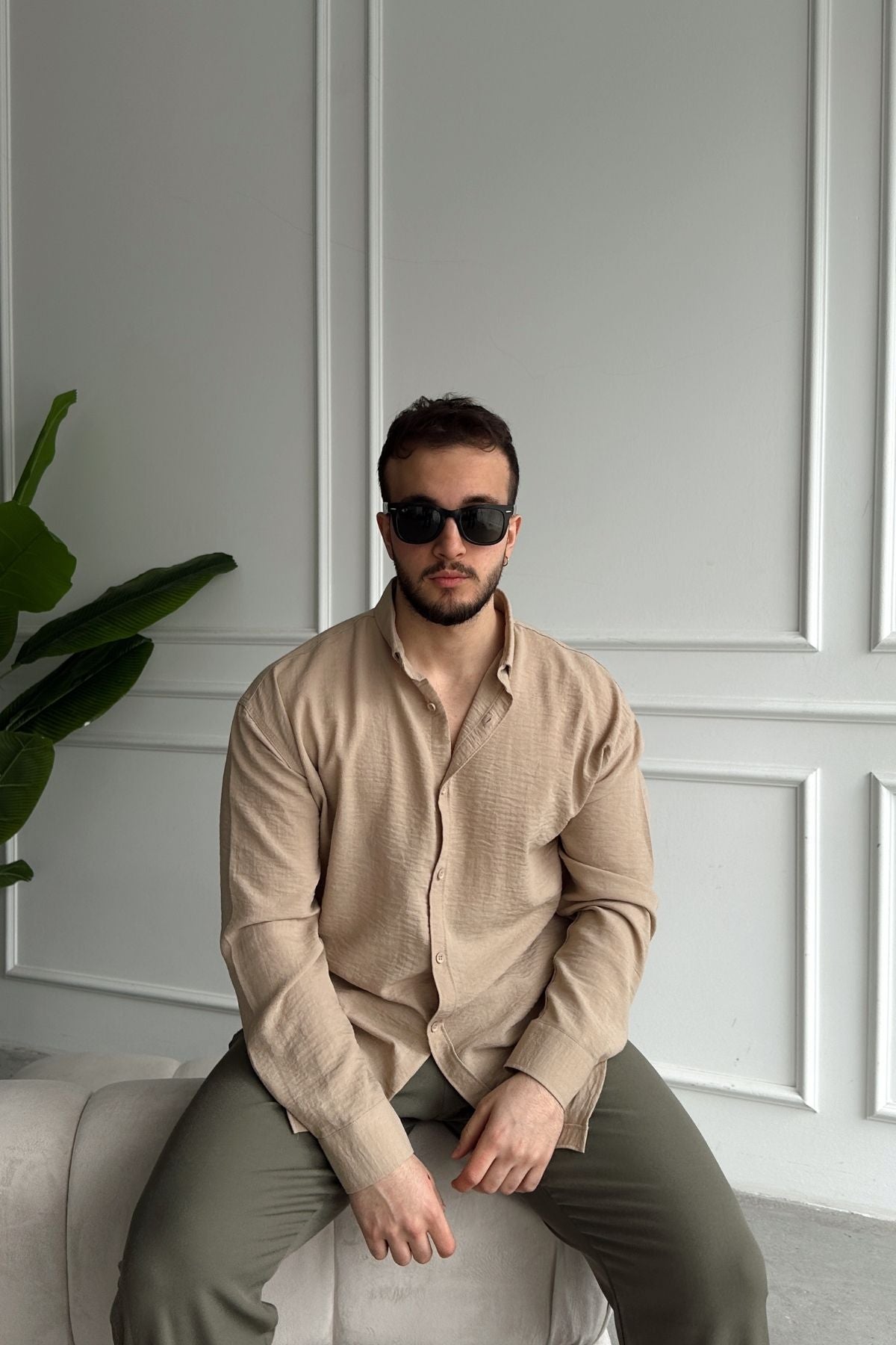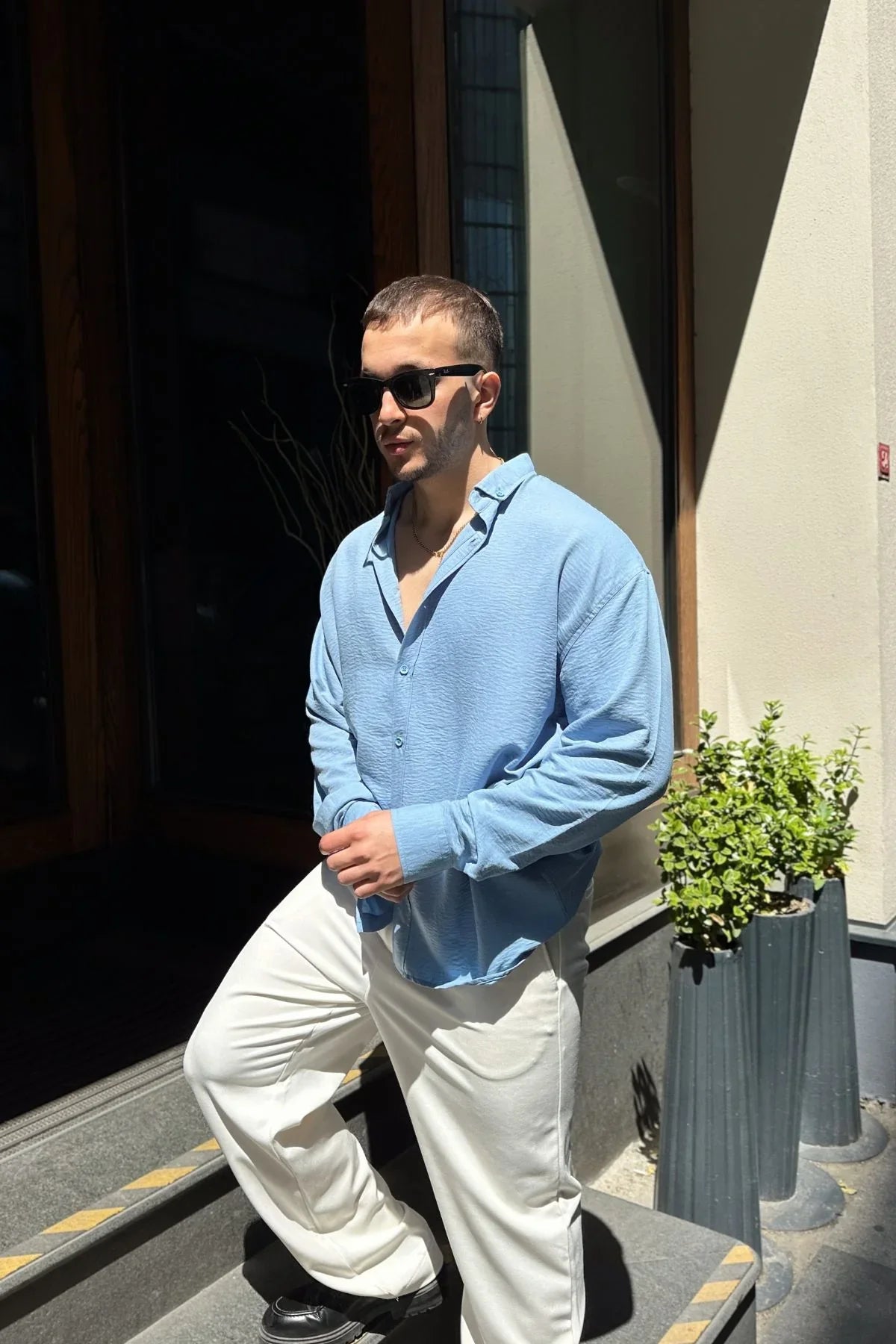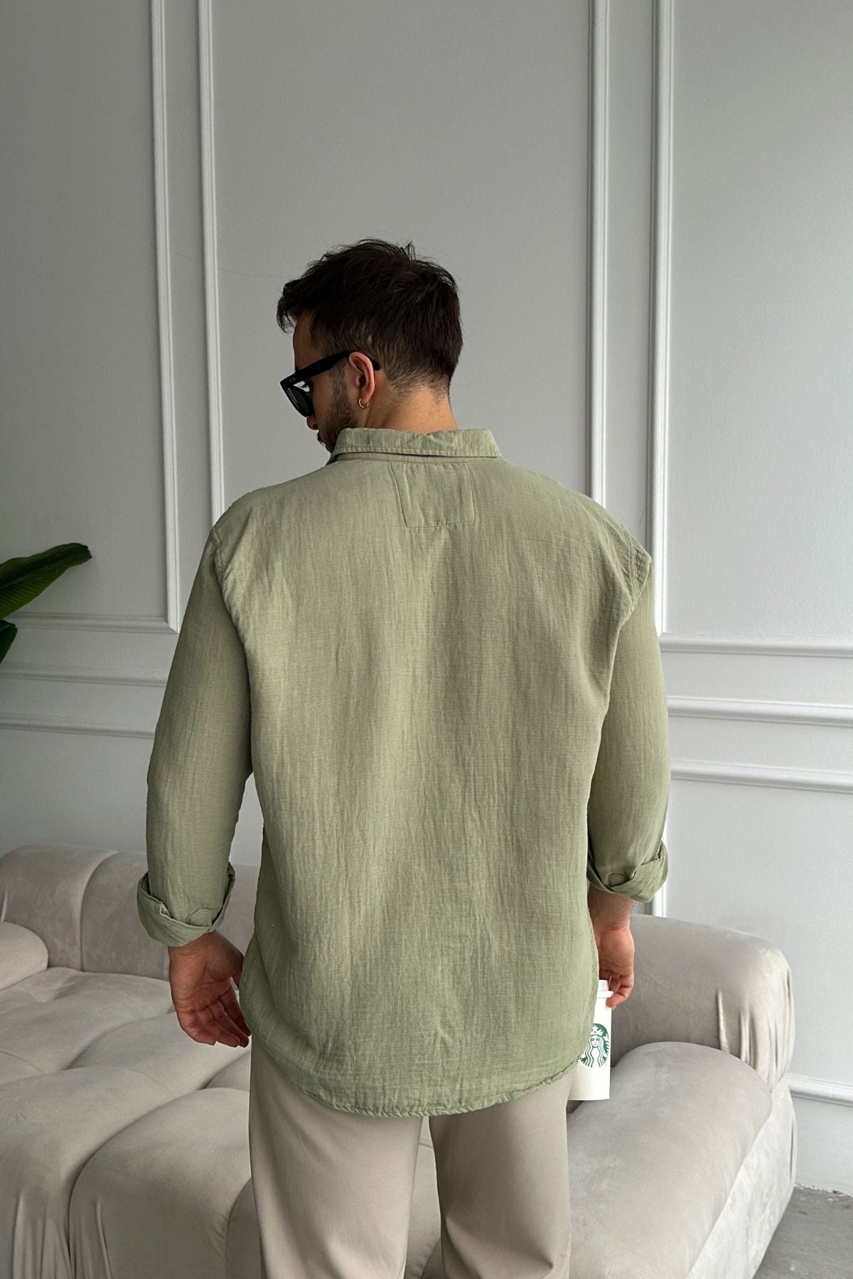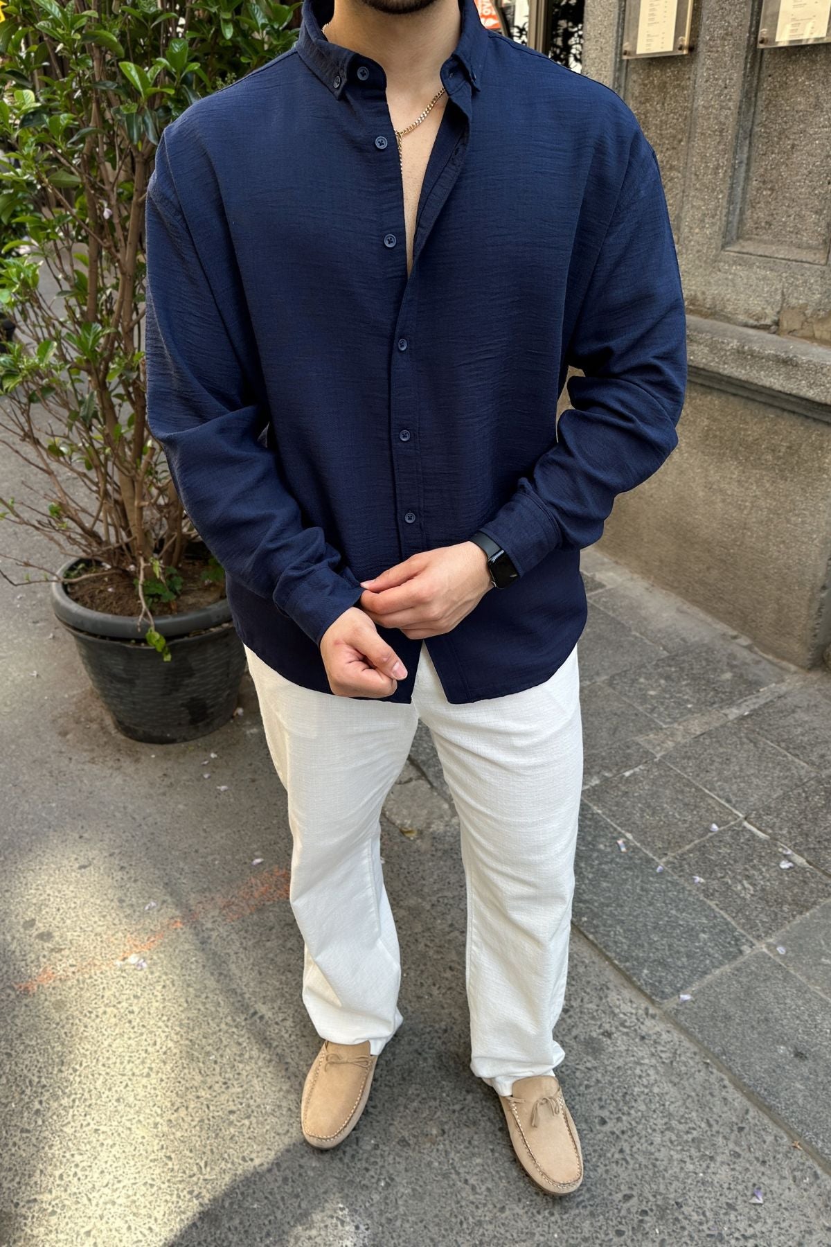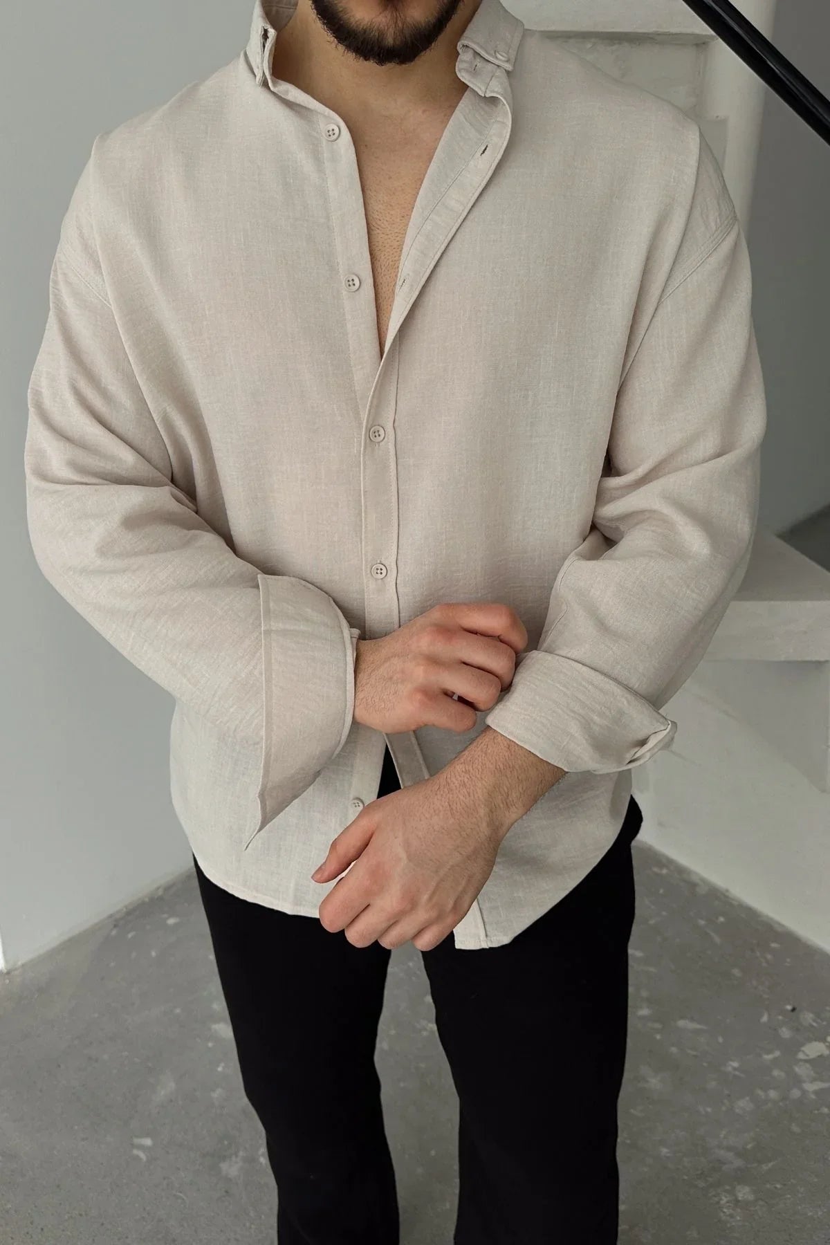 Napas Erkek Oversize Keten Görünümlü Gömlek
