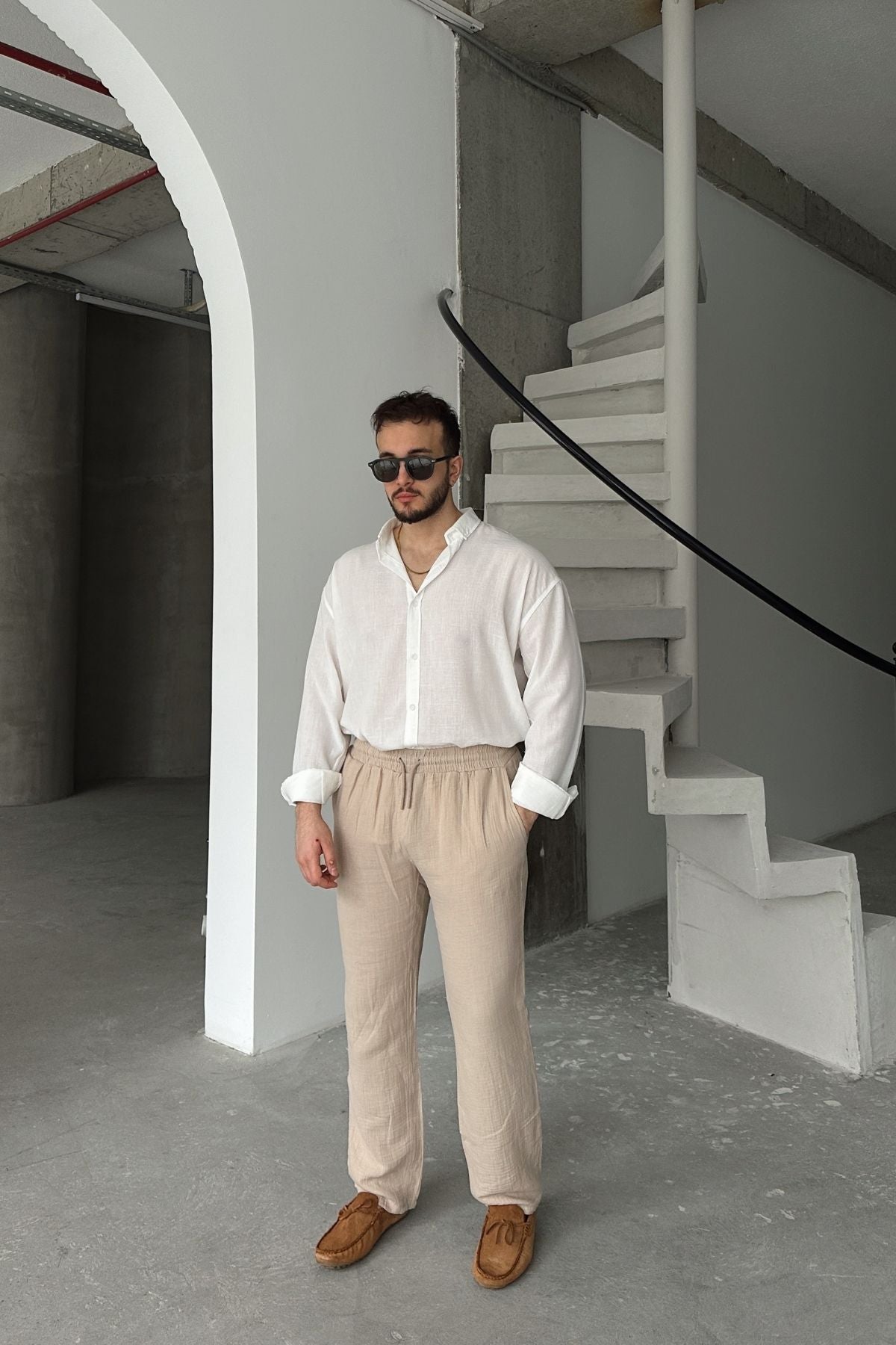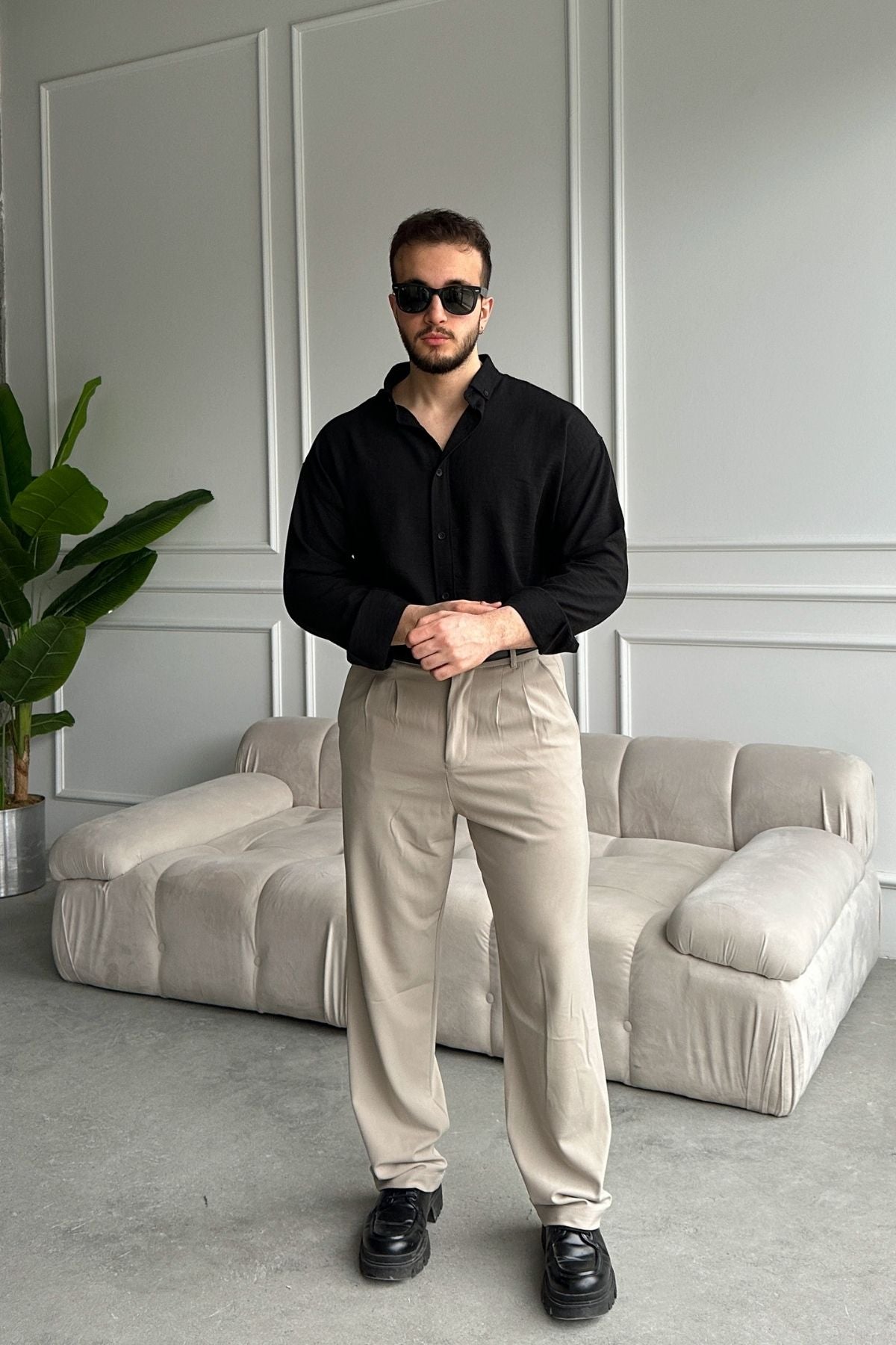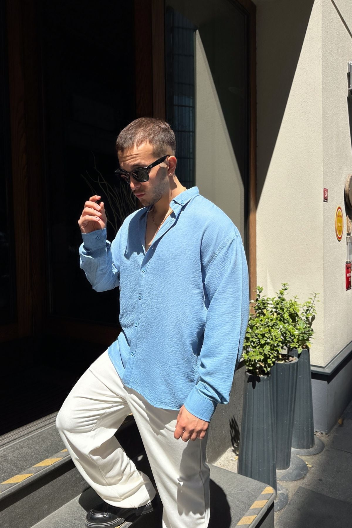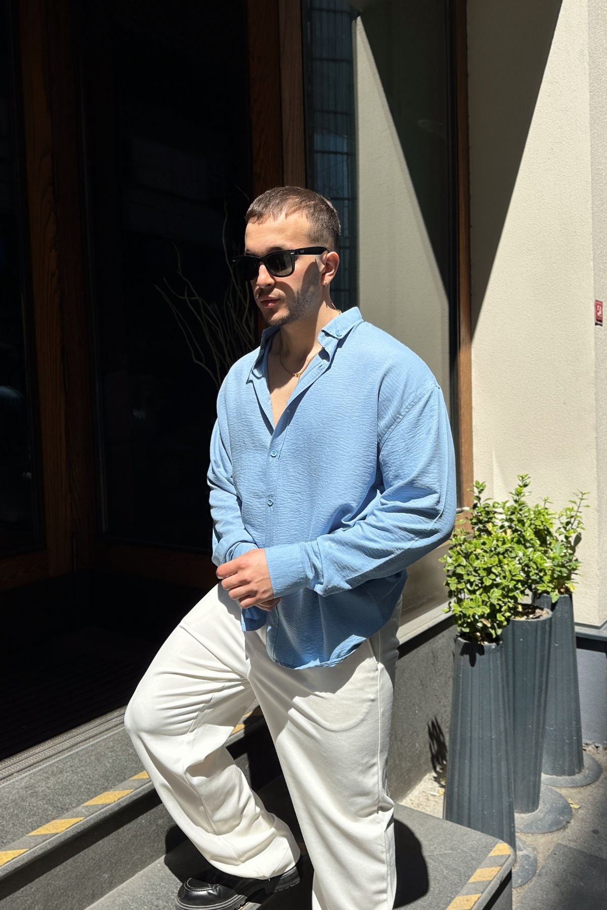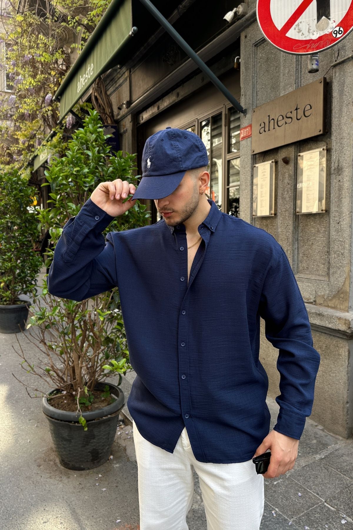 Napas Erkek Oversize Keten Görünümlü Gömlek