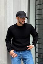 Koba Erkek Selanik Örgü Oversize Bisiklet Yaka Kalın Kazak