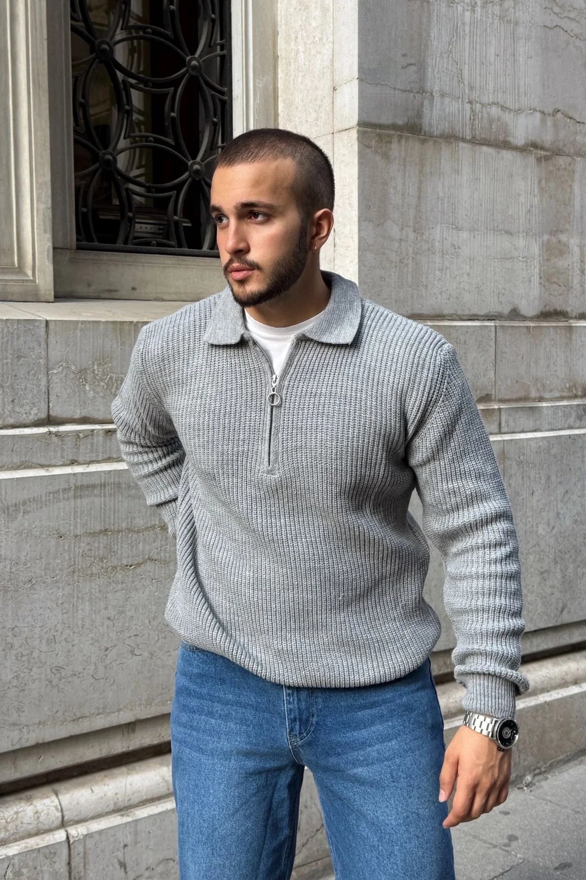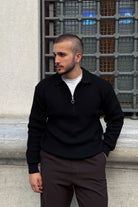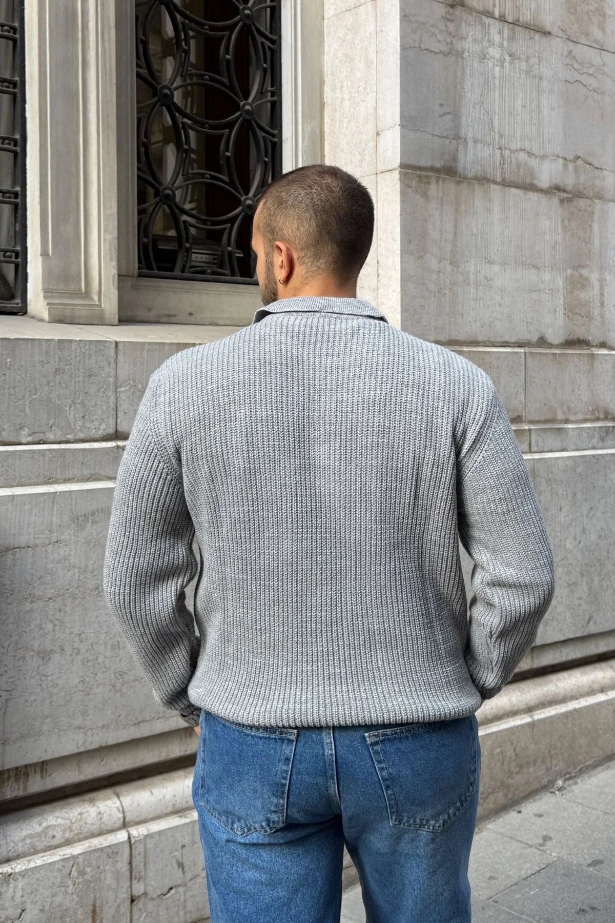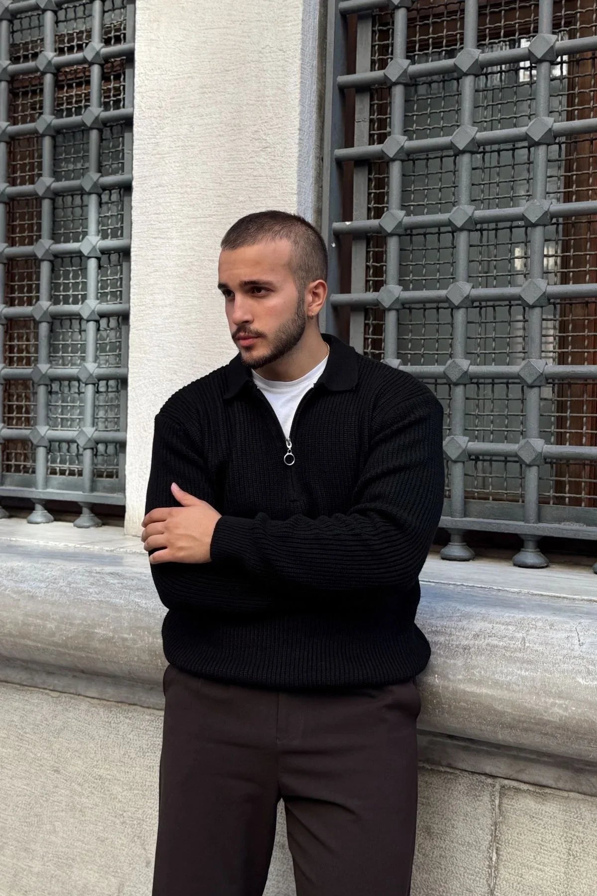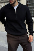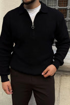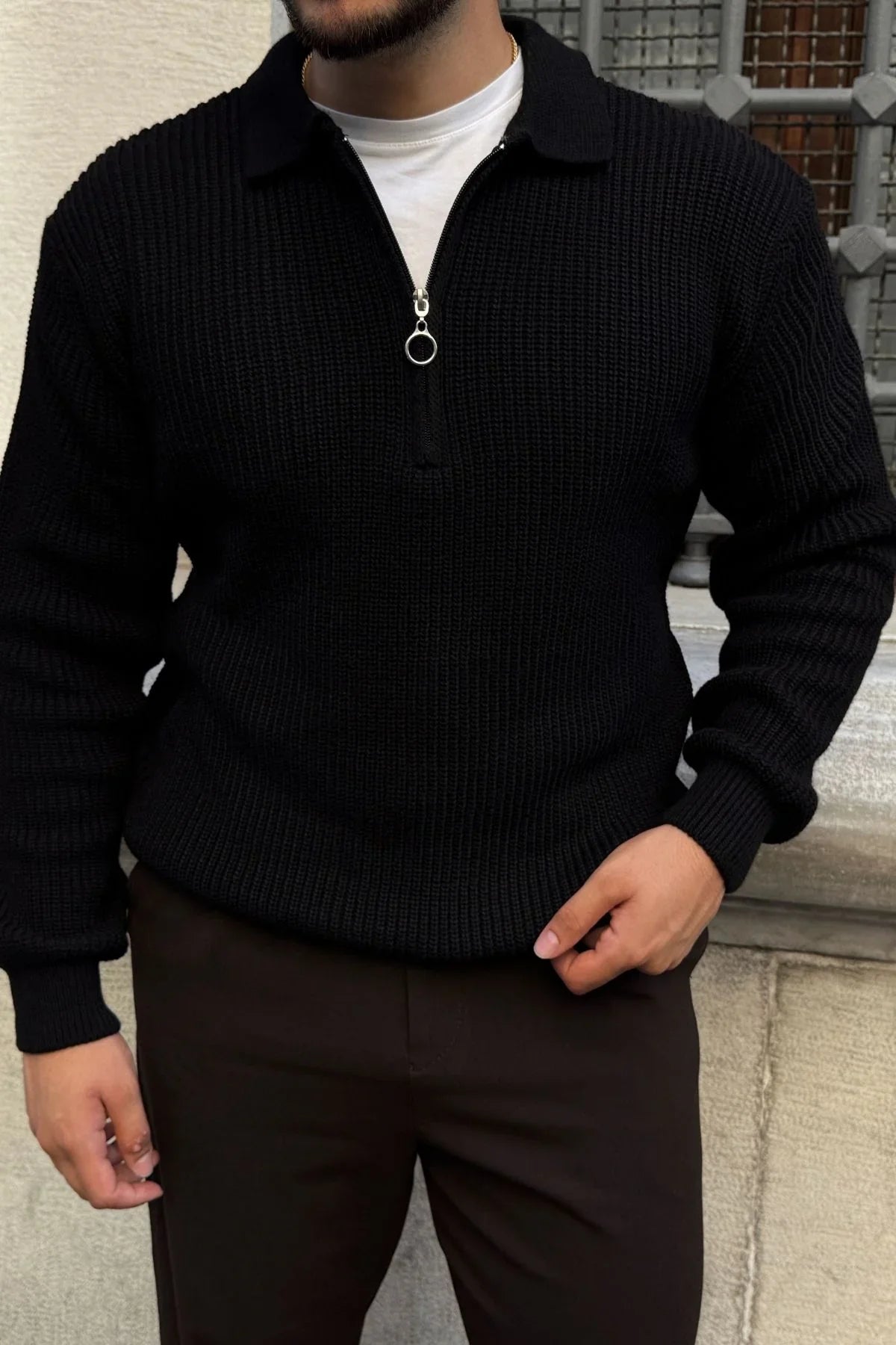 Mena Erkek Polo Yaka Selanik Örgü Yarım Fermuarlı Kalın Triko Kazak