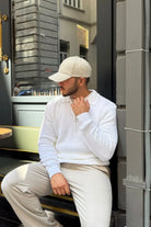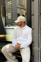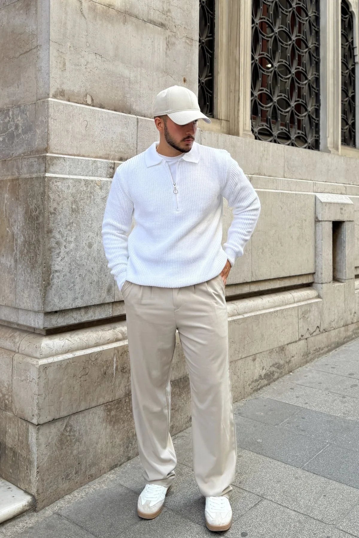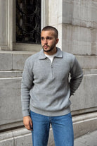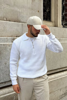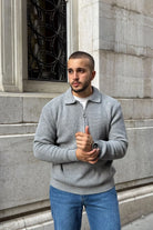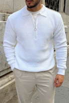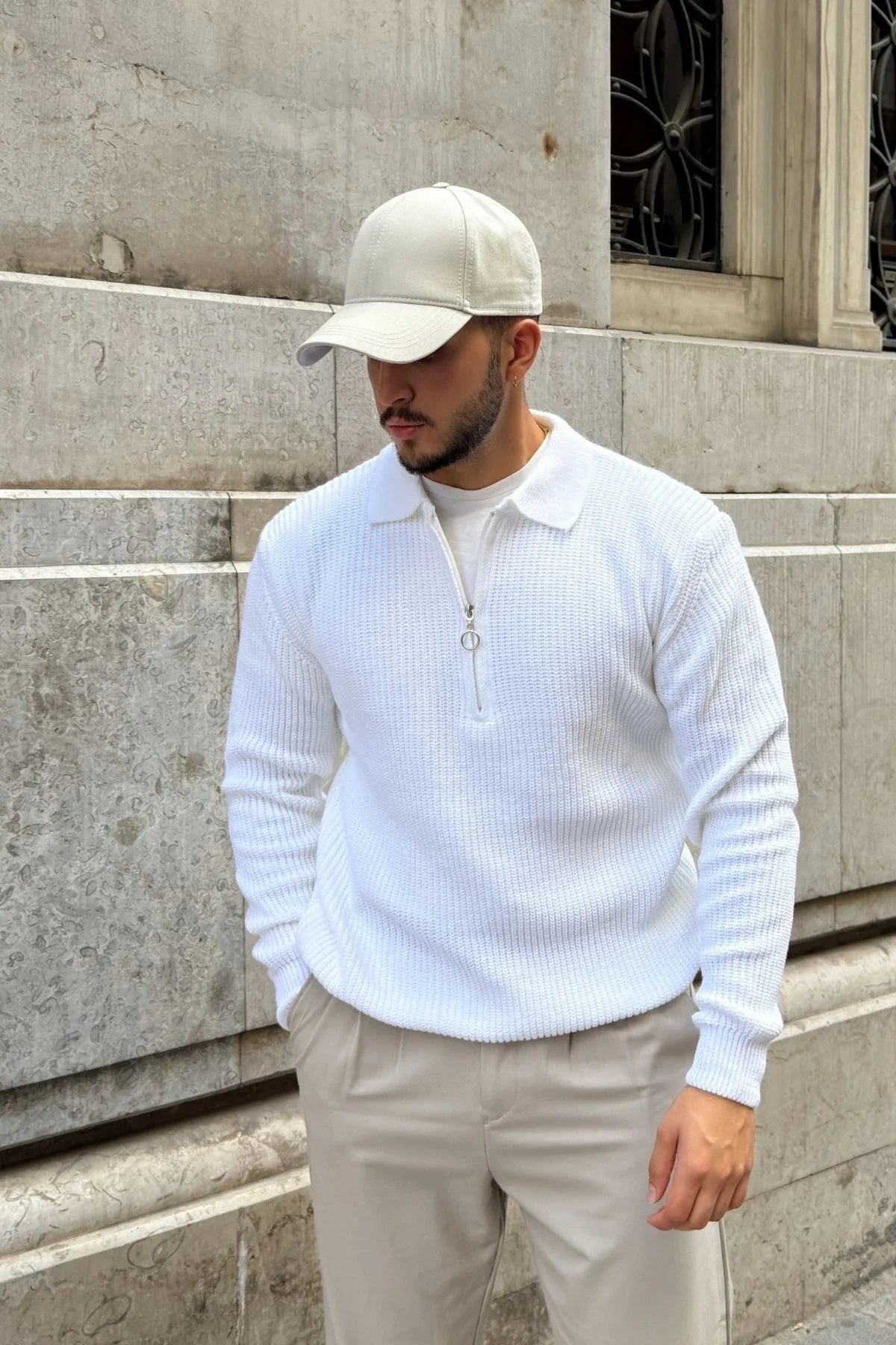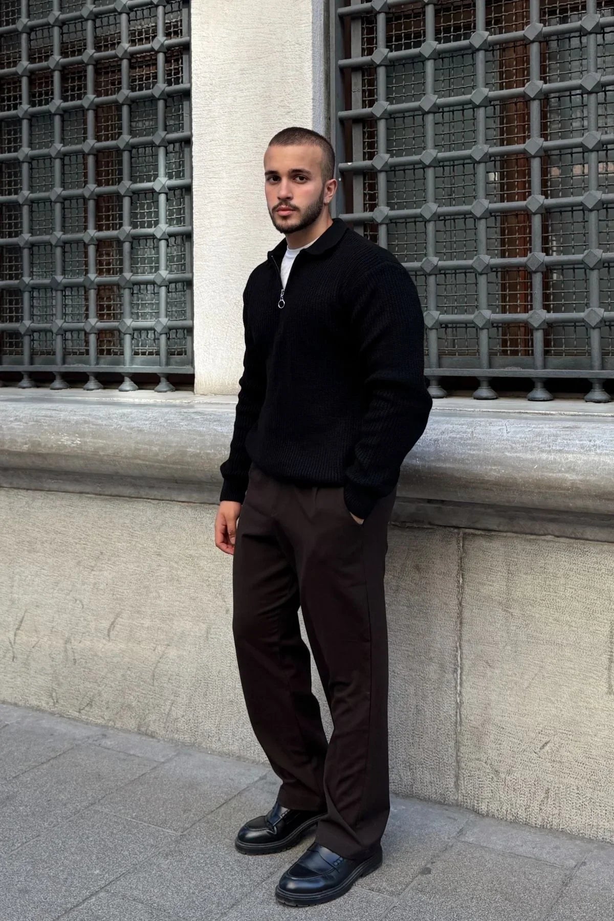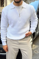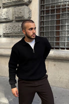 Mena Erkek Polo Yaka Selanik Örgü Yarım Fermuarlı Kalın Triko Kazak