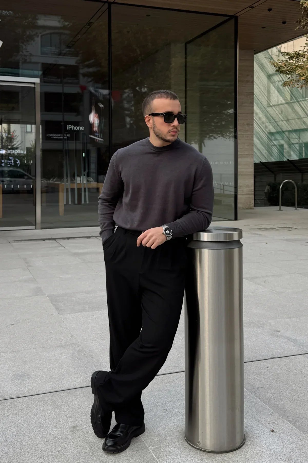 Acton Erkek %100 Organik Pamuk Bisiklet Yaka Triko Kazak