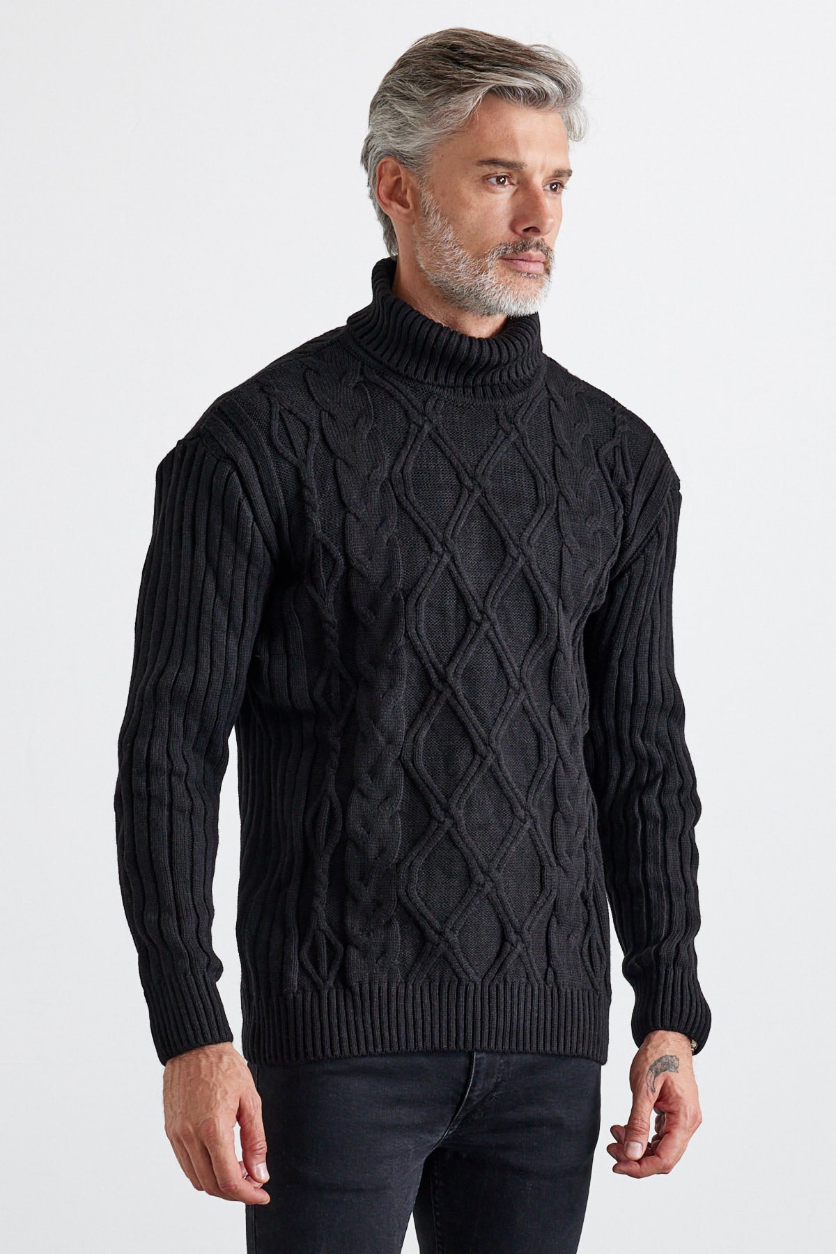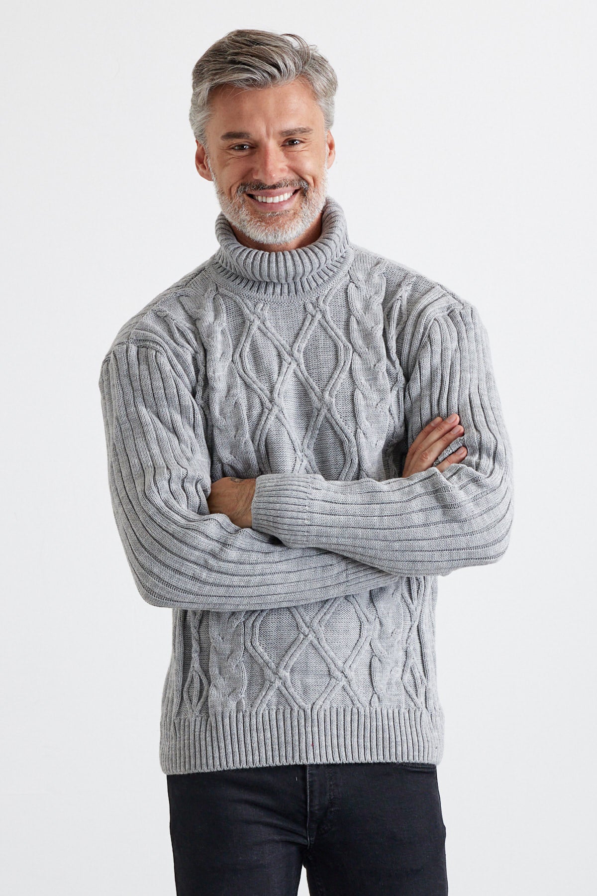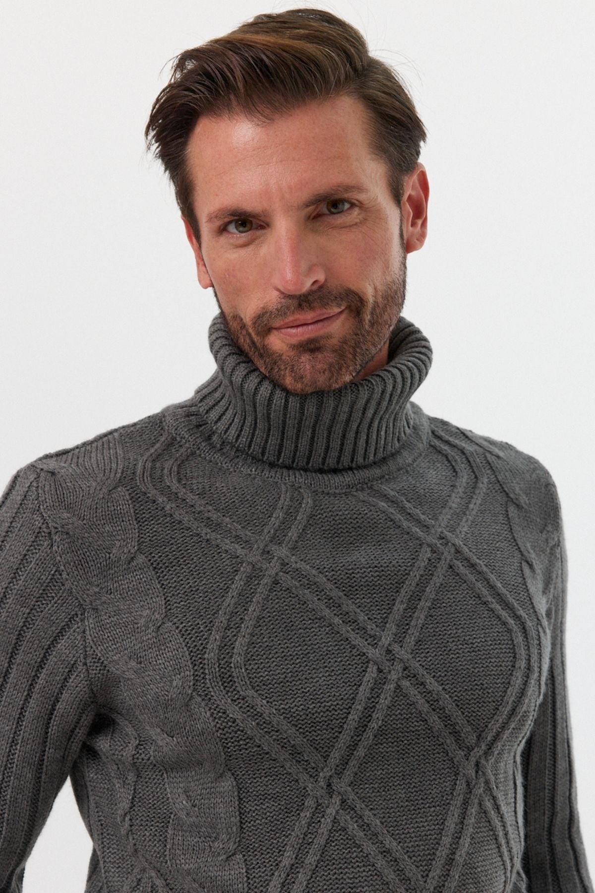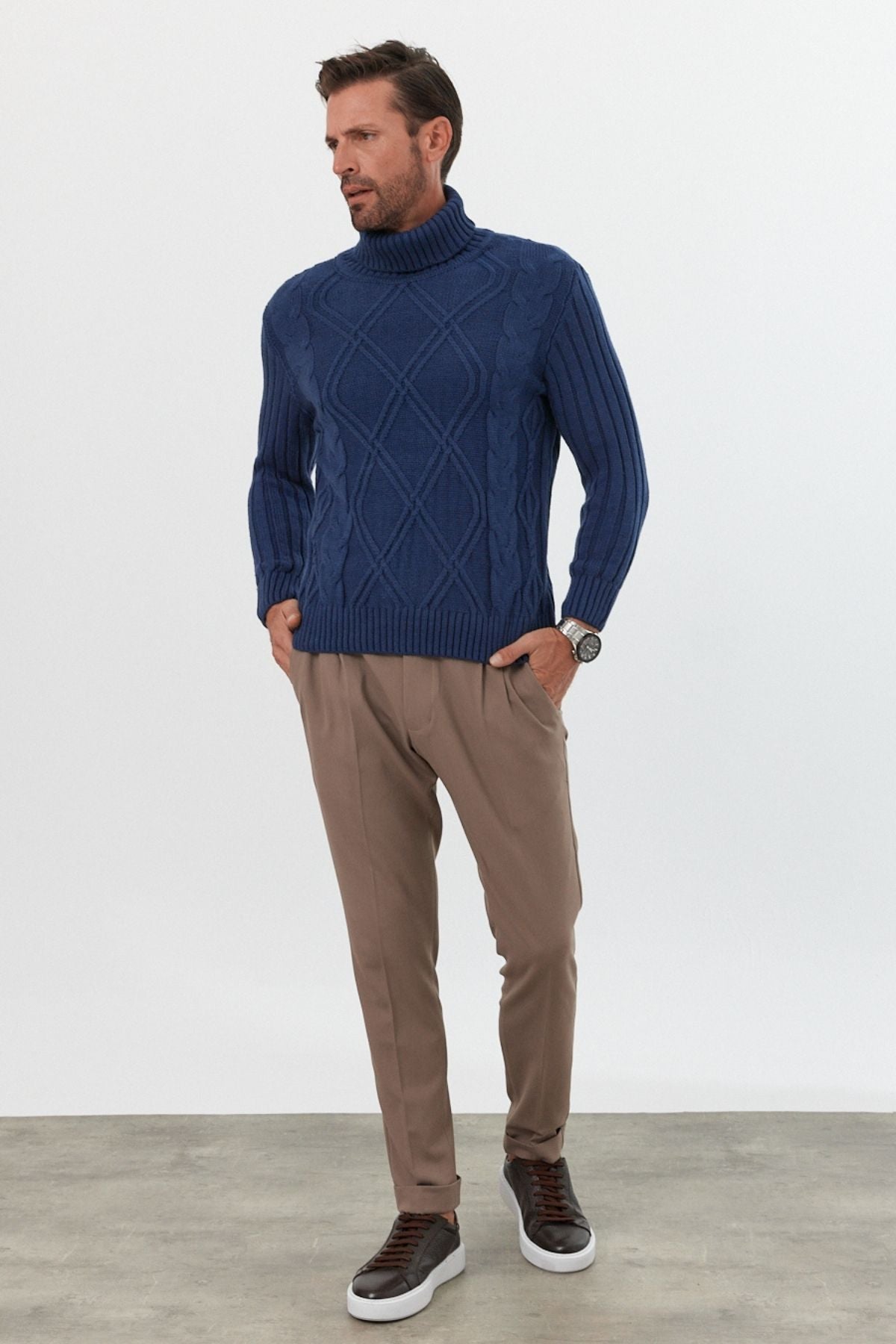 Erkek Saç Örgülü Baklava Desenli Tam Balıkçı Fitilli Kalın Triko Kazak