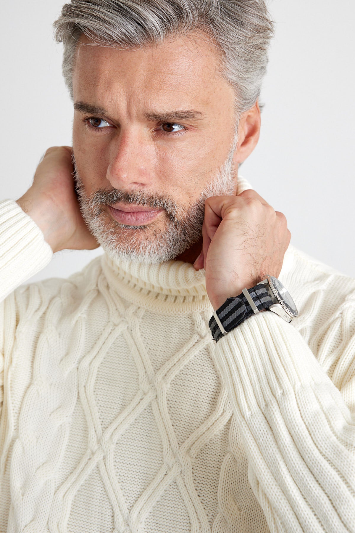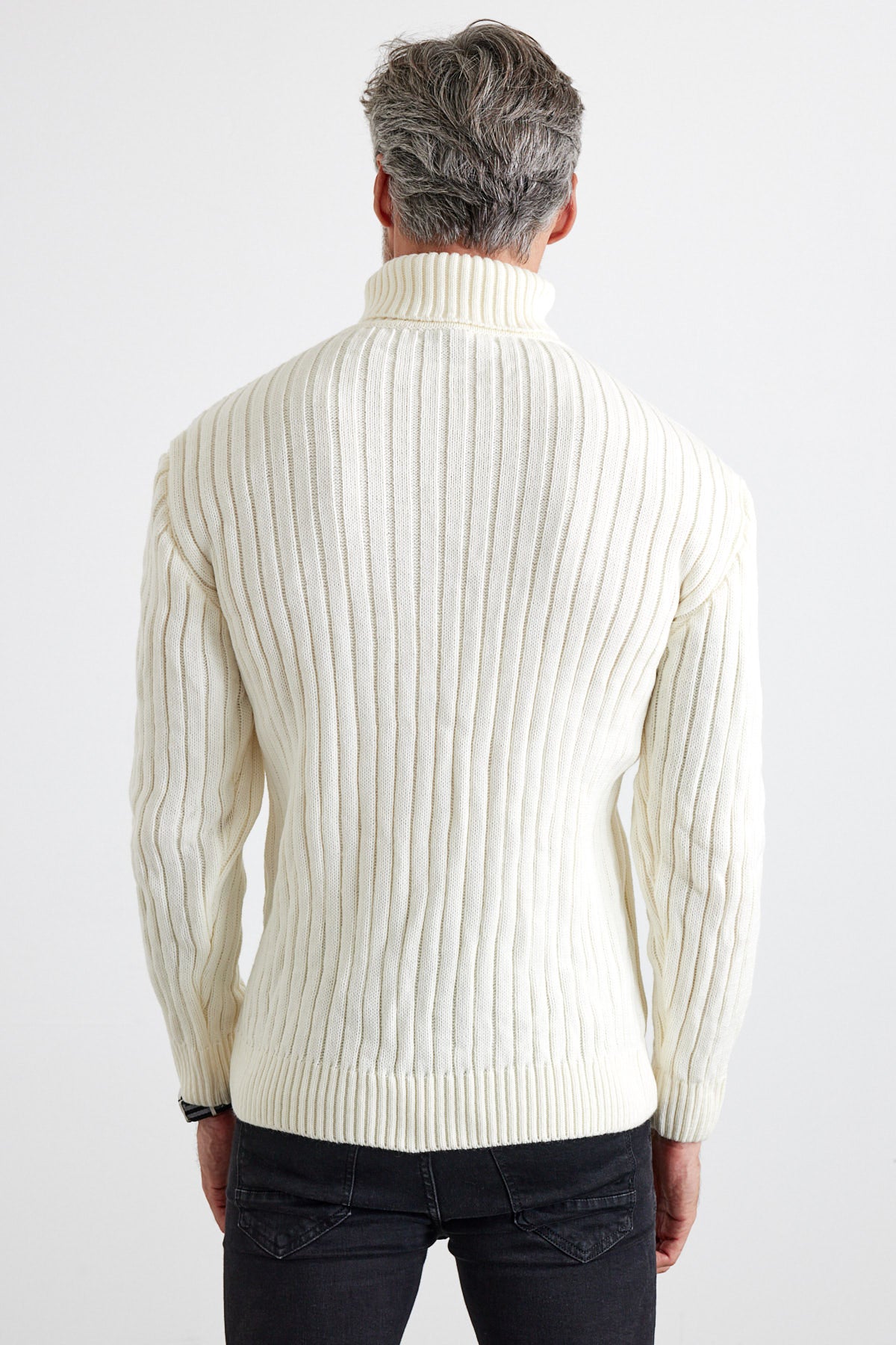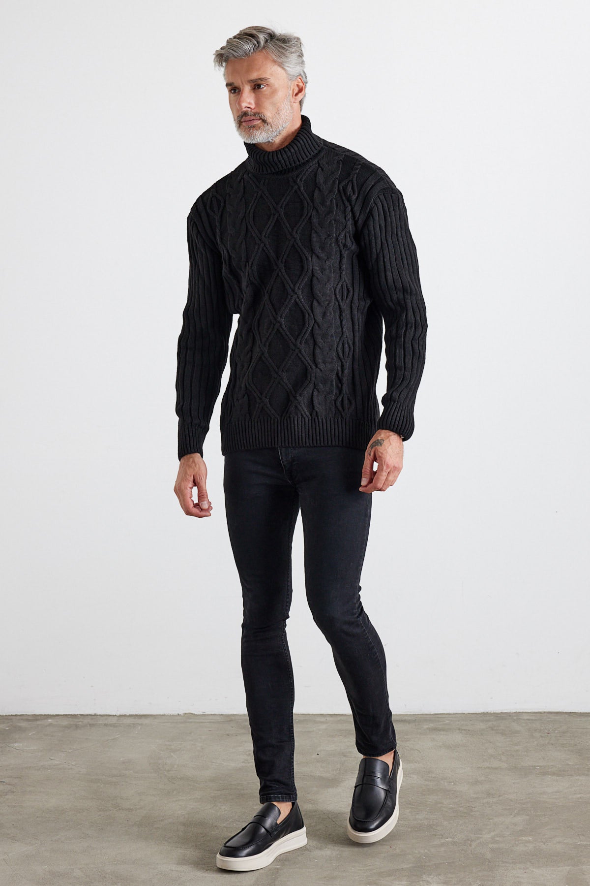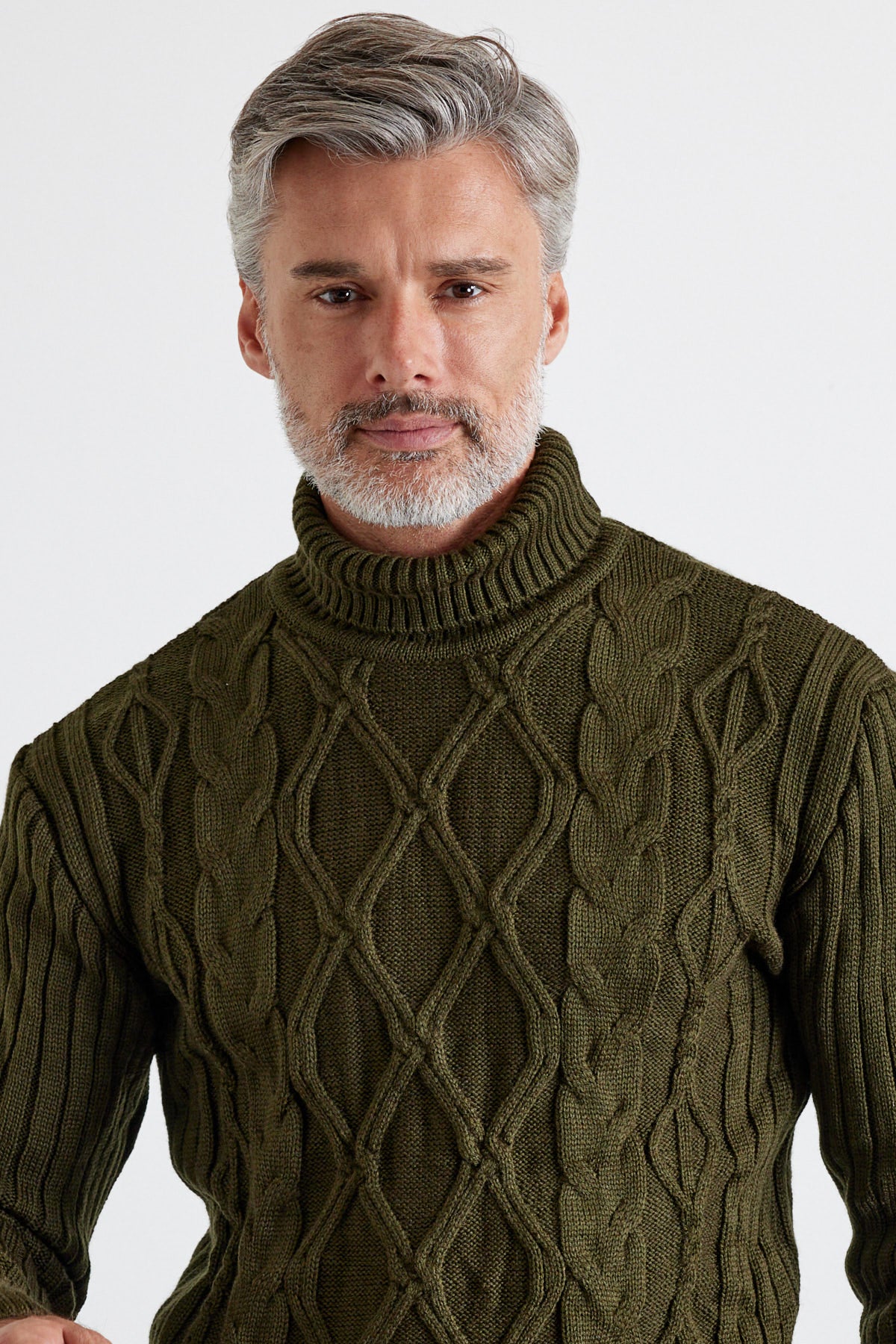 Erkek Saç Örgülü Baklava Desenli Tam Balıkçı Fitilli Kalın Triko Kazak