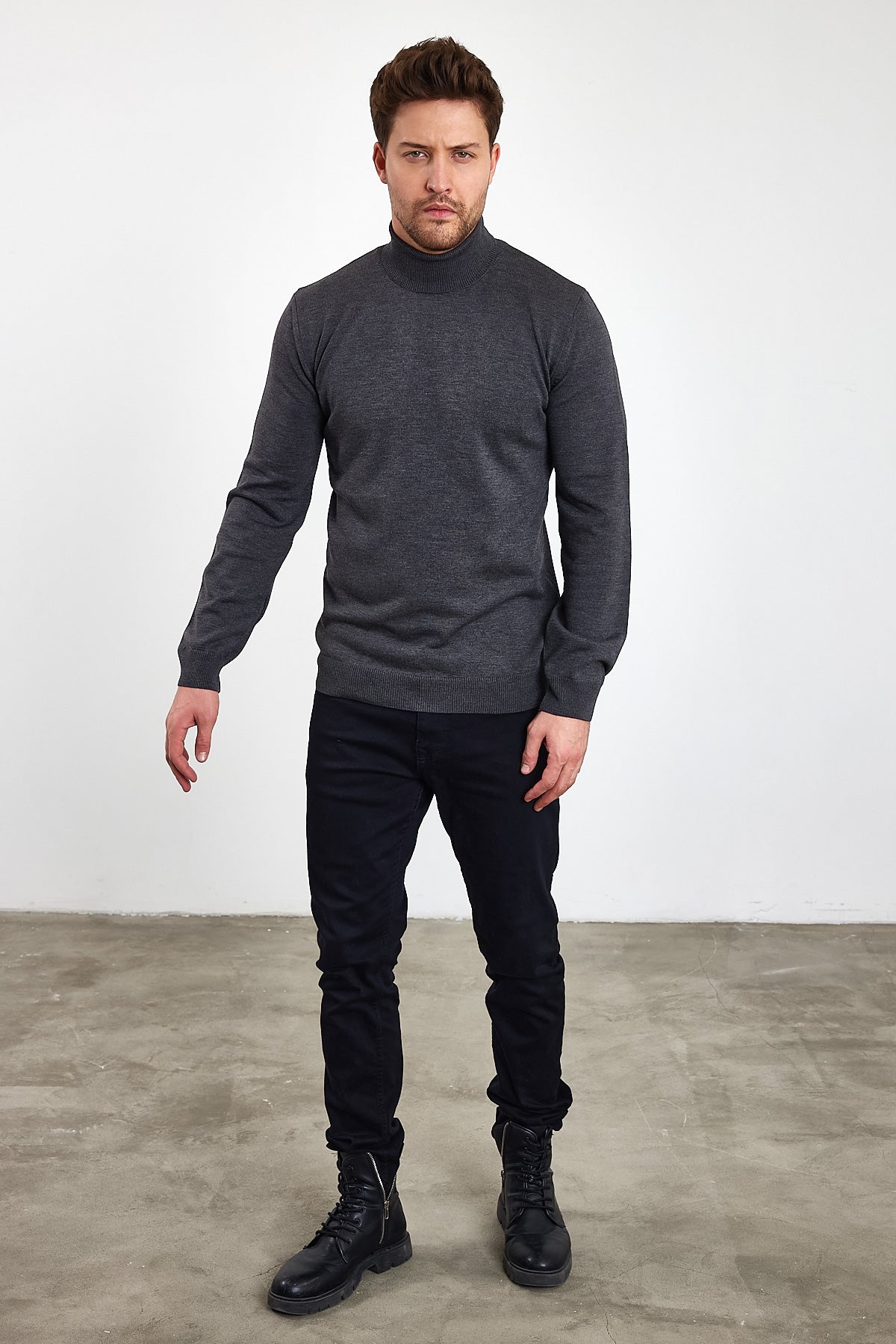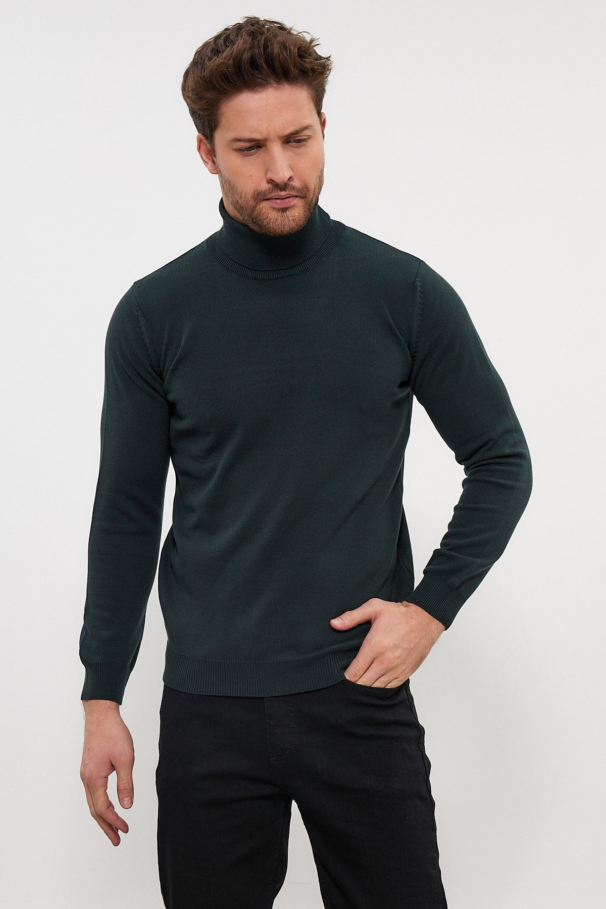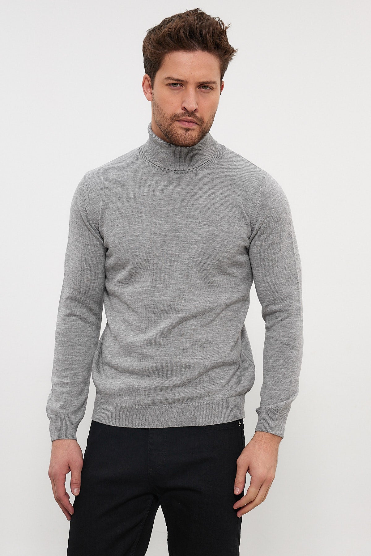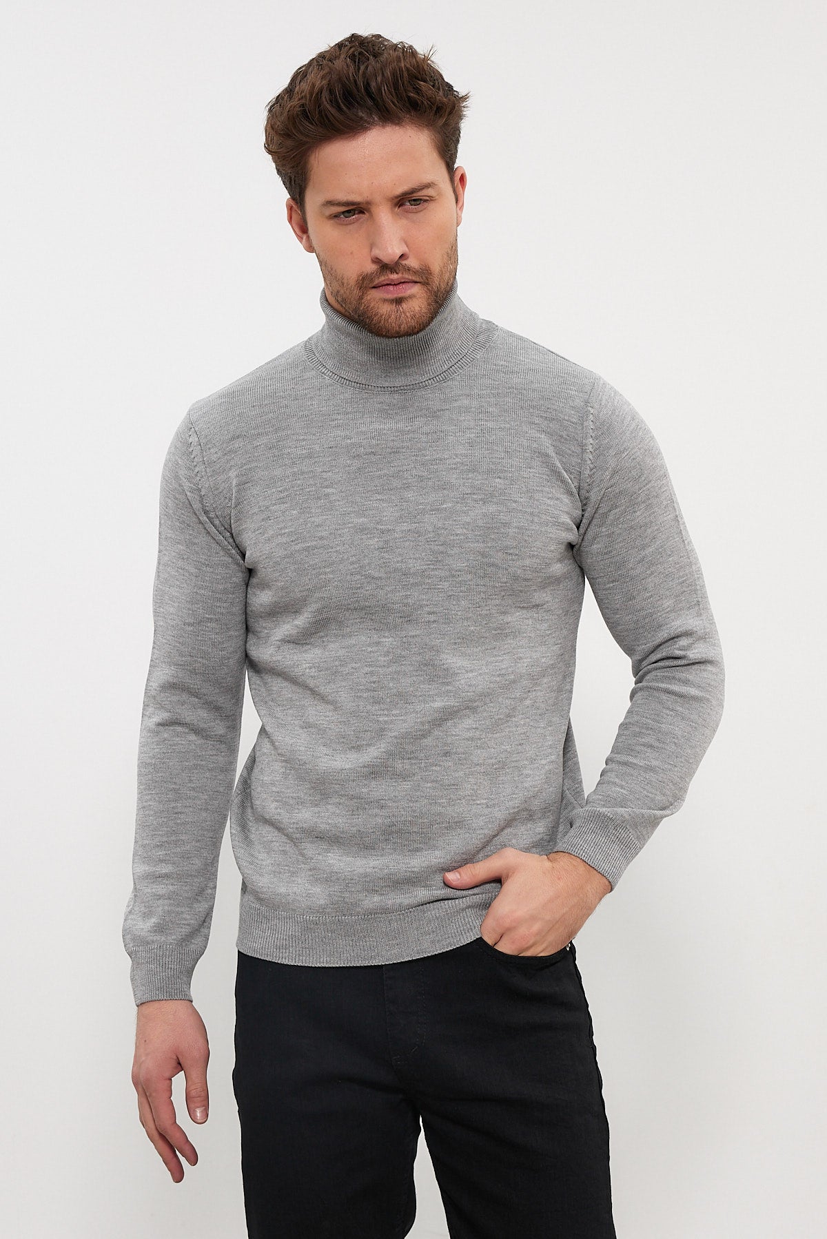 Erkek Slim Fit Dar Kesim Balıkçı Yaka Triko Kazak