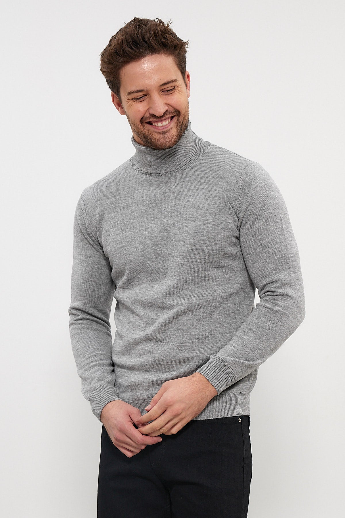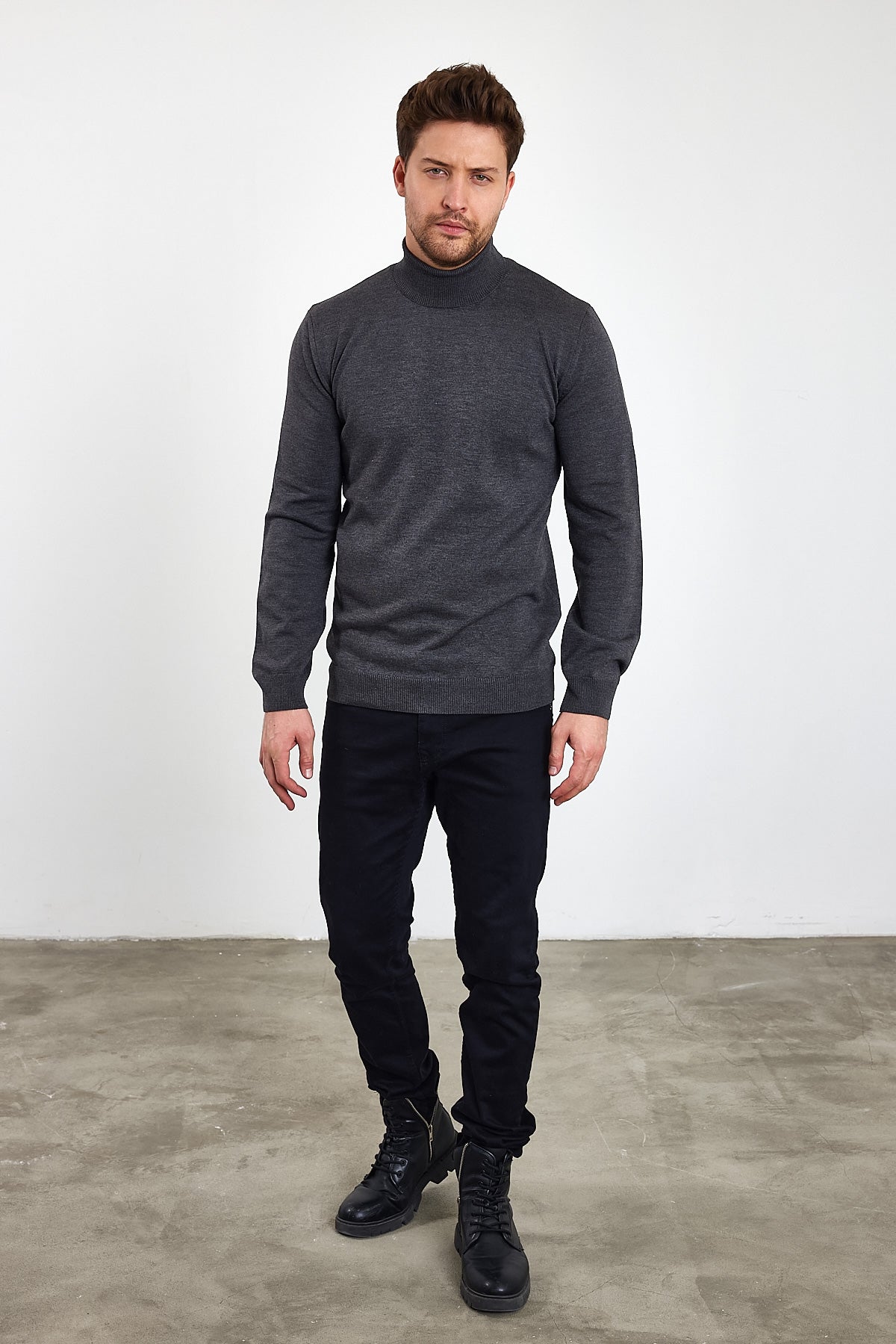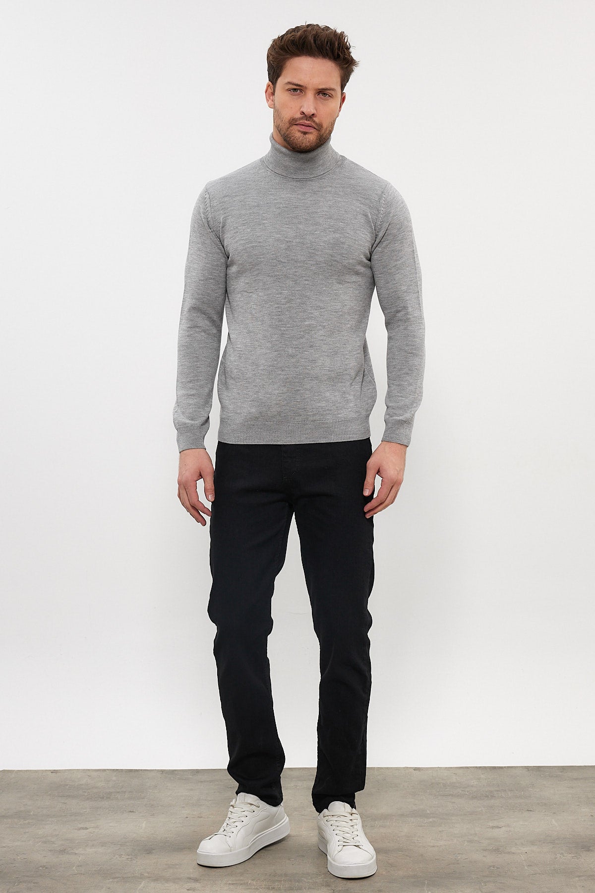 Erkek Slim Fit Dar Kesim Balıkçı Yaka Triko Kazak
