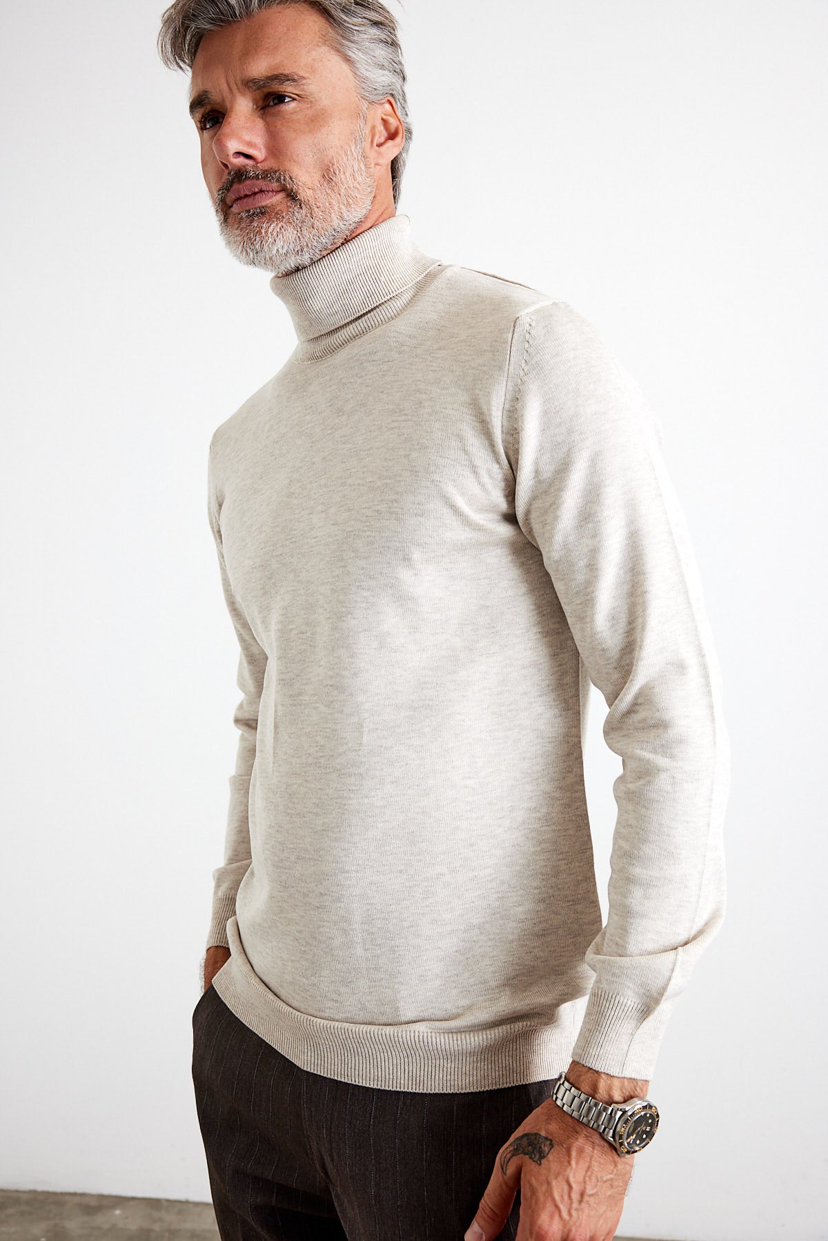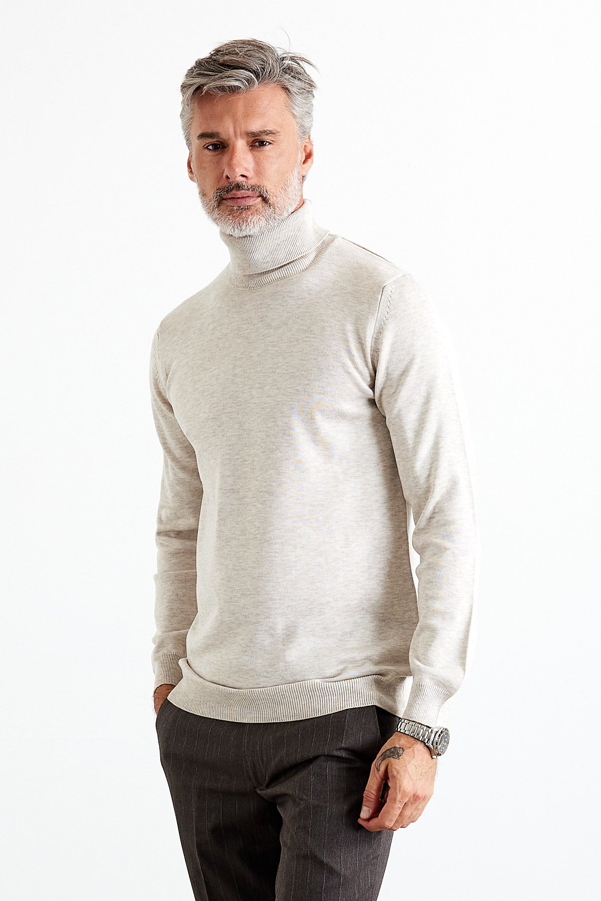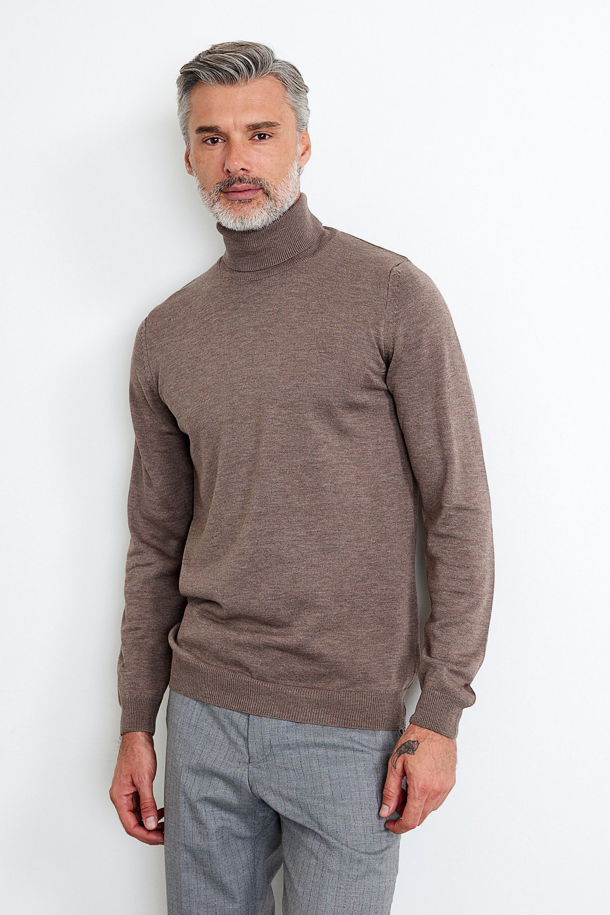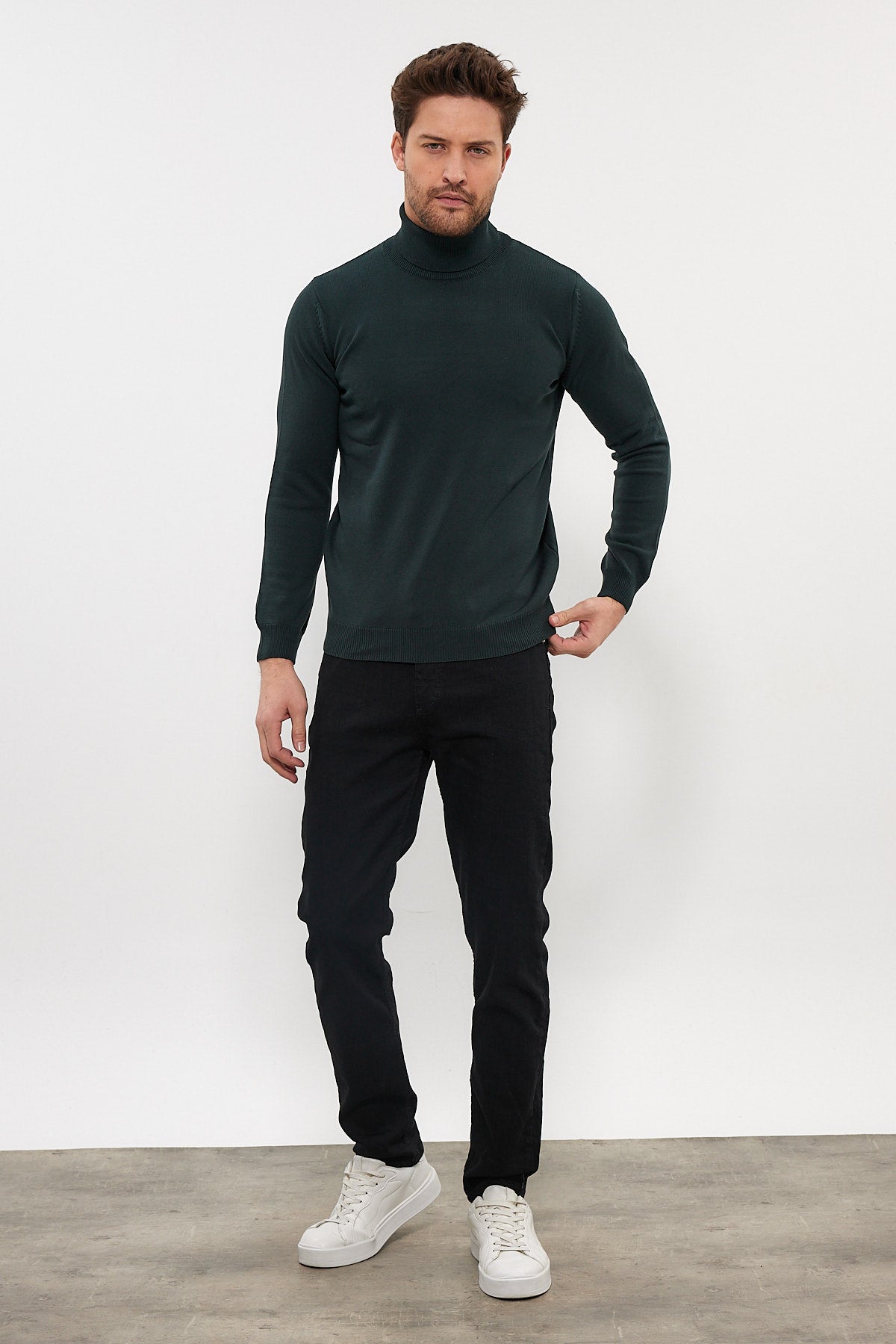 Erkek Slim Fit Dar Kesim Balıkçı Yaka Triko Kazak