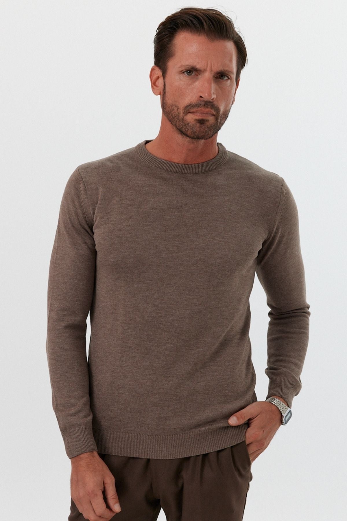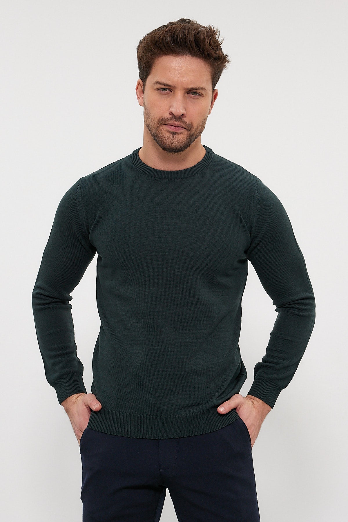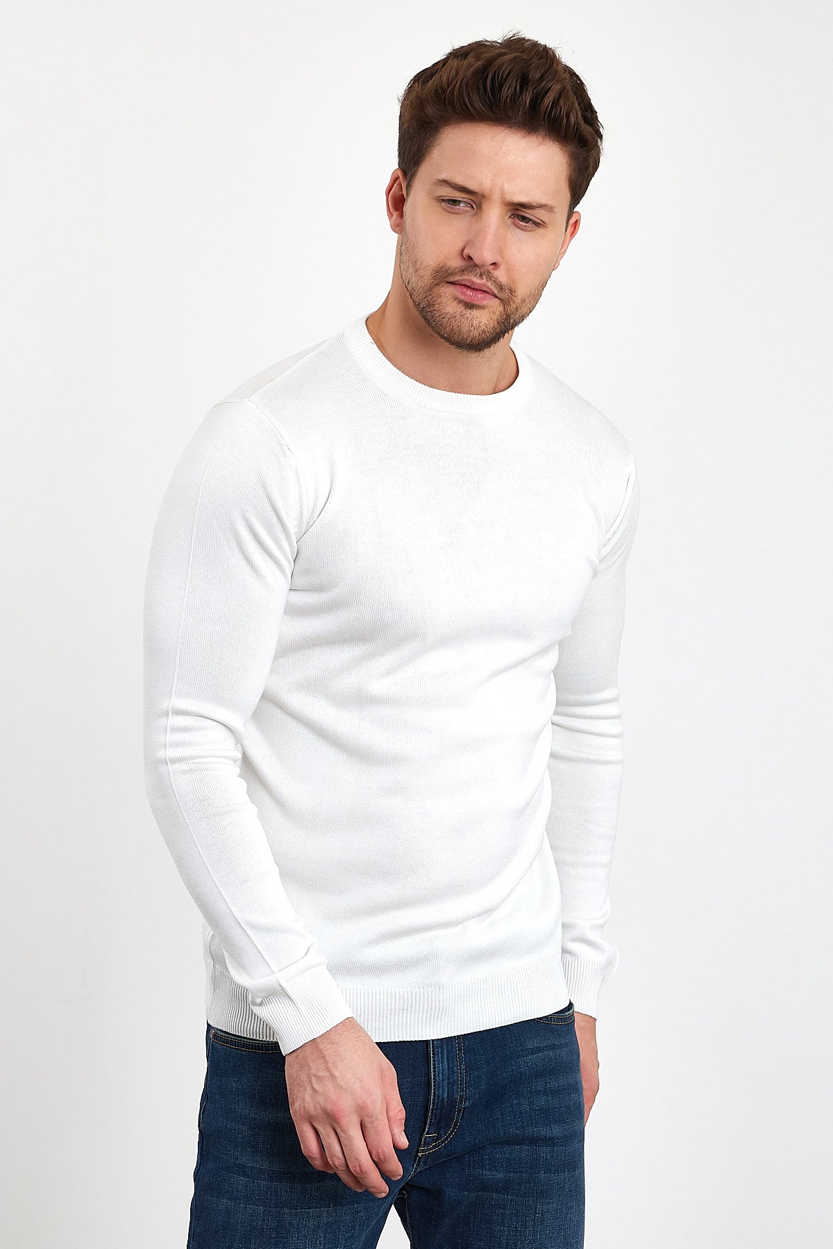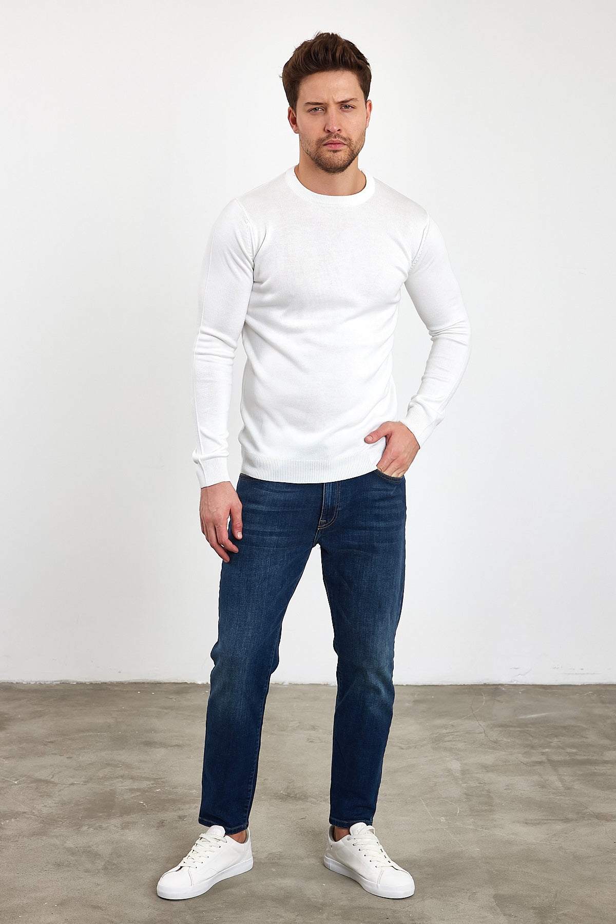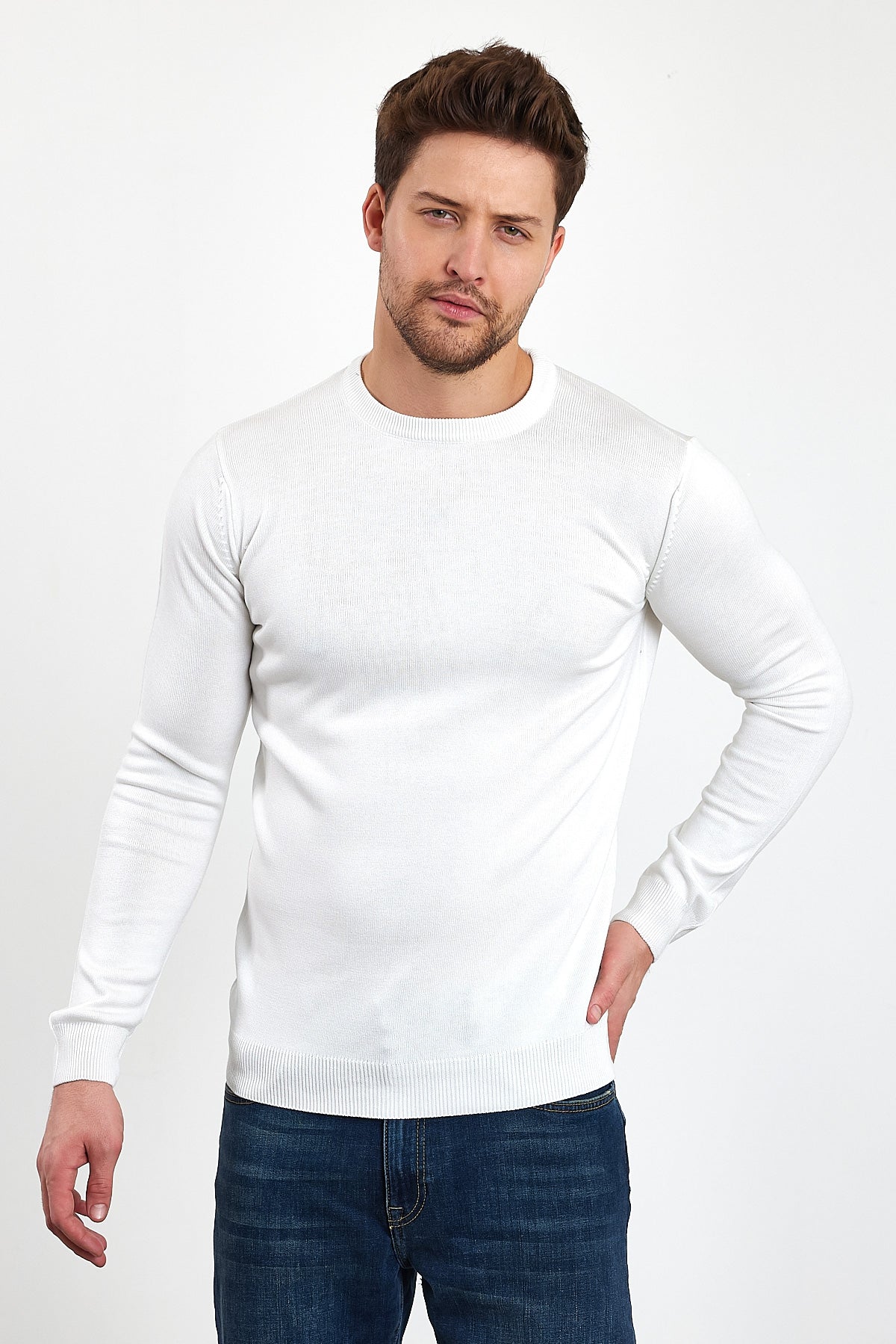 Erkek Slim Fit Dar Kesim Bisiklet Yaka Triko Kazak