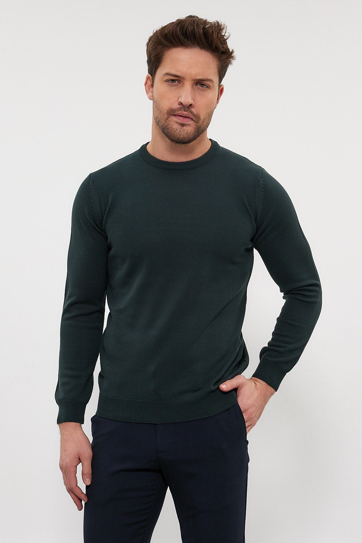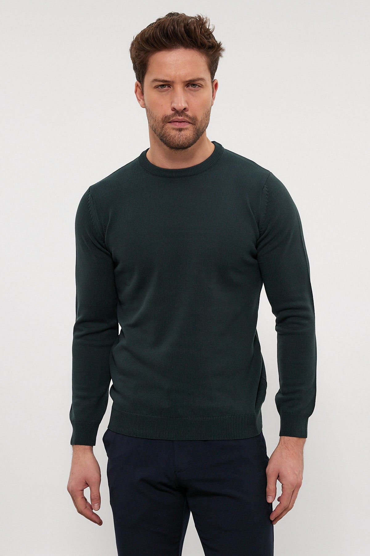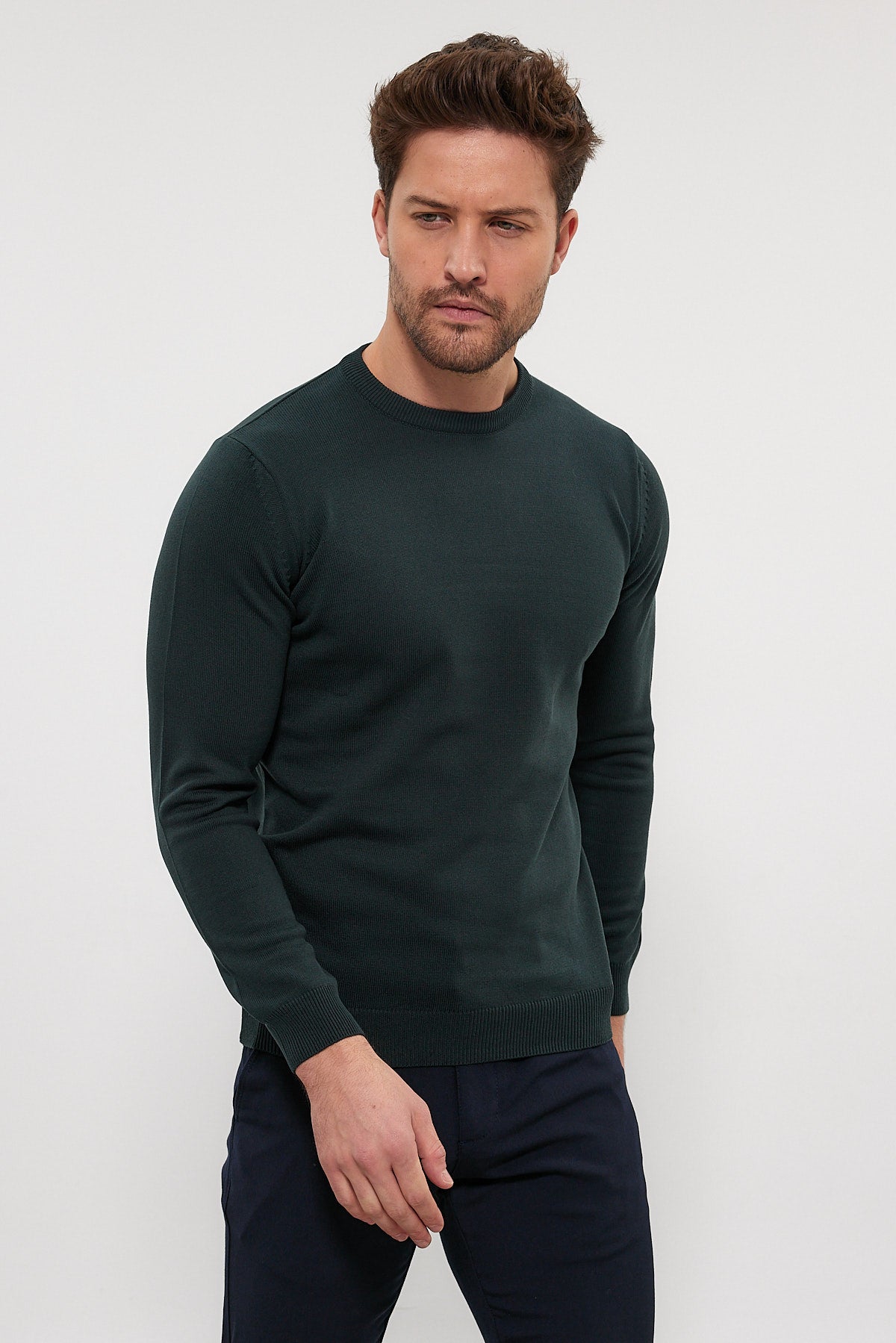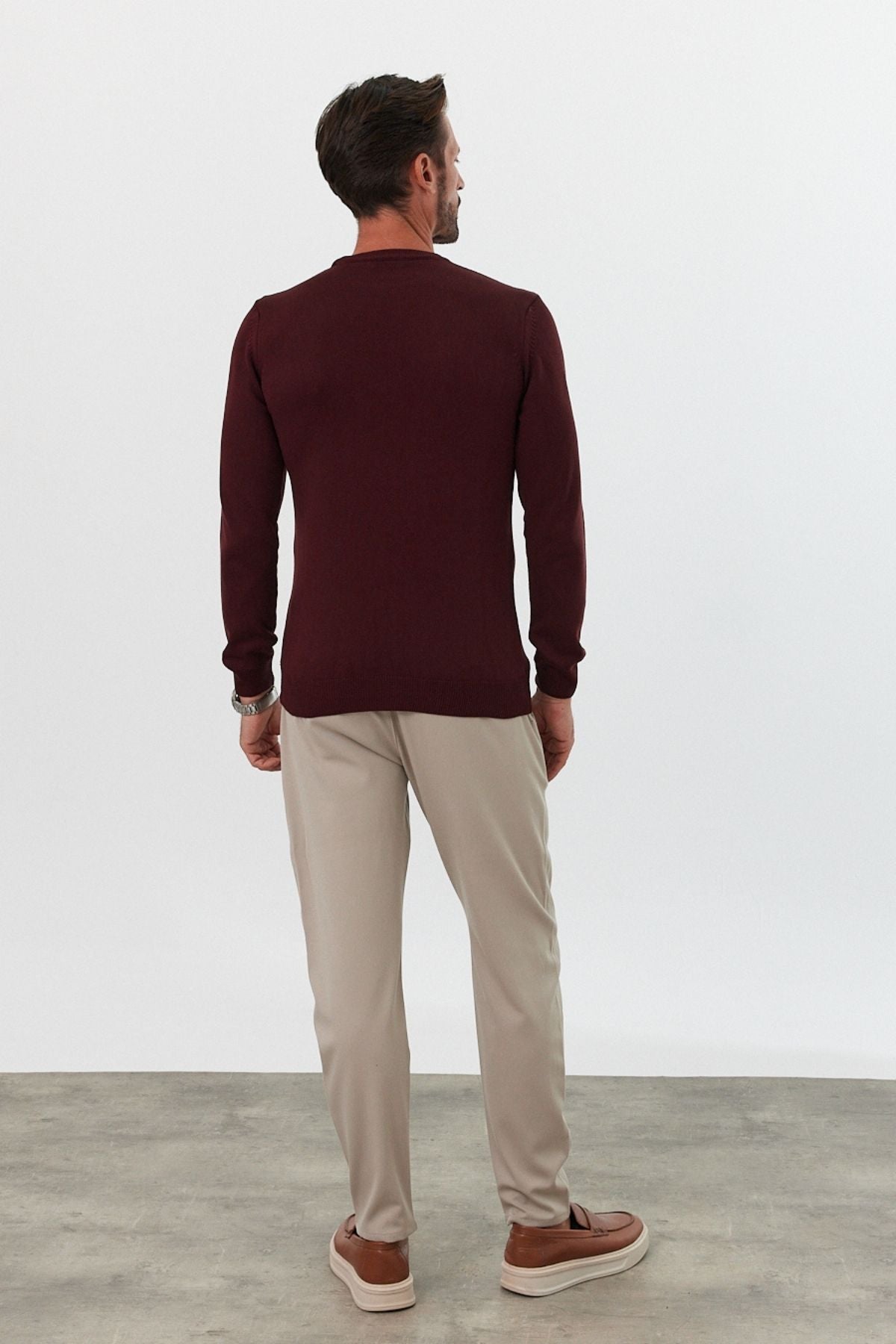Erkek Slim Fit Dar Kesim Bisiklet Yaka Triko Kazak