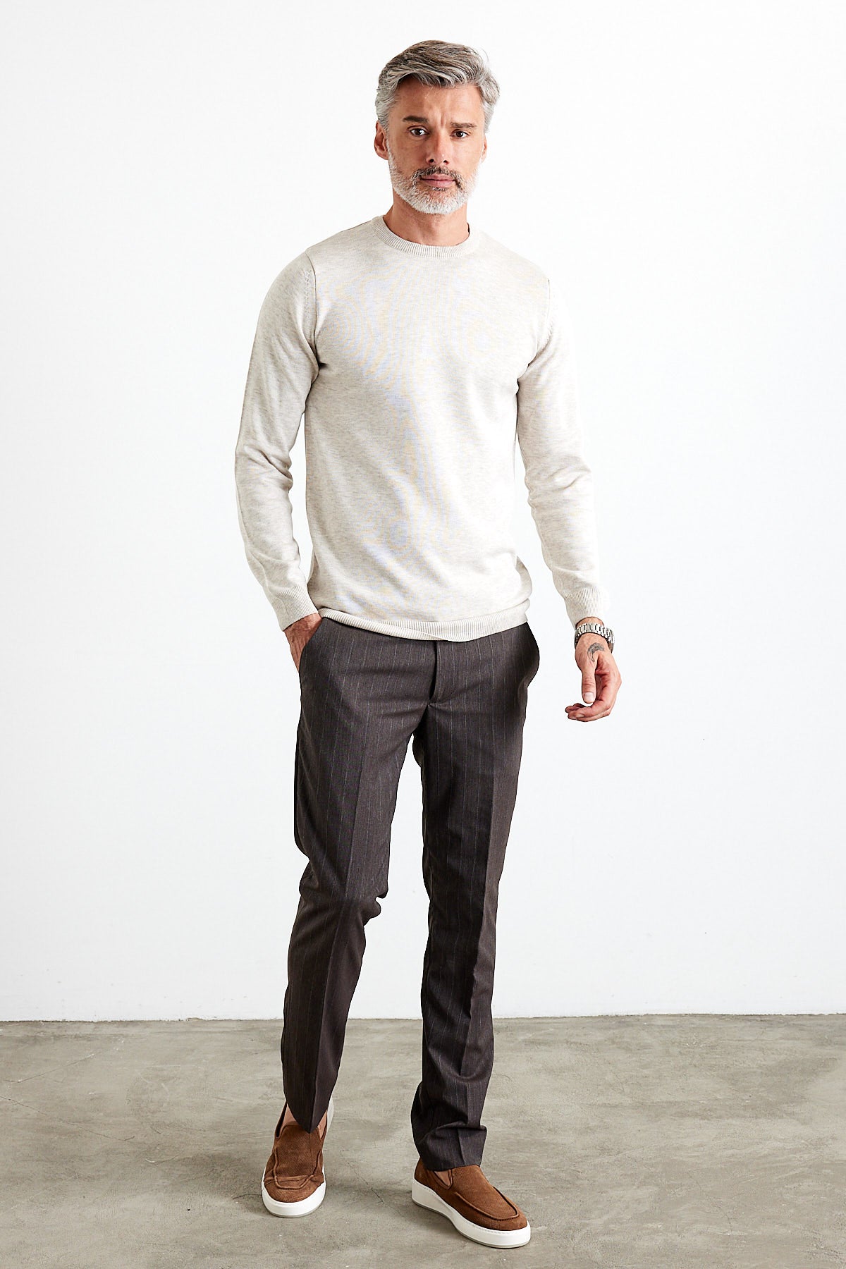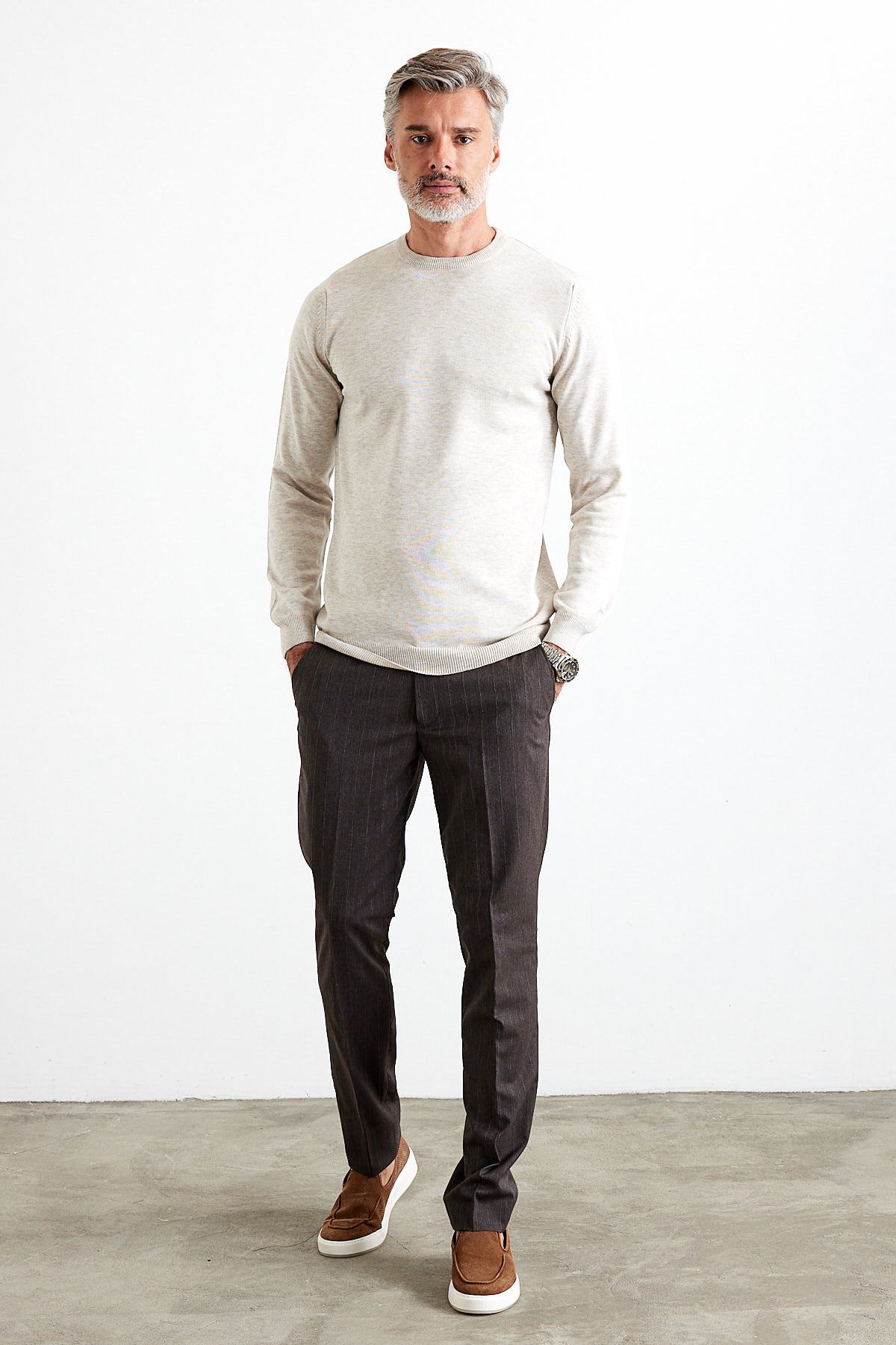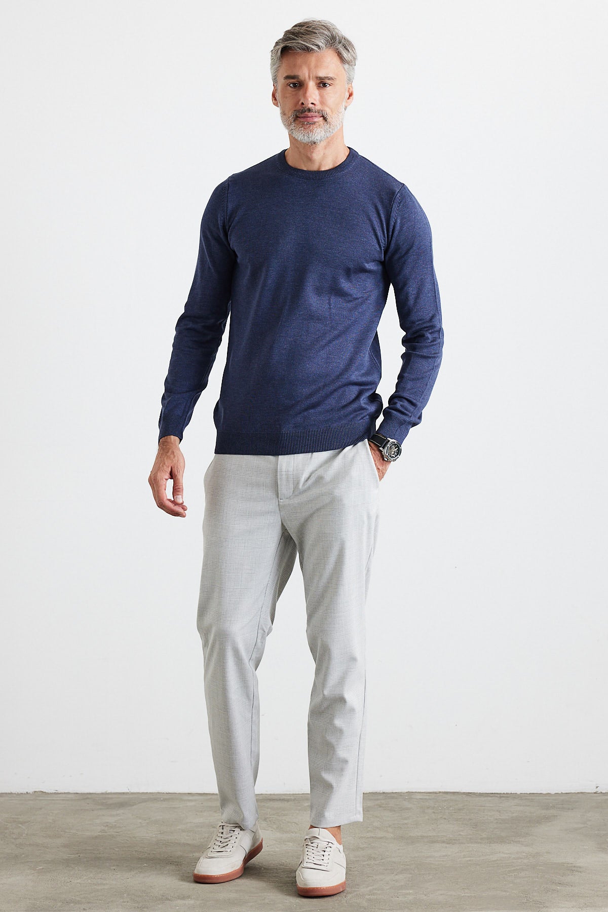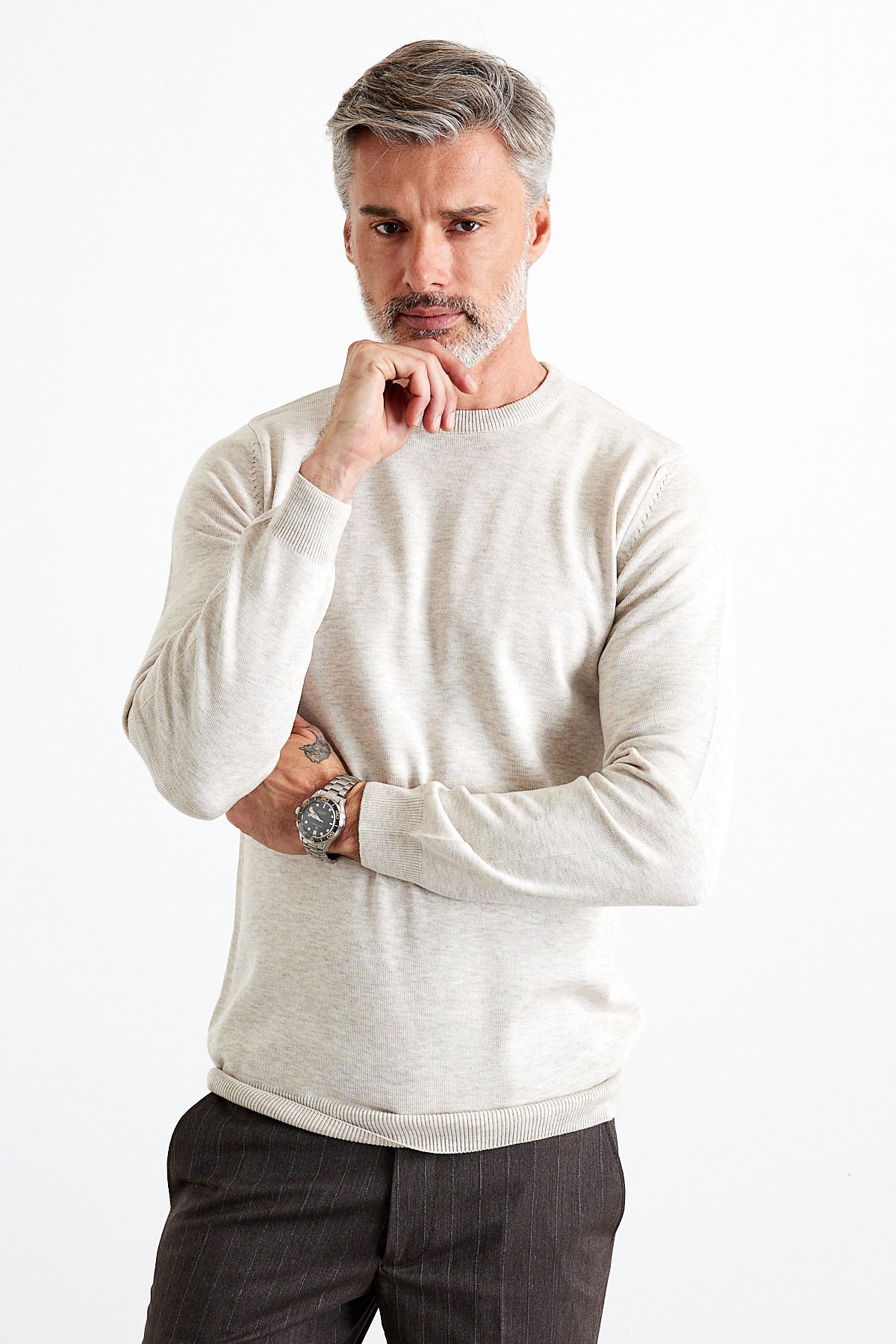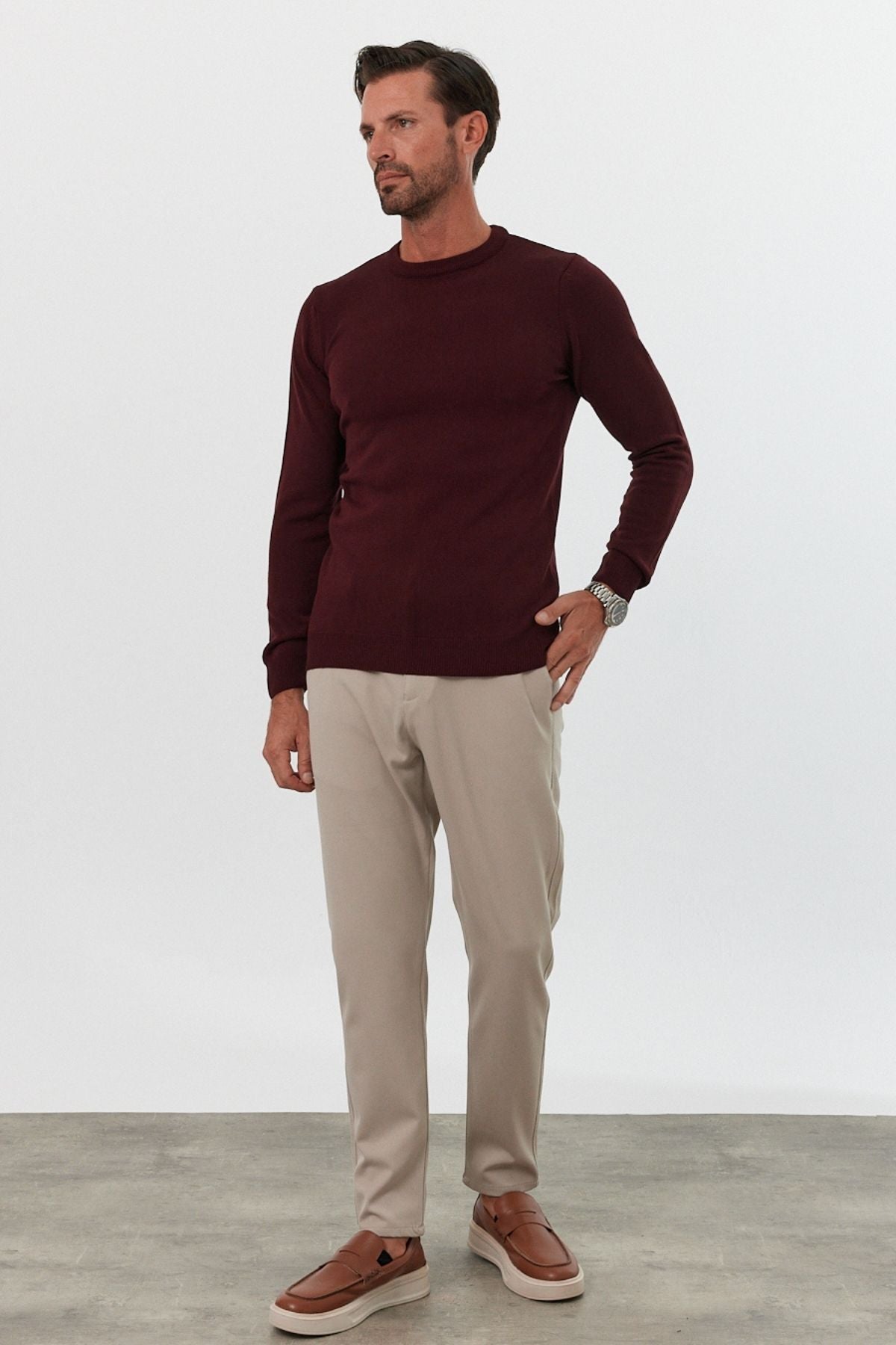 Erkek Slim Fit Dar Kesim Bisiklet Yaka Triko Kazak