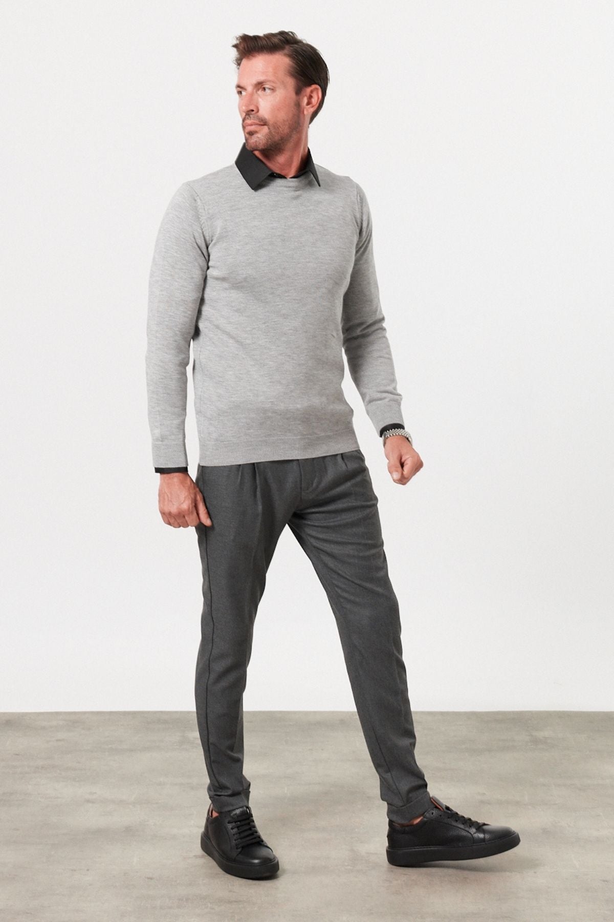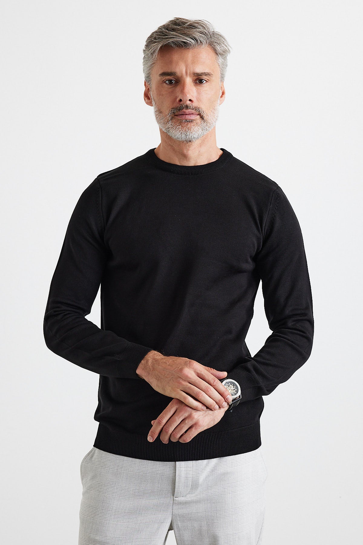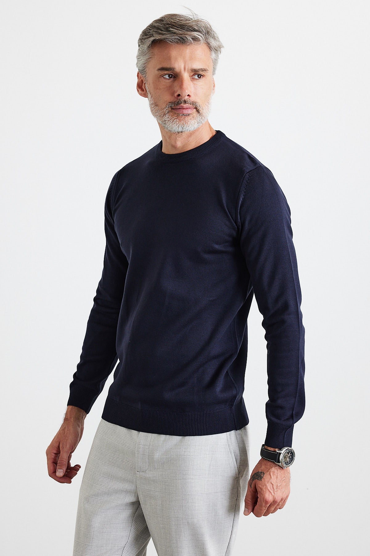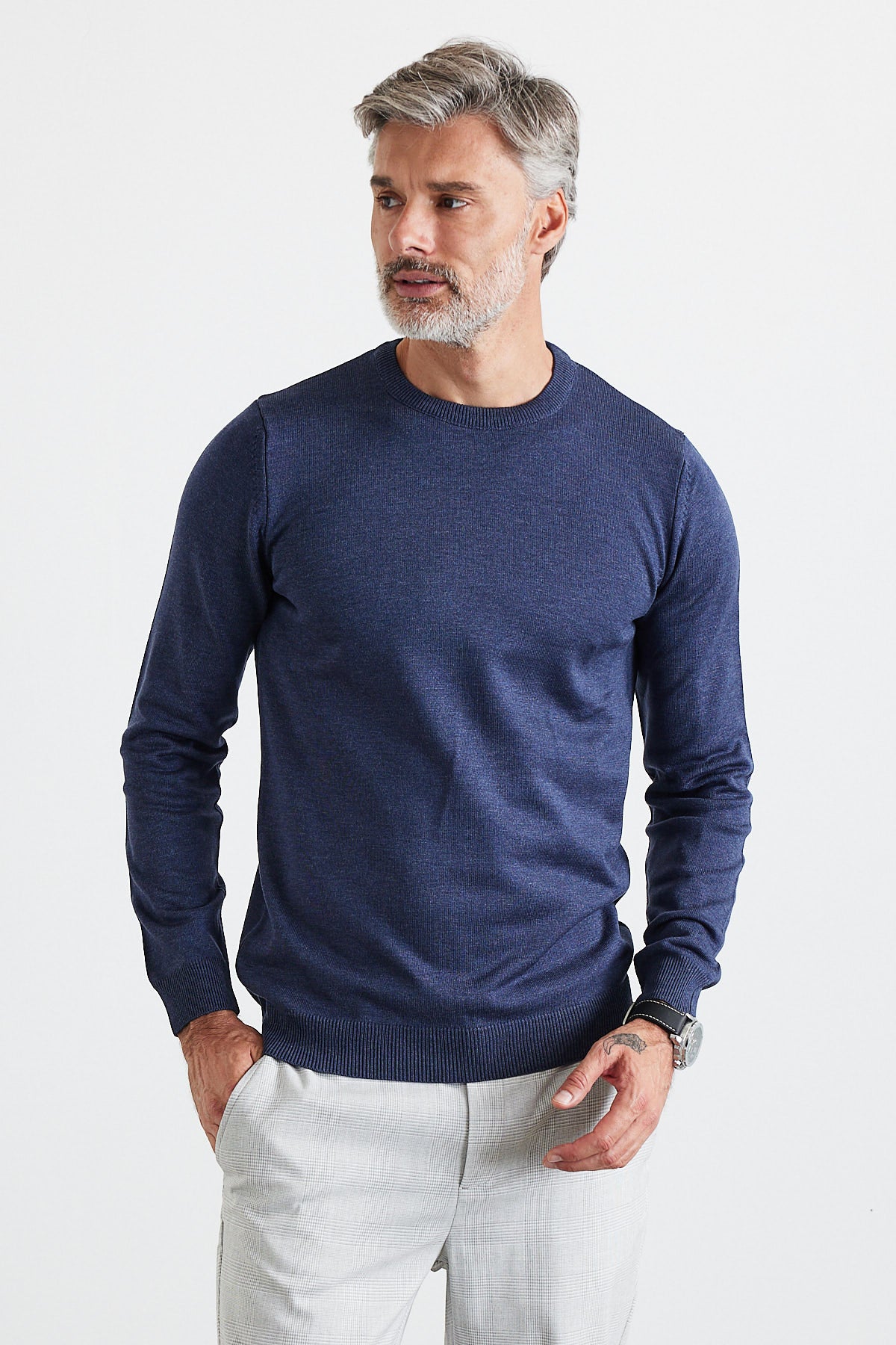 Erkek Slim Fit Dar Kesim Bisiklet Yaka Triko Kazak