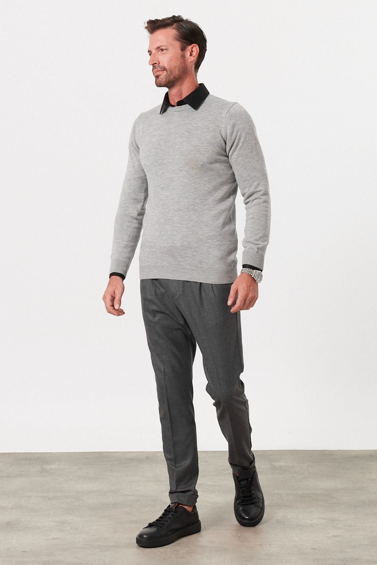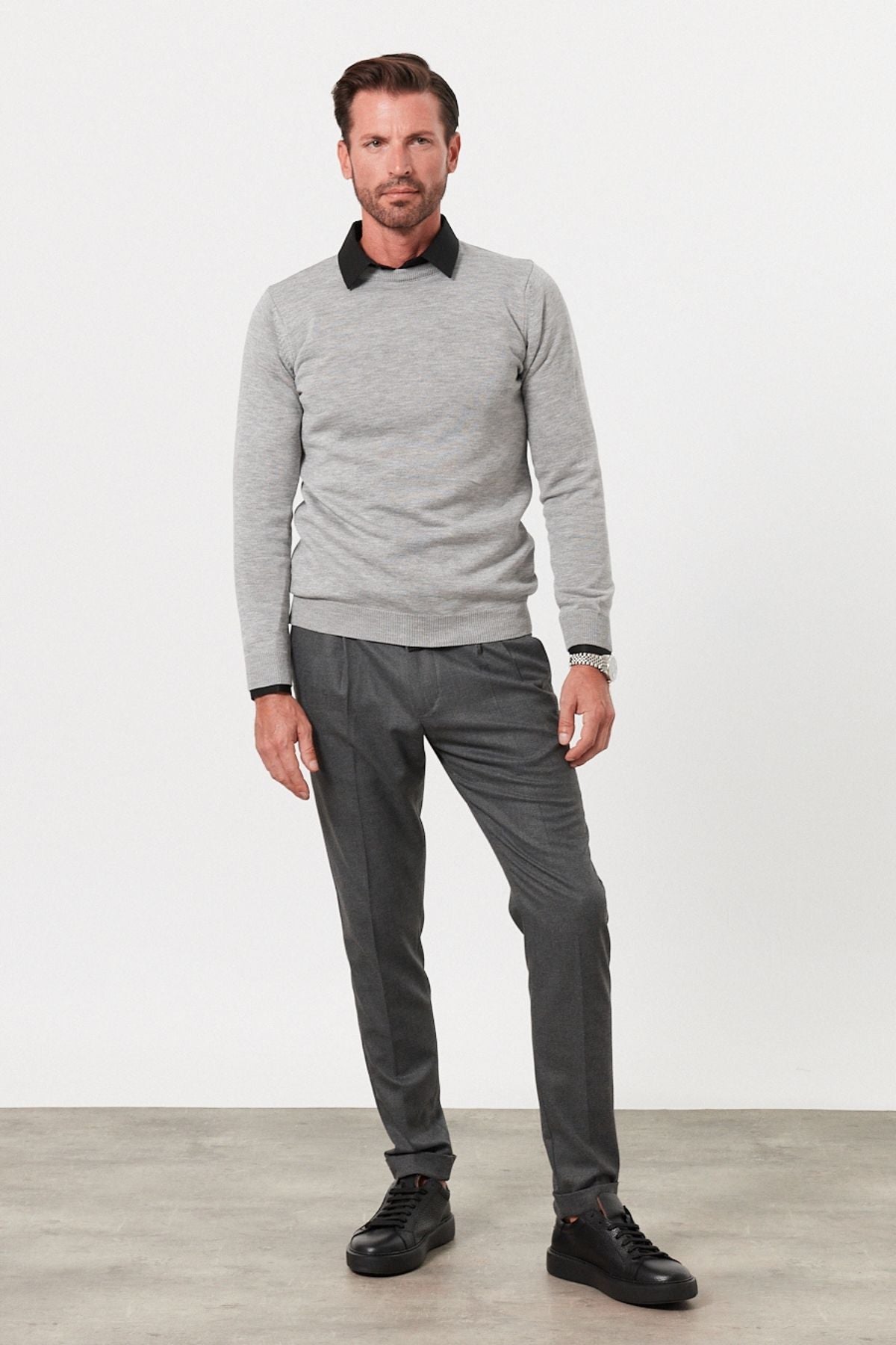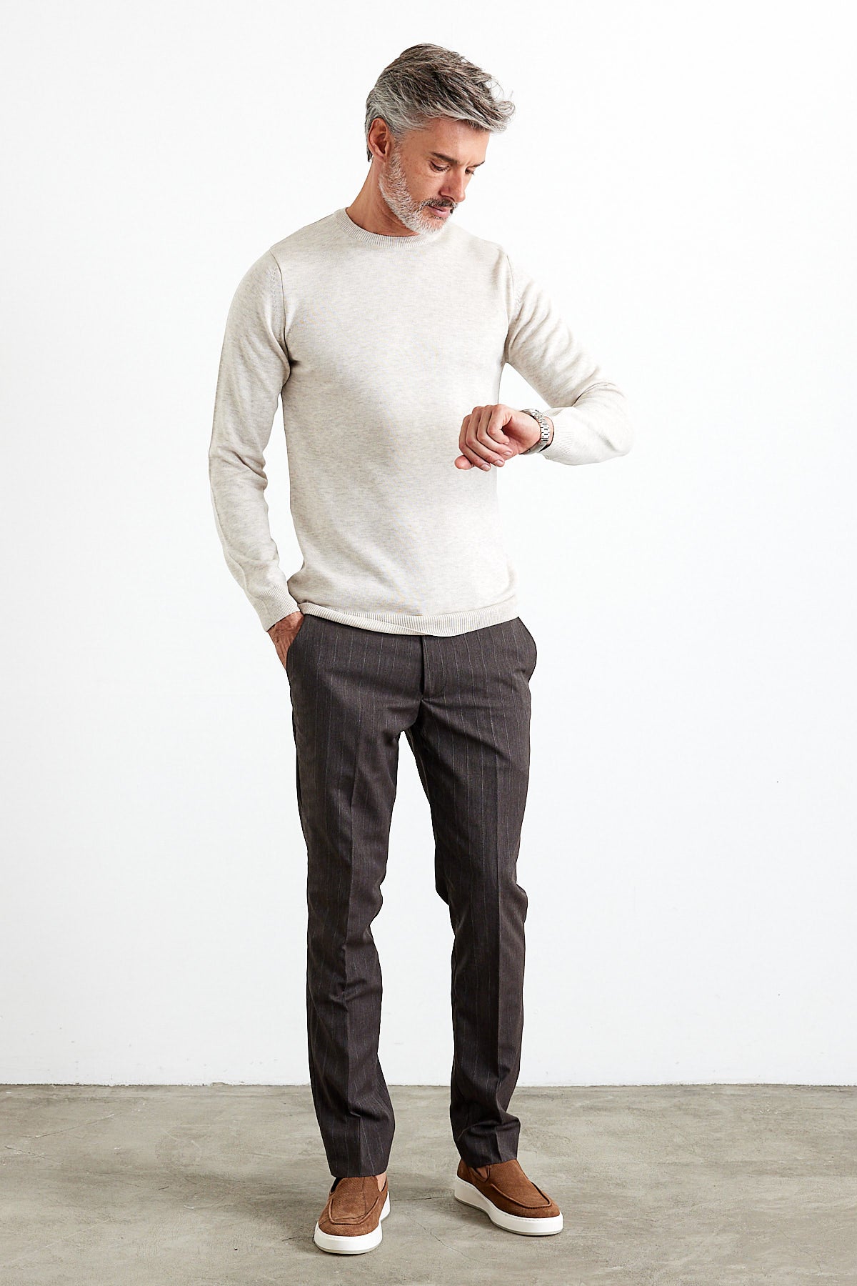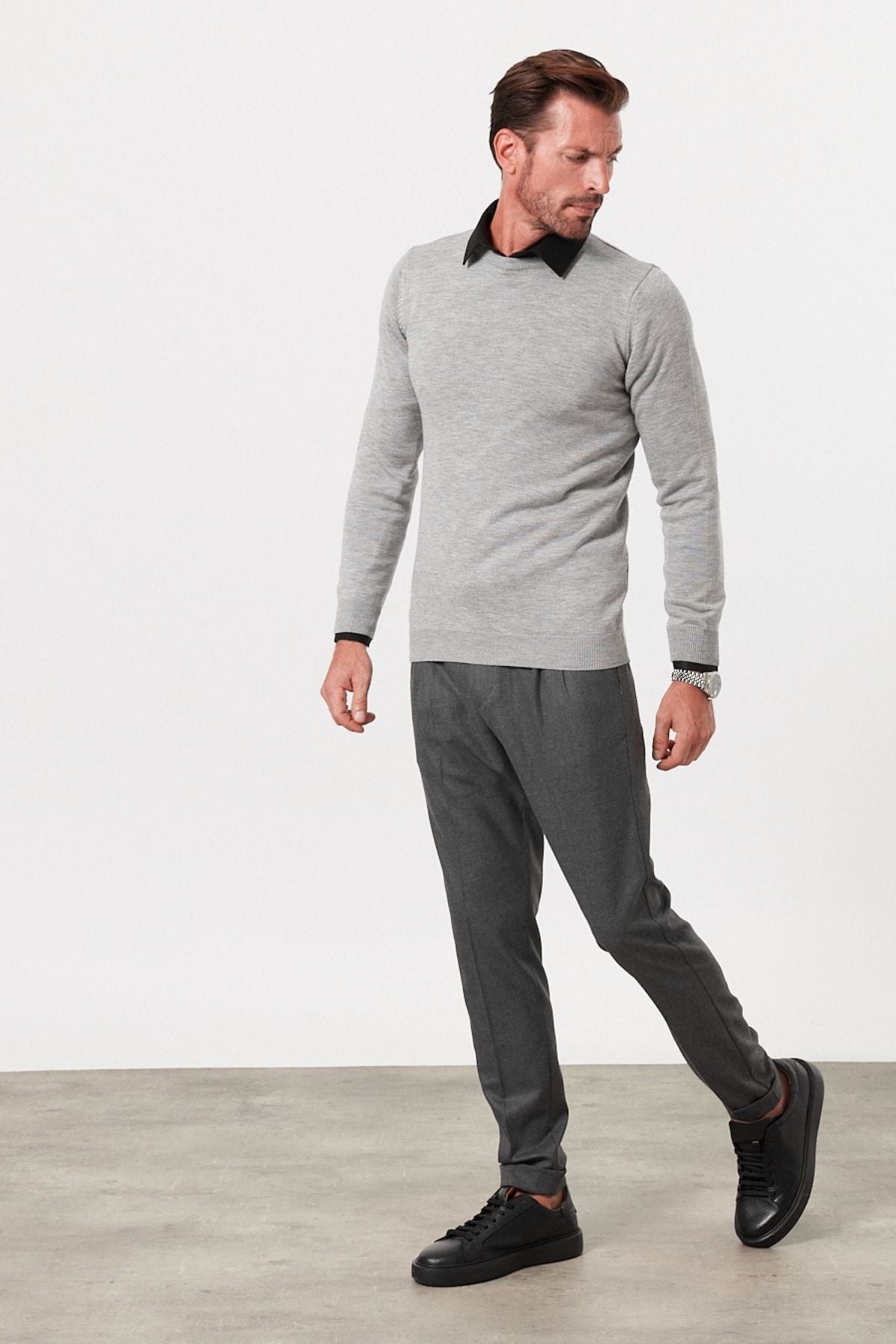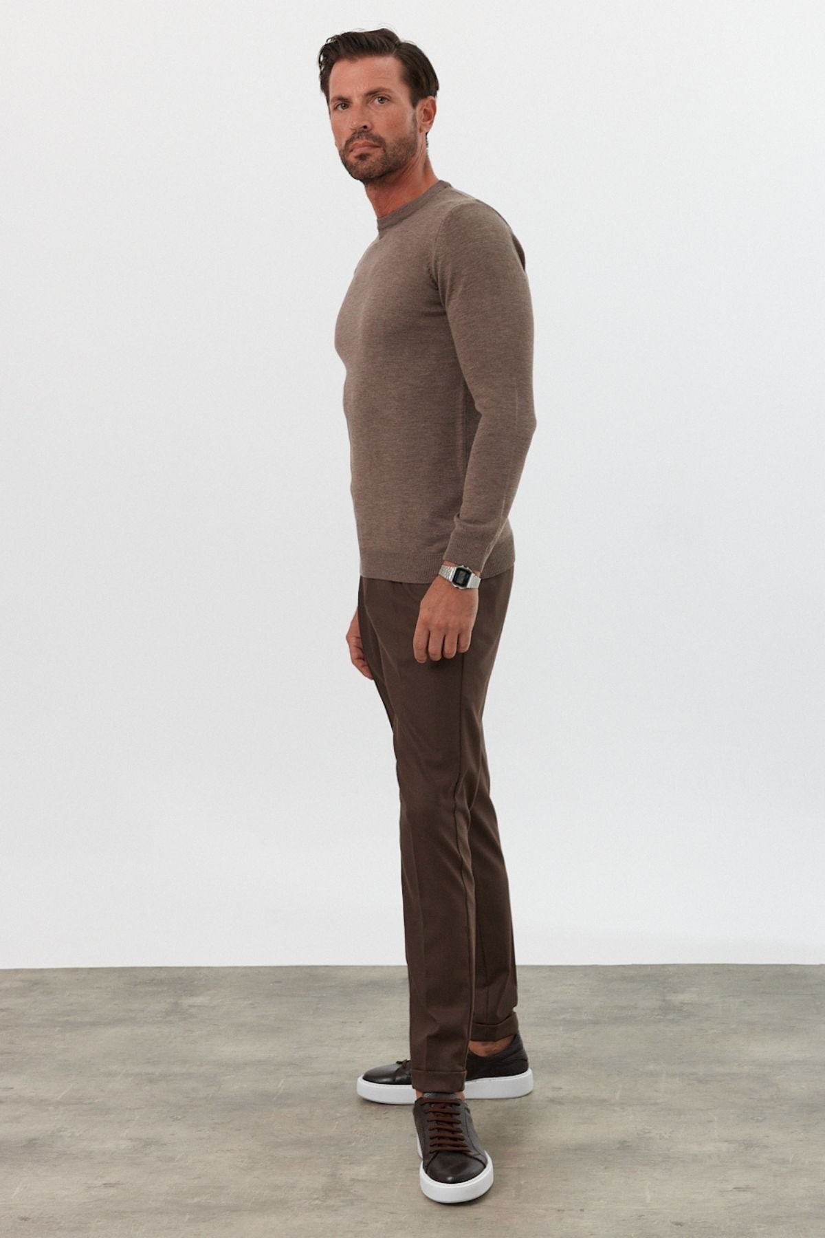 Erkek Slim Fit Dar Kesim Bisiklet Yaka Triko Kazak