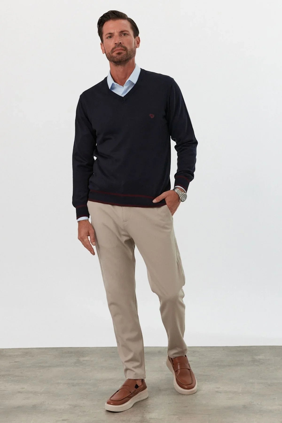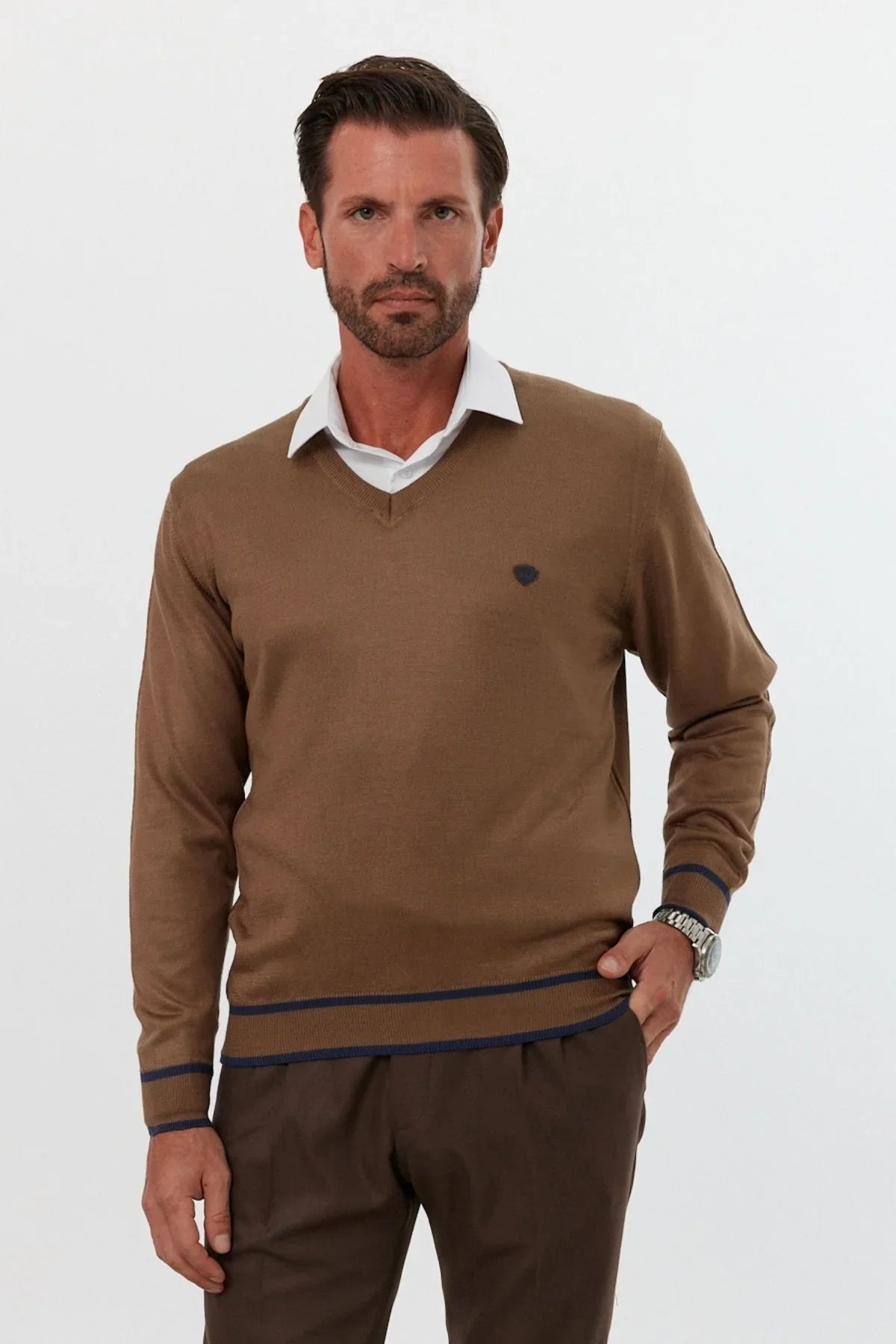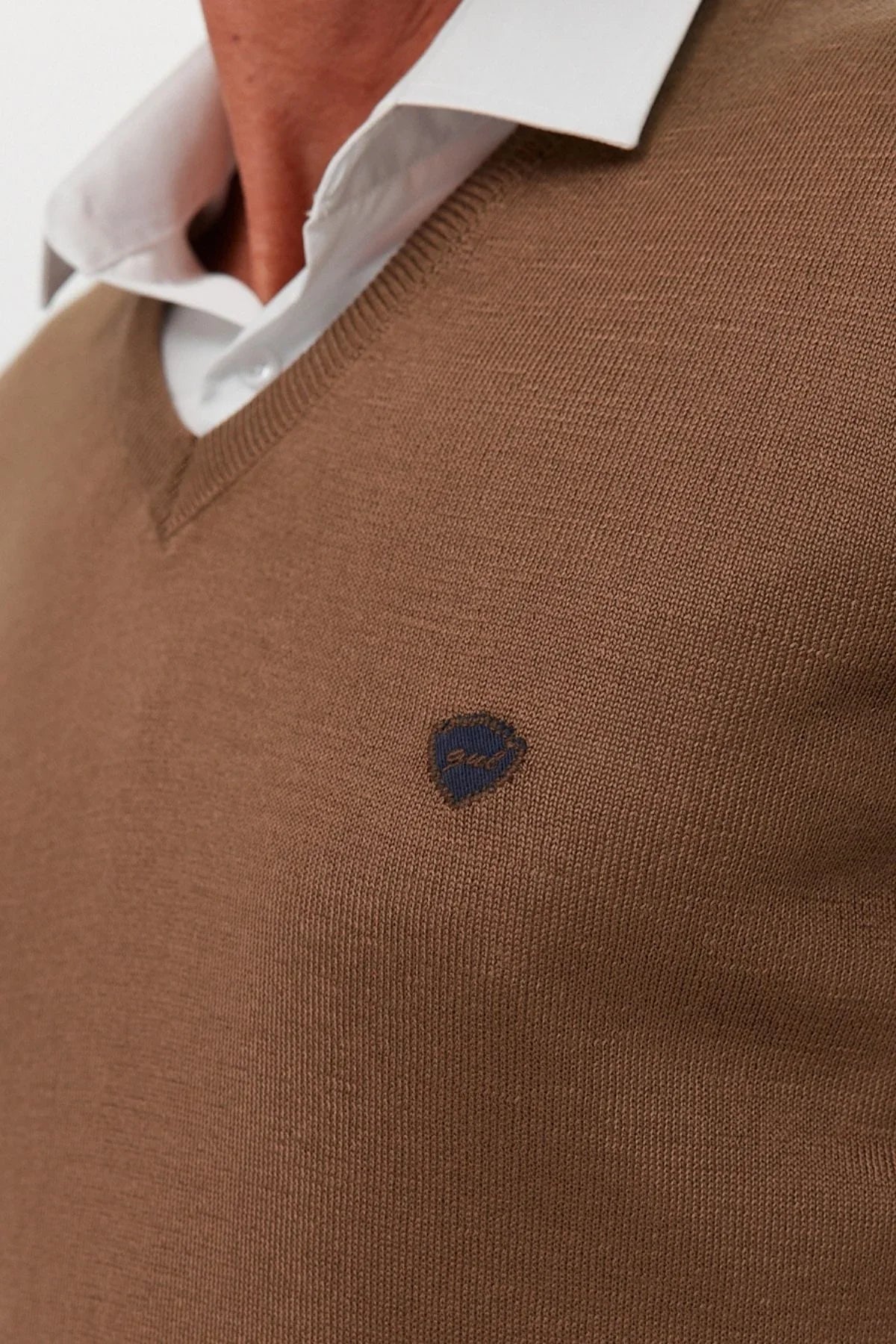Erkek Standart Fit Nakışlı Normal Kesim V Yaka Triko Kazak