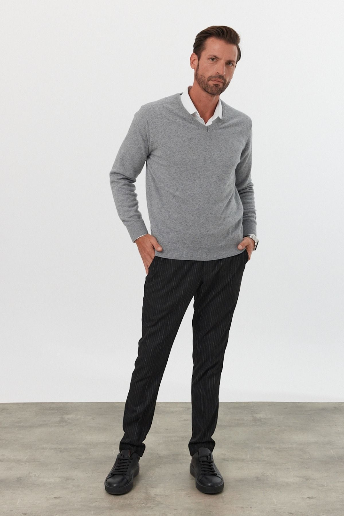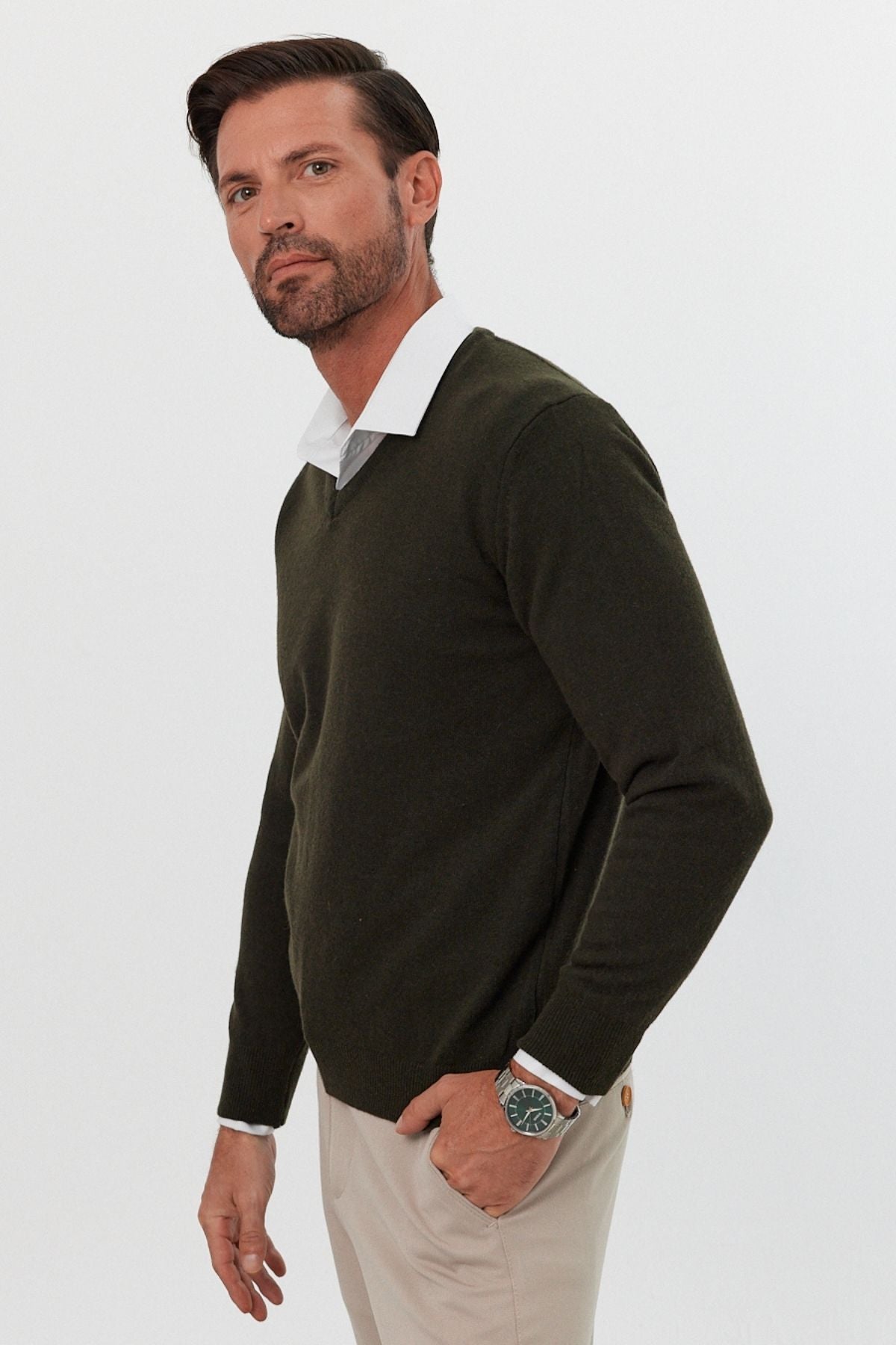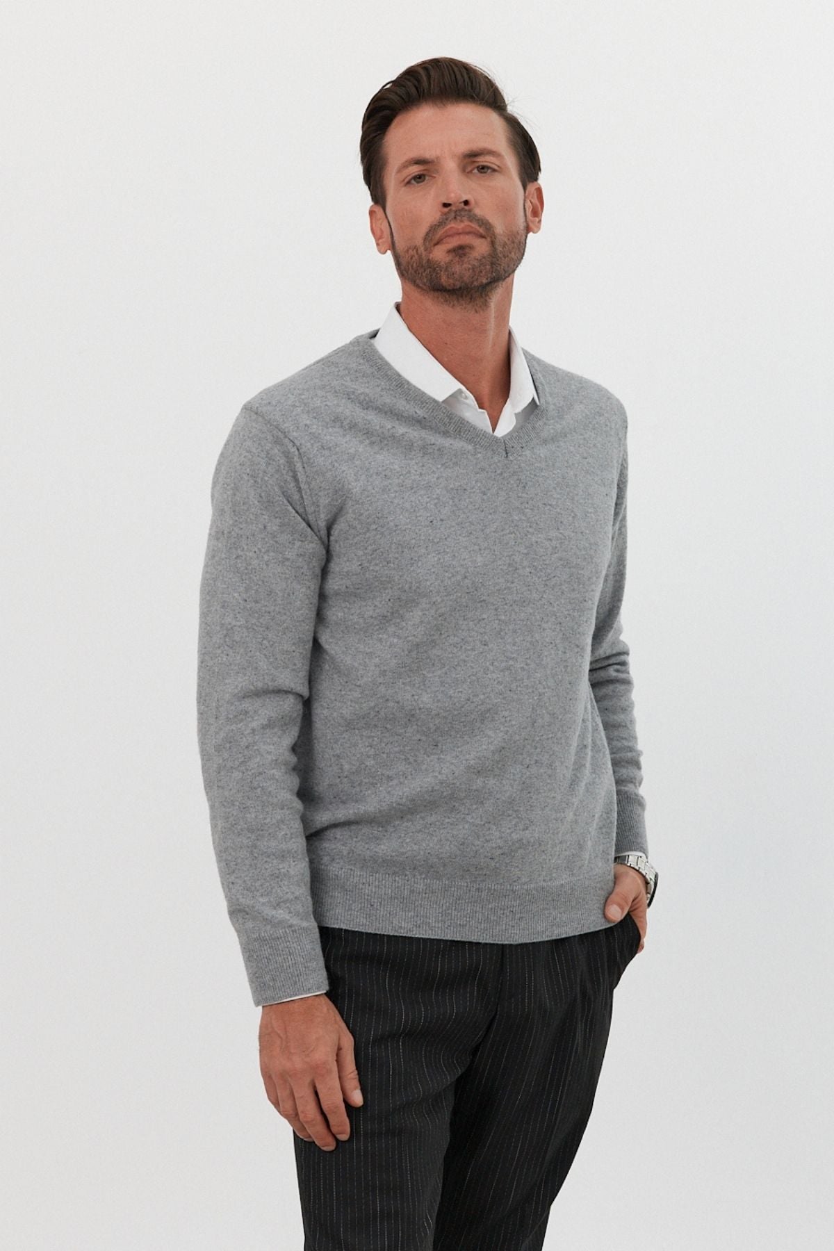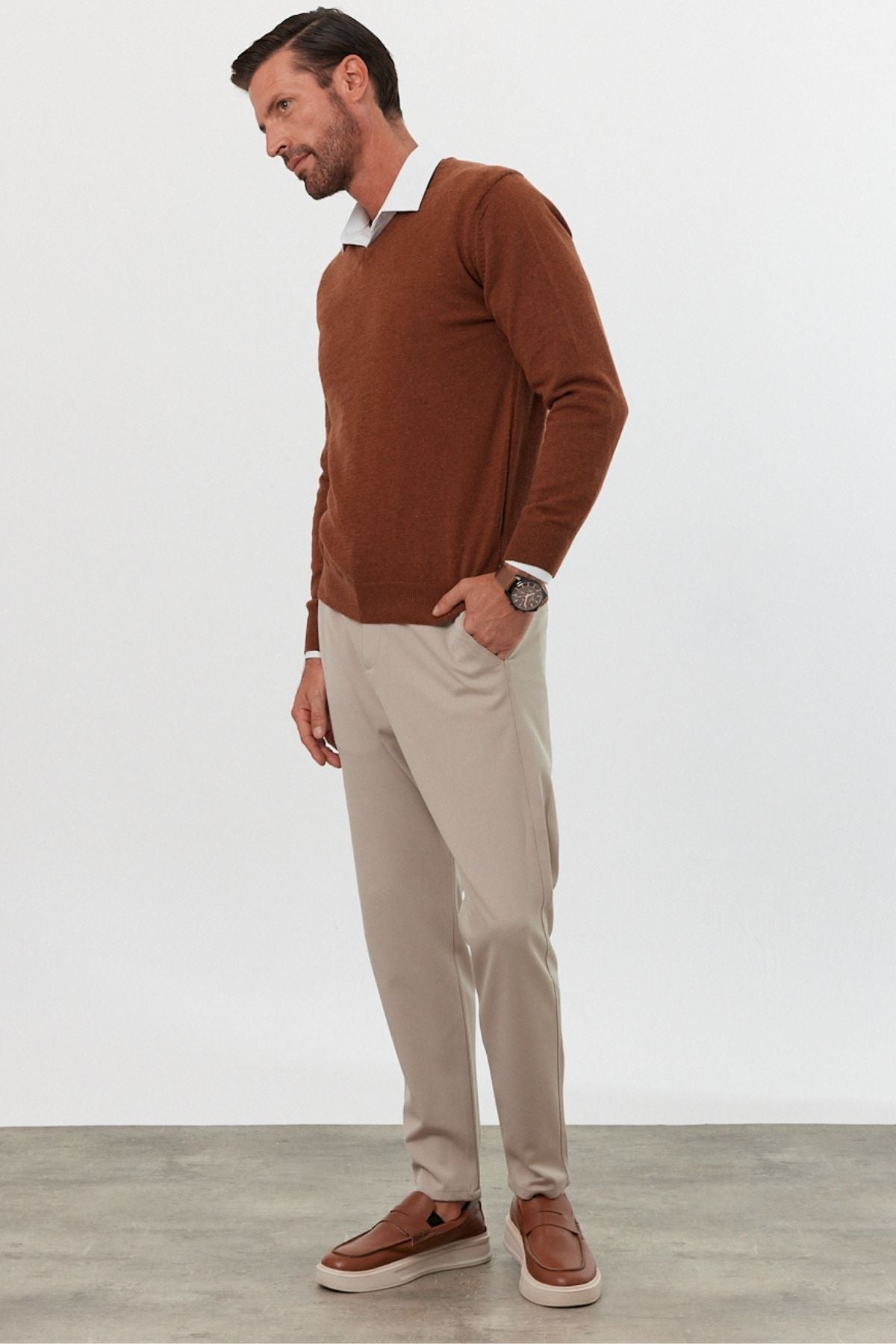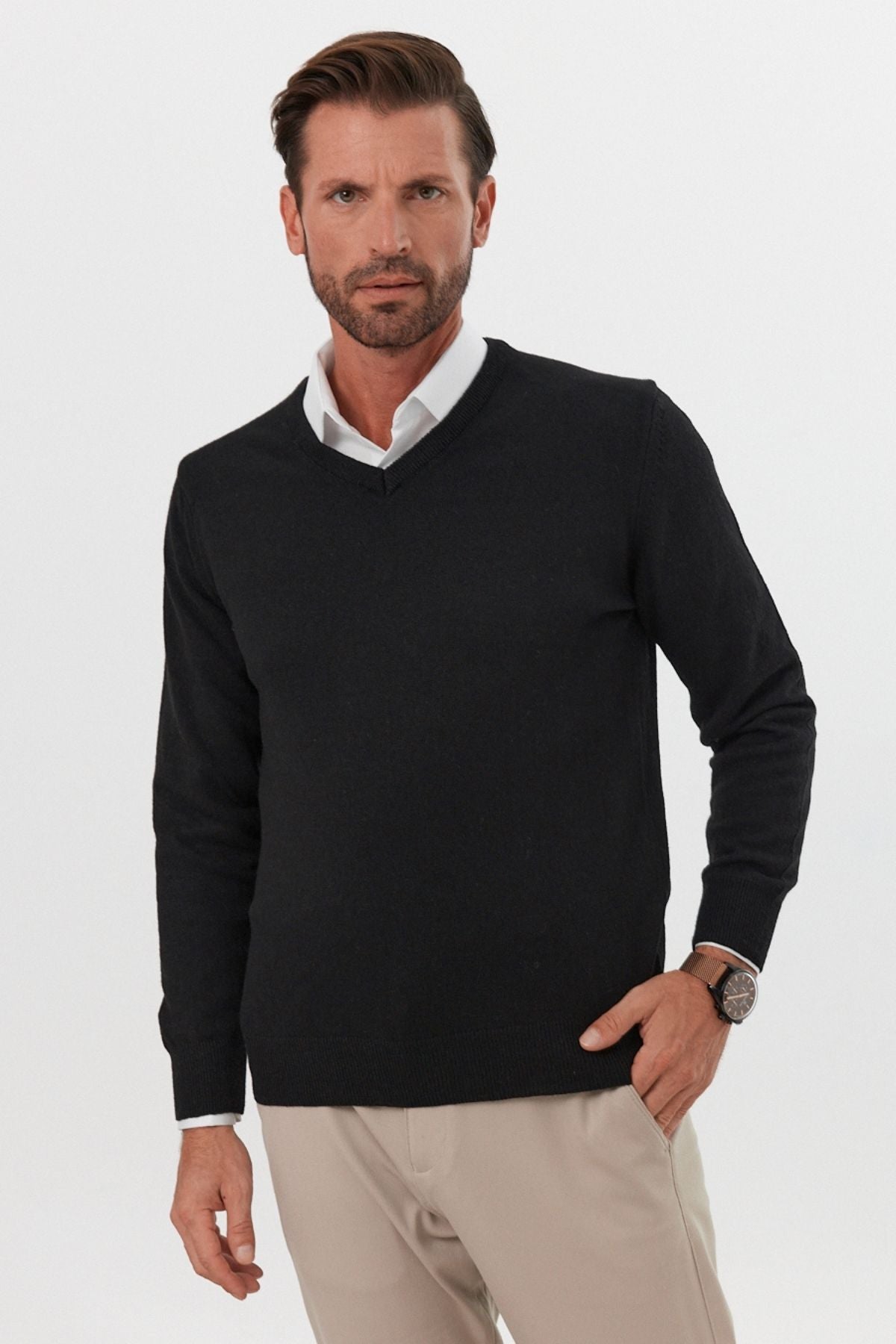 Erkek Yünlü Normal Kalıp V Yaka Standart Fit Triko Kazak