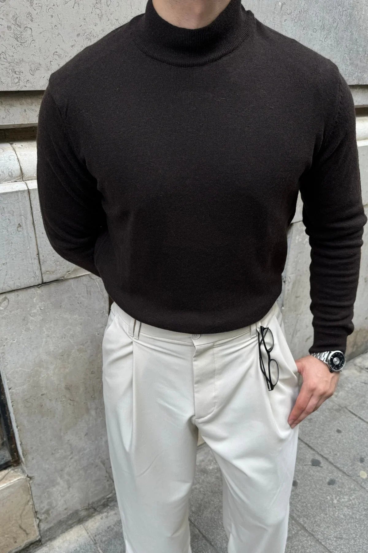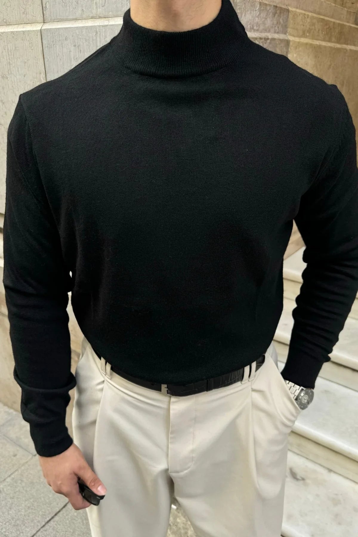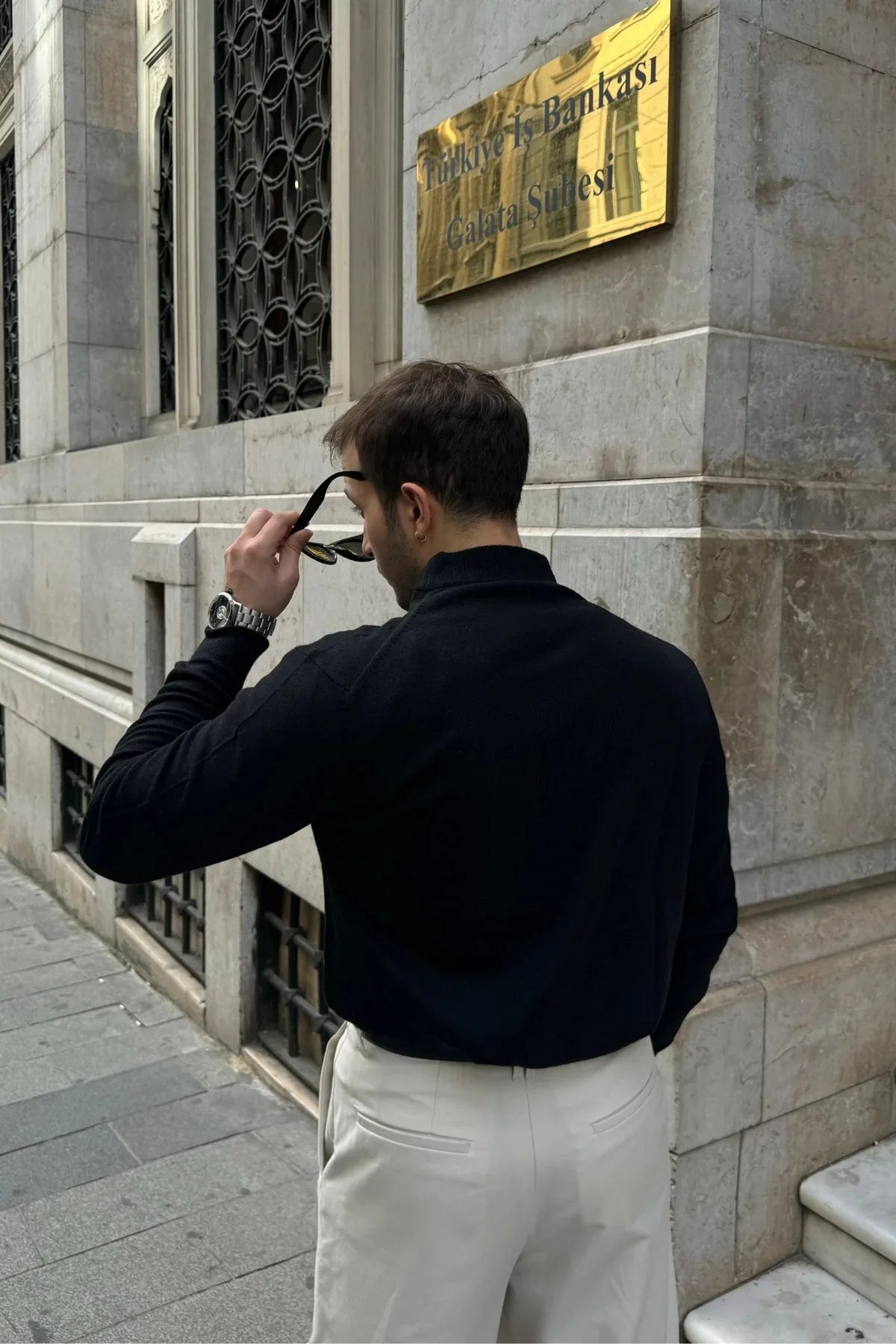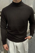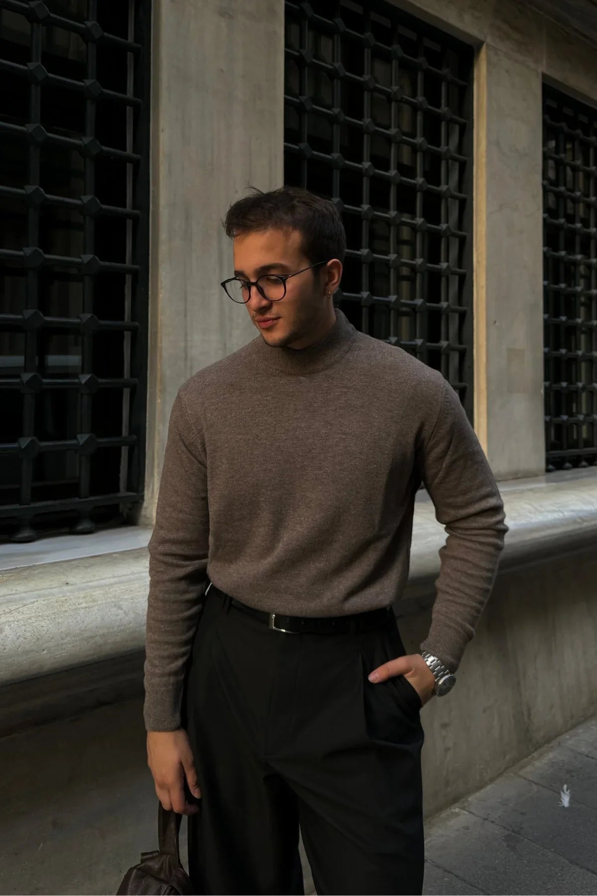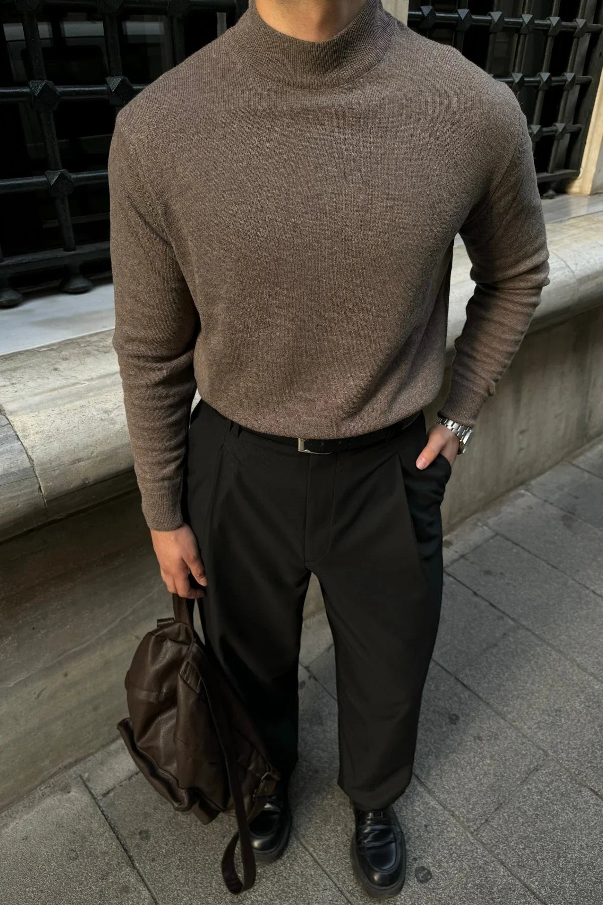 Erkek Yünlü Normal Kalıp Yarım Balıkçı Yaka Triko Kazak