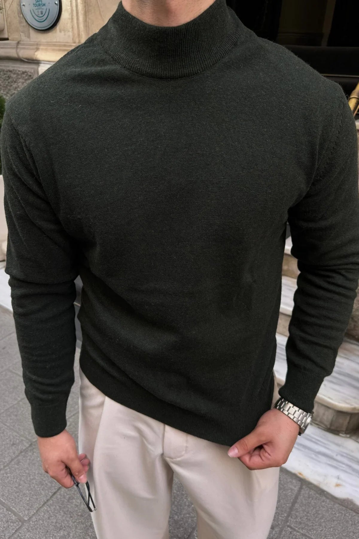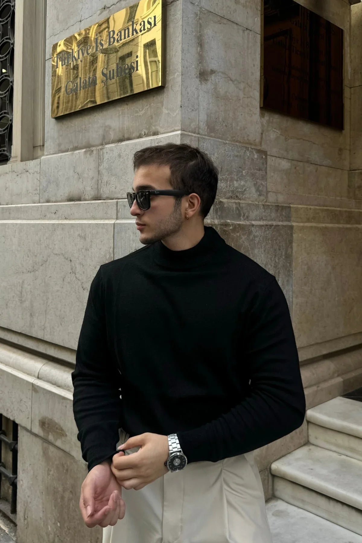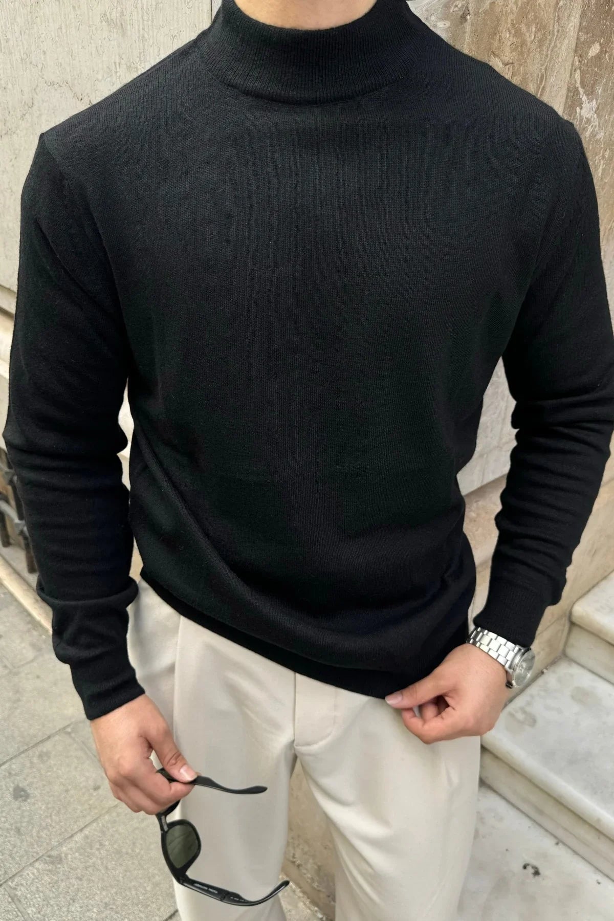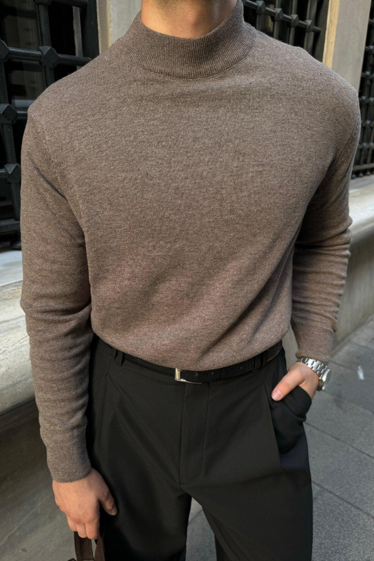 Erkek Yünlü Normal Kalıp Yarım Balıkçı Yaka Triko Kazak