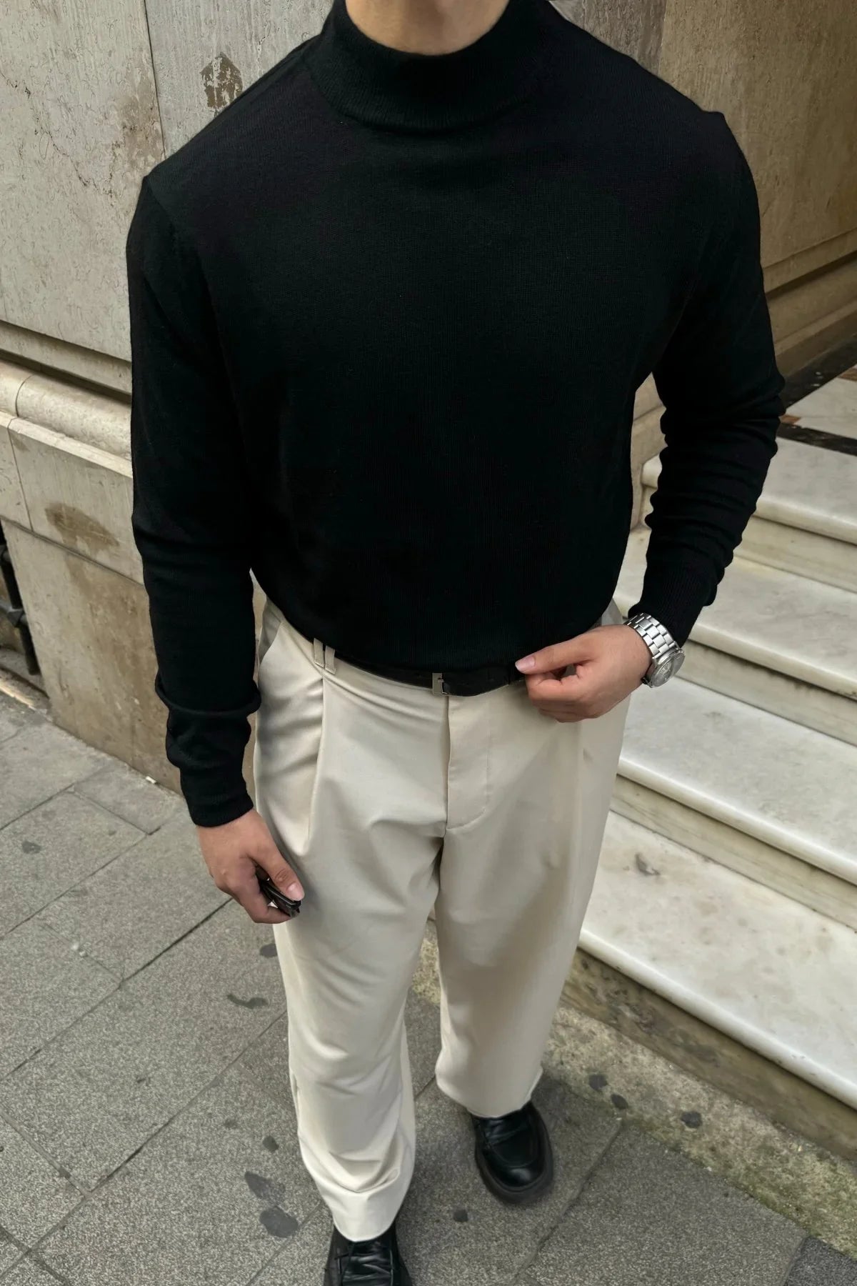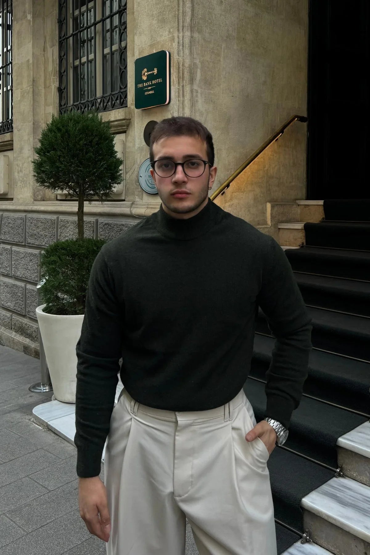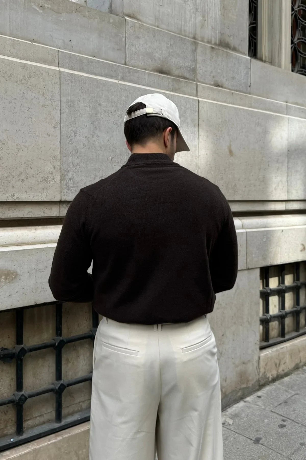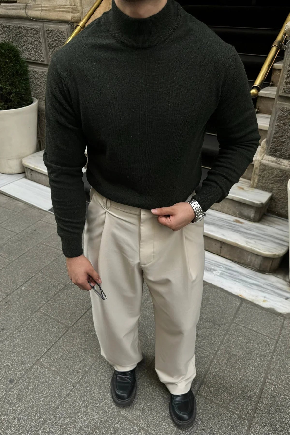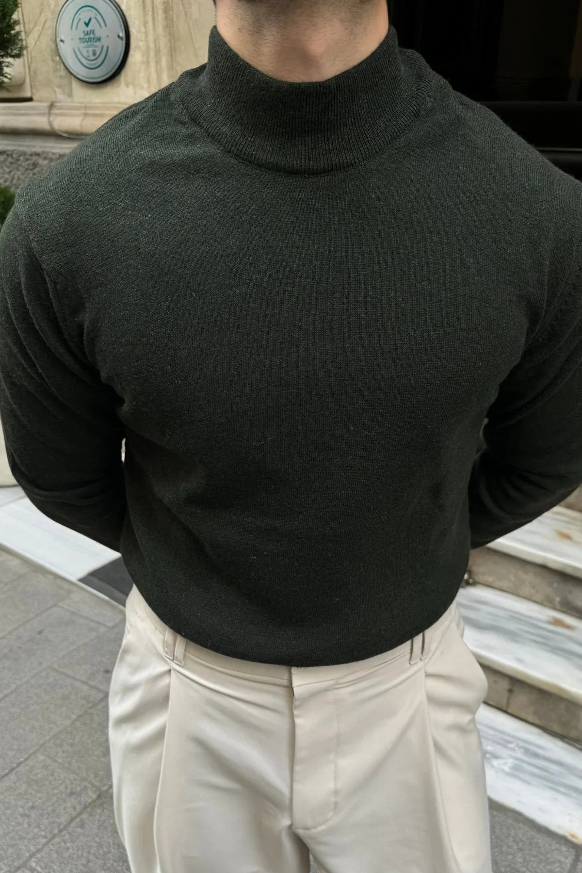 Erkek Yünlü Normal Kalıp Yarım Balıkçı Yaka Triko Kazak
