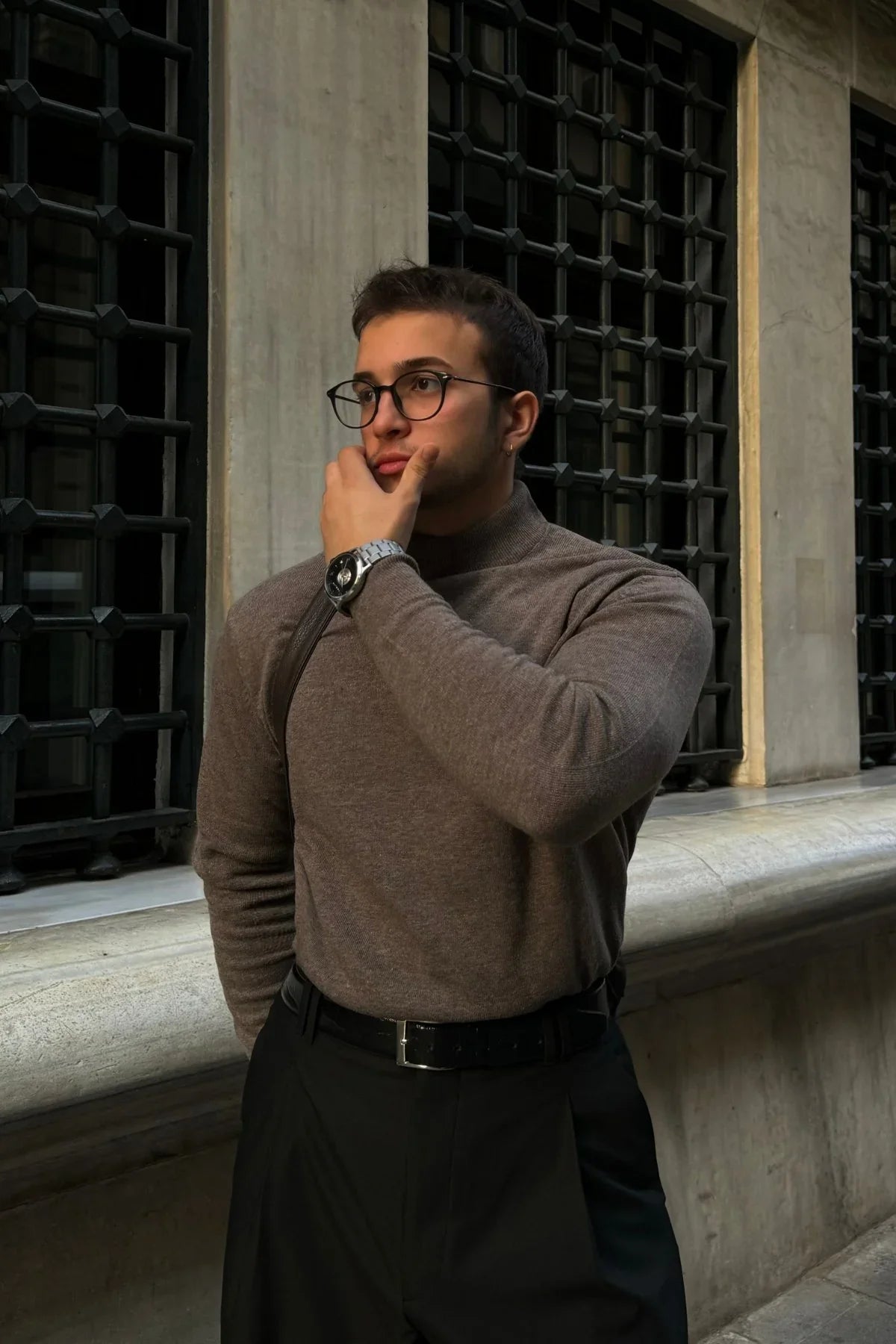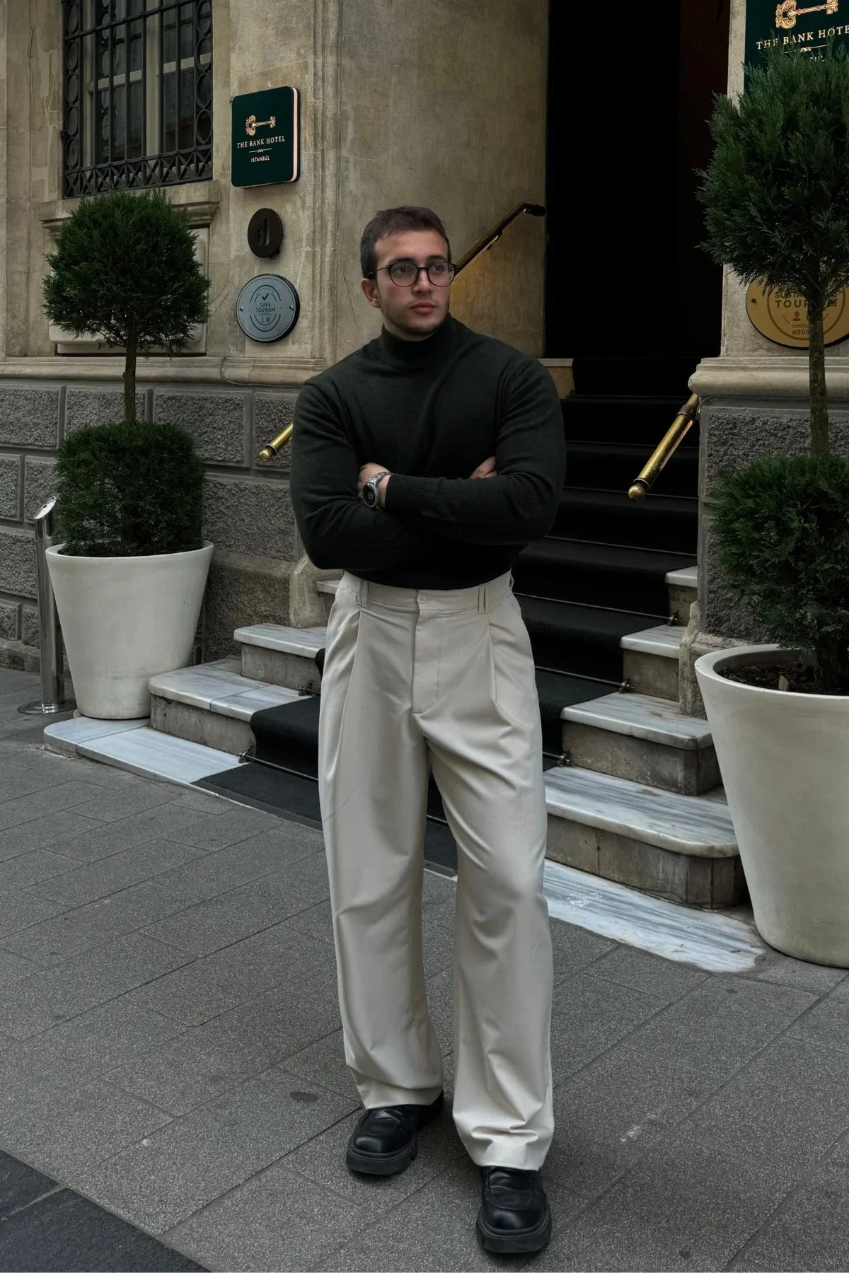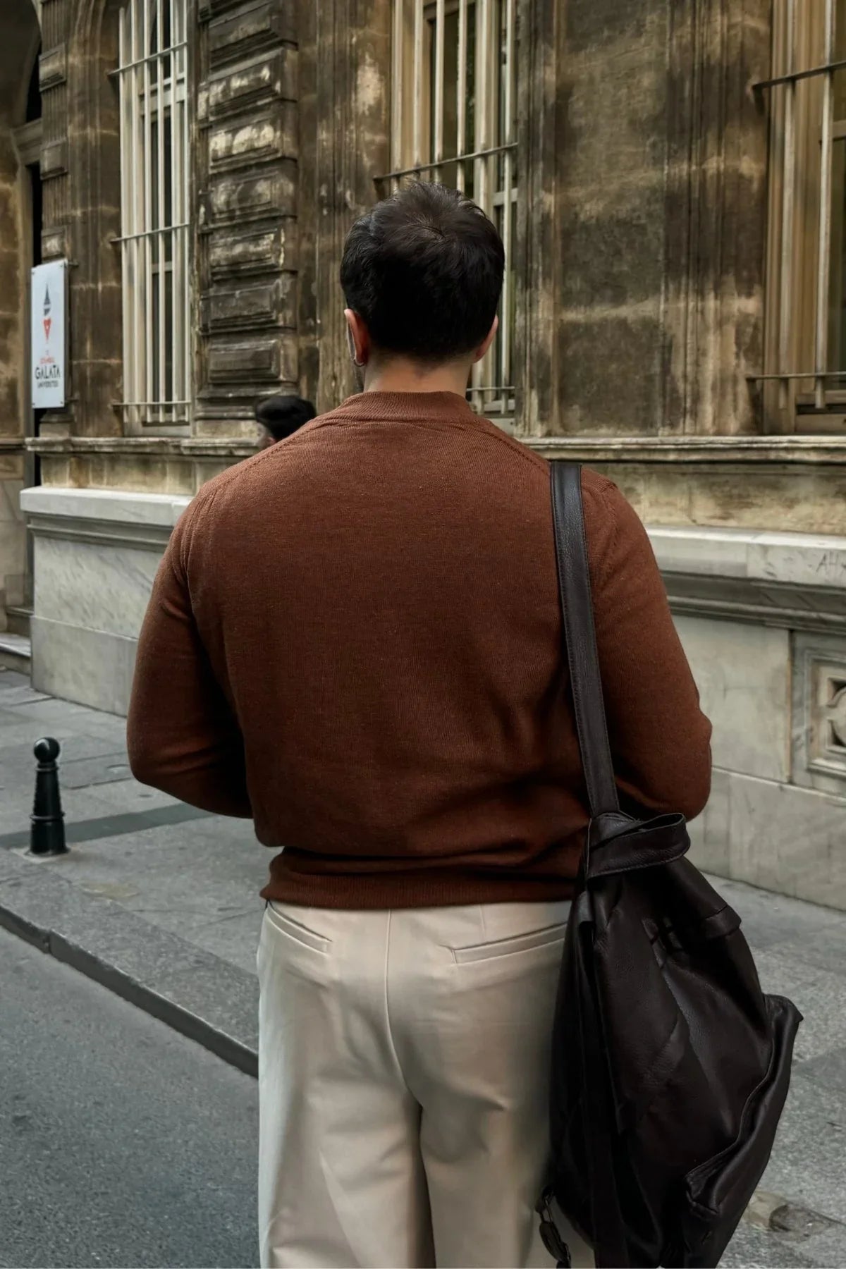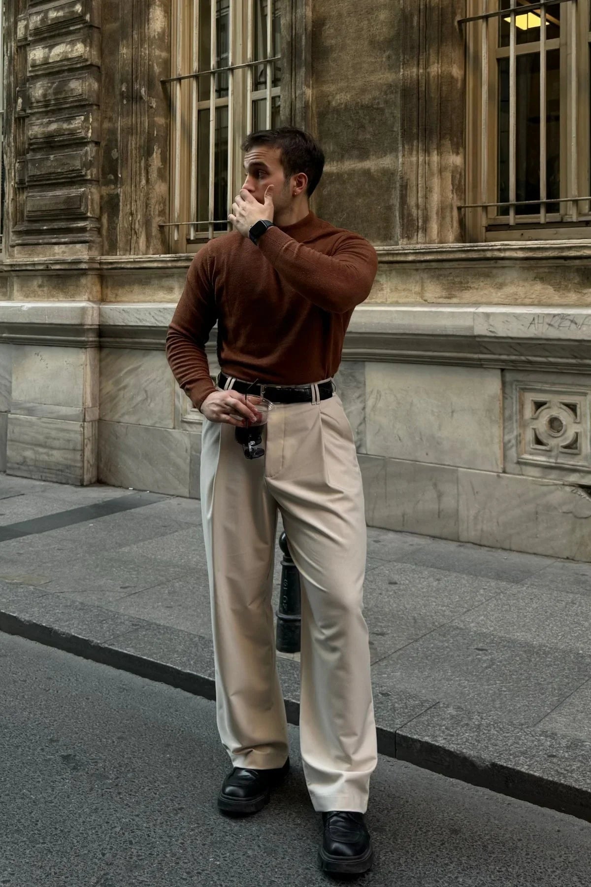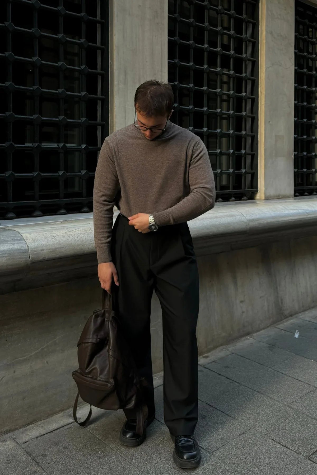 Erkek Yünlü Normal Kalıp Yarım Balıkçı Yaka Triko Kazak