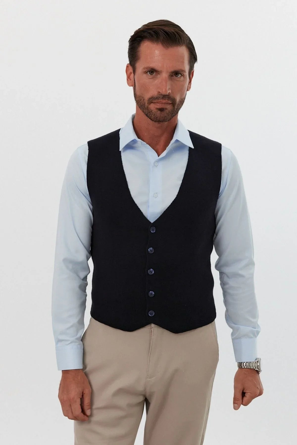 Klasik Pamuk fit kalıp Triko Klasik Yelek Kazak